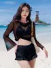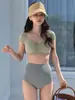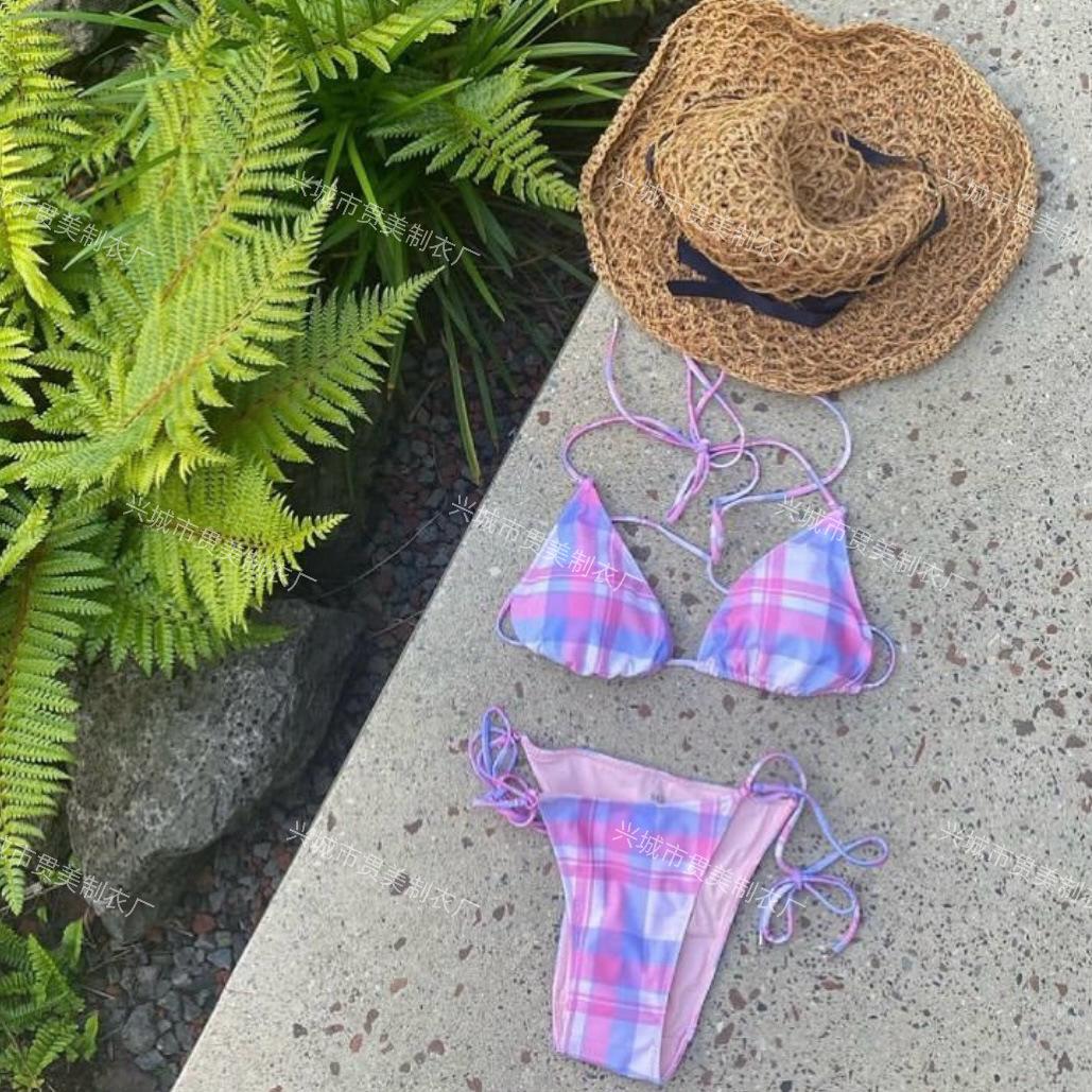 [2 colores] Nuevo traje de baño vintage americano a cuadros con escote en forma de corazón, sexy, de tres piezas, para mujer, bikini de vacaciones