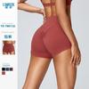 Pantalones de yoga de cintura alta, estilo europeo y americano, de color melocotón, para mujer, de color liso, ajustados de tres puntos, para fitness, para correr y hacer deporte.