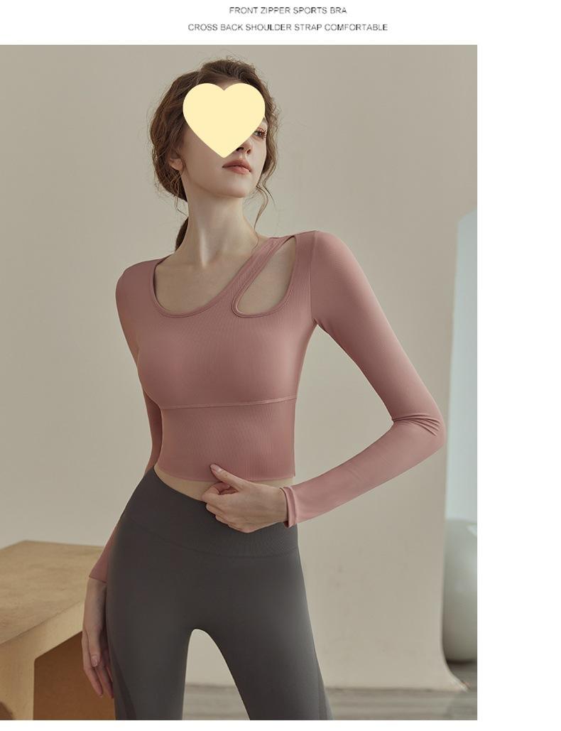 Pink long sleeve gray hip yoga pants [removable chest pad]], Pink long sleeve black hip yoga pants "removable ...