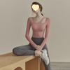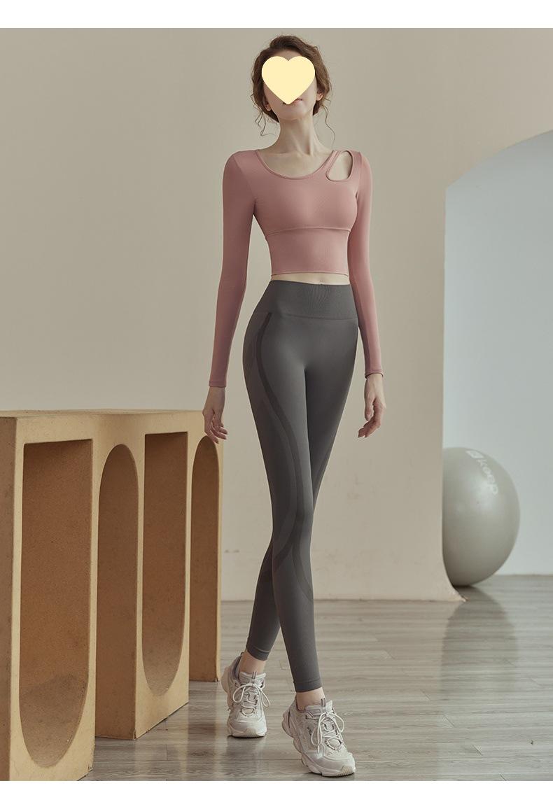 Pink long sleeve gray hip yoga pants [removable chest pad]]