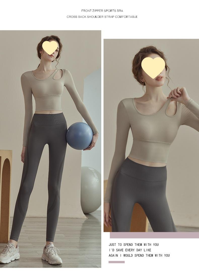 apricot long sleeve gray hip yoga pants [removable chest pad]]