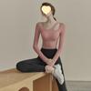 apricot long-sleeved black hip yoga pants [removable chest pad]]