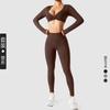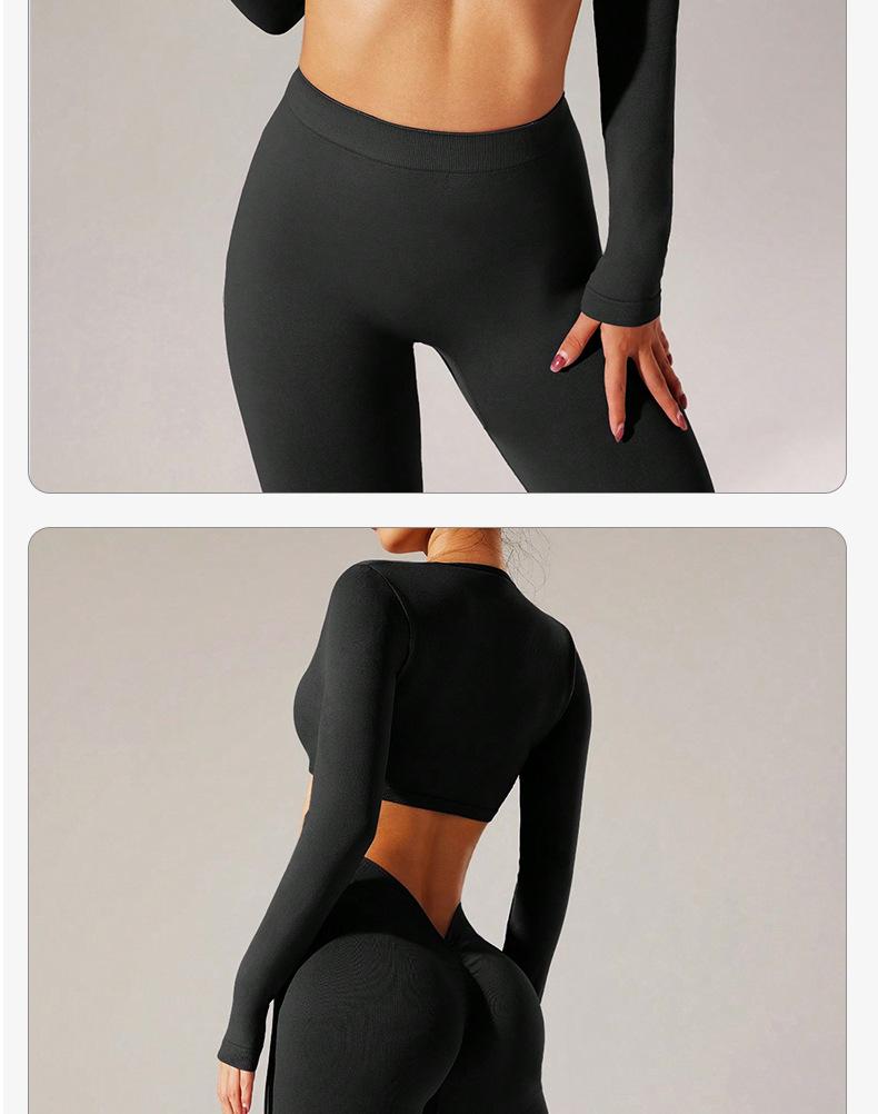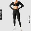 Traje Deportivo Yoga Fitness Dos Piezas Sexy Ajustado Manga Larga Alta Elasticidad Secado Rápido Traje para Correr al Aire Libre Fitness Naked