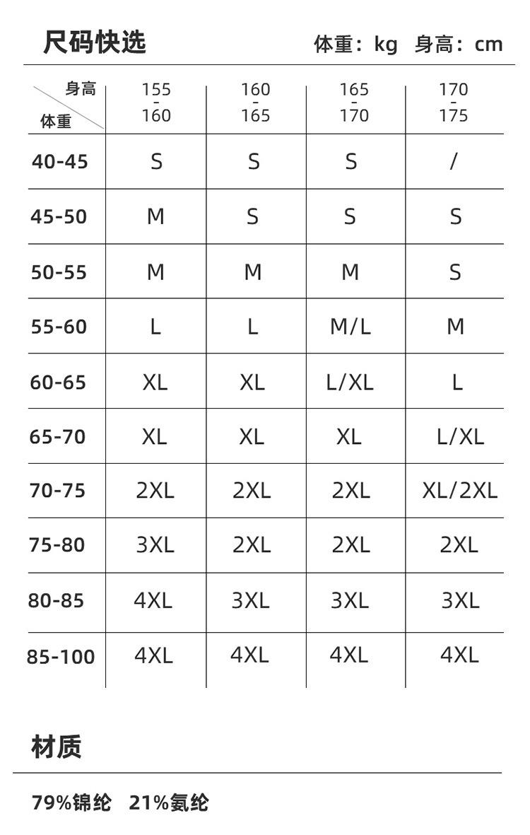 S( 40-47.5kg ), M( 47.5-52.5kg ), L( 52.5-60kg ), Xl( 60-67.5kg ), 2xl( 67.5-75kg ), 3xl( 75-85kg ), 4xl( 85-100kg )