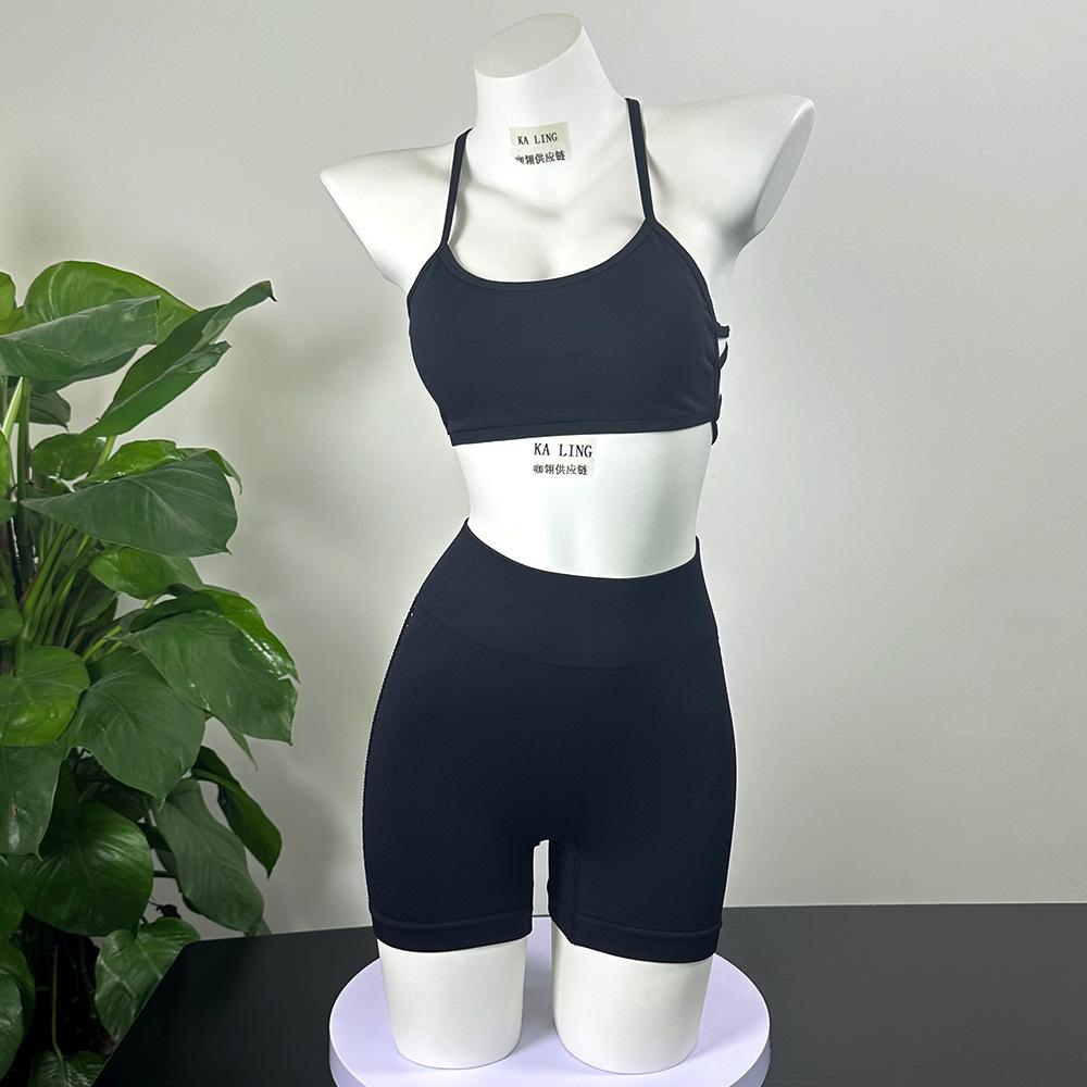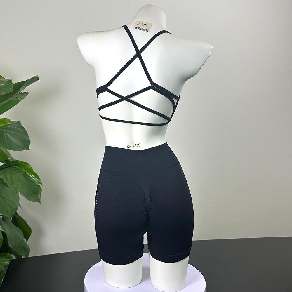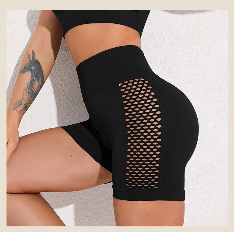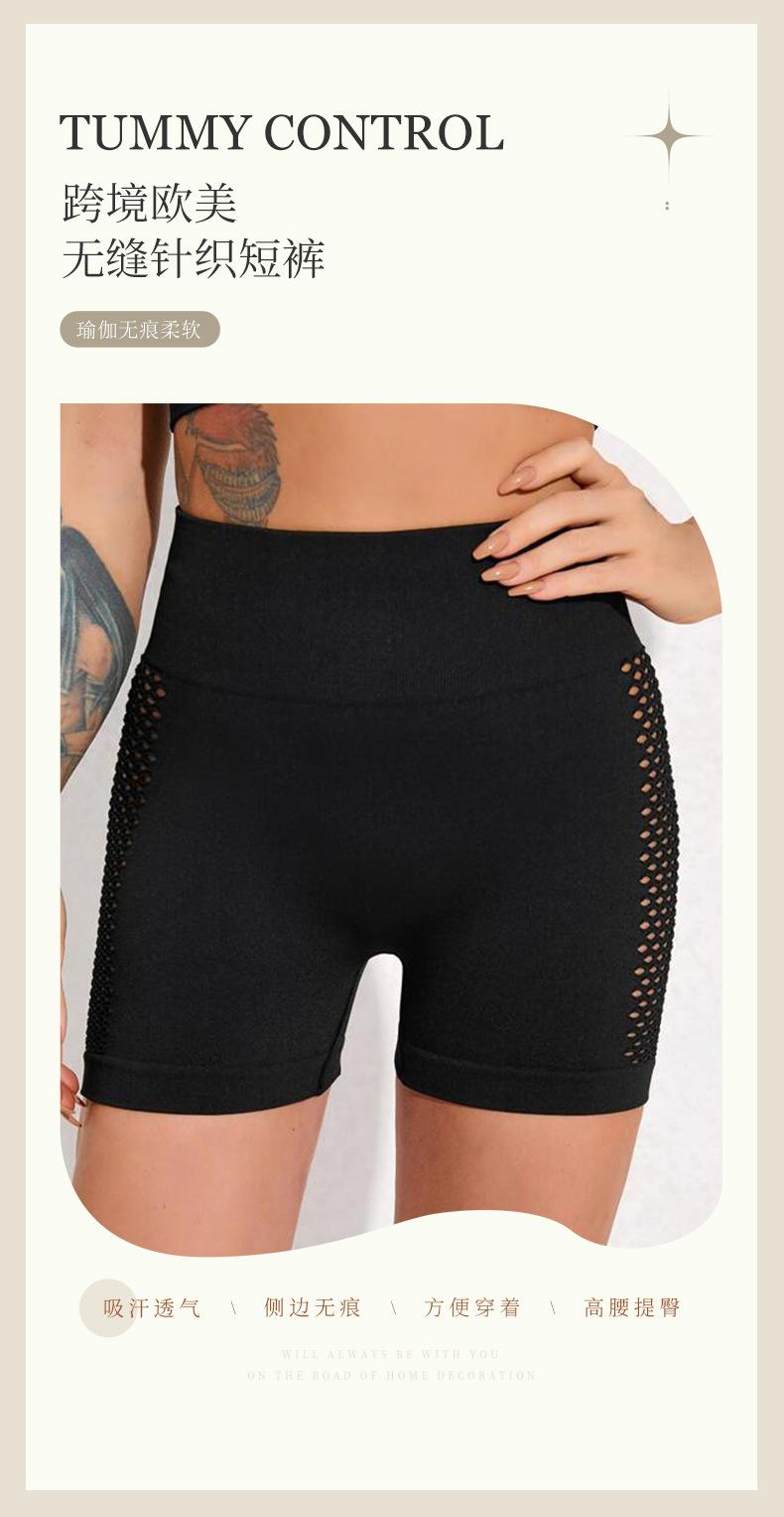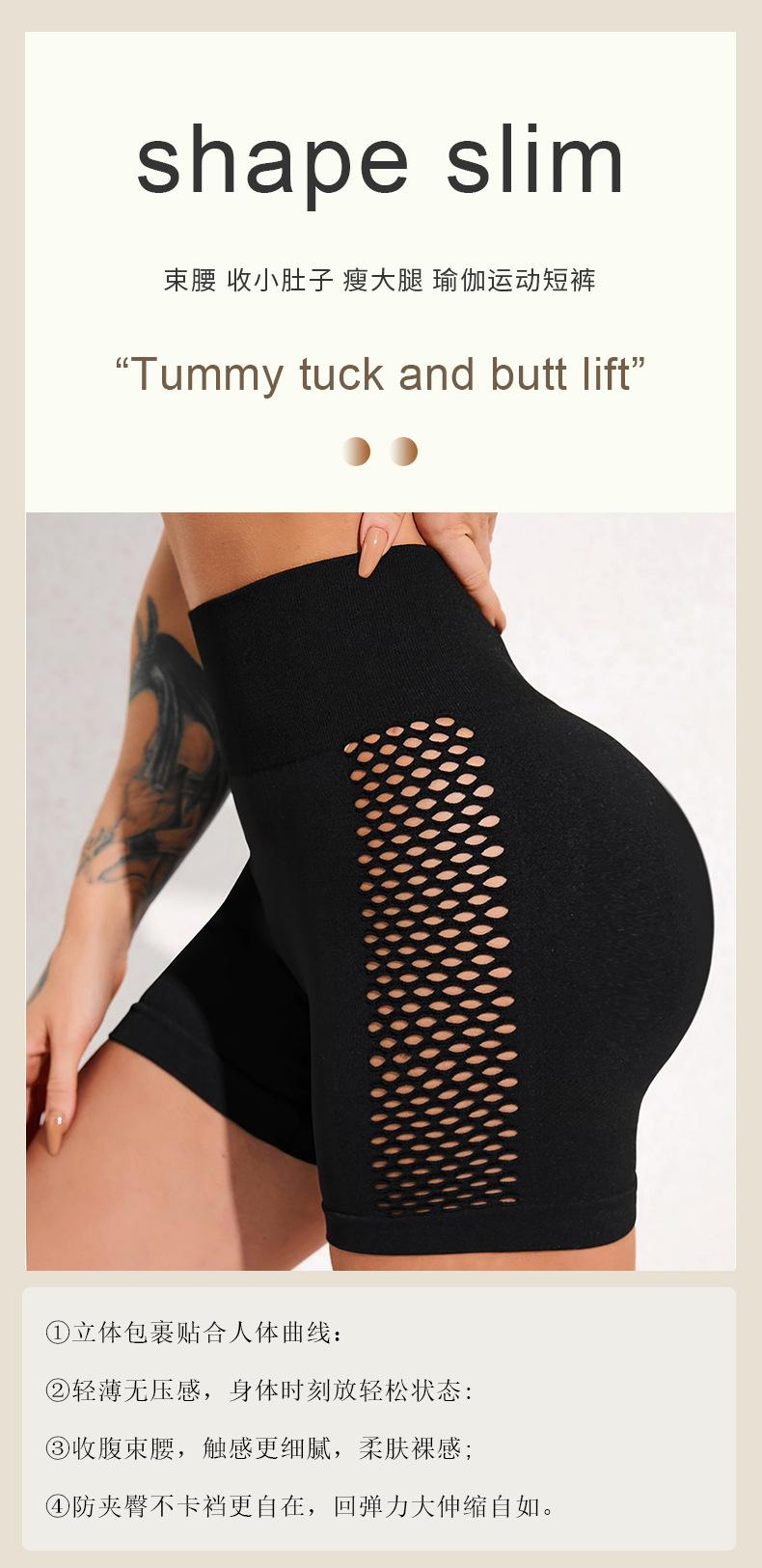 Una Pieza Envío Directo Punto Sin Costuras Levanta Glúteos Shorts de Yoga para Mujer Cintura Alta Fitness Correr Deportes Malla Transpirable Pantalones Tres Cuartos