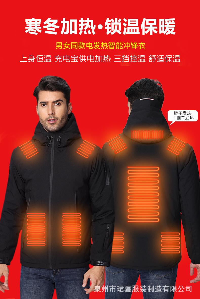 Ropa con calefacción transfronteriza carga calentamiento inteligente temperatura constante chaqueta acolchada de algodón hombres y mujeres con capucha USB cálida chaqueta eléctrica calefactable