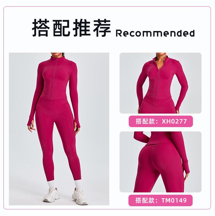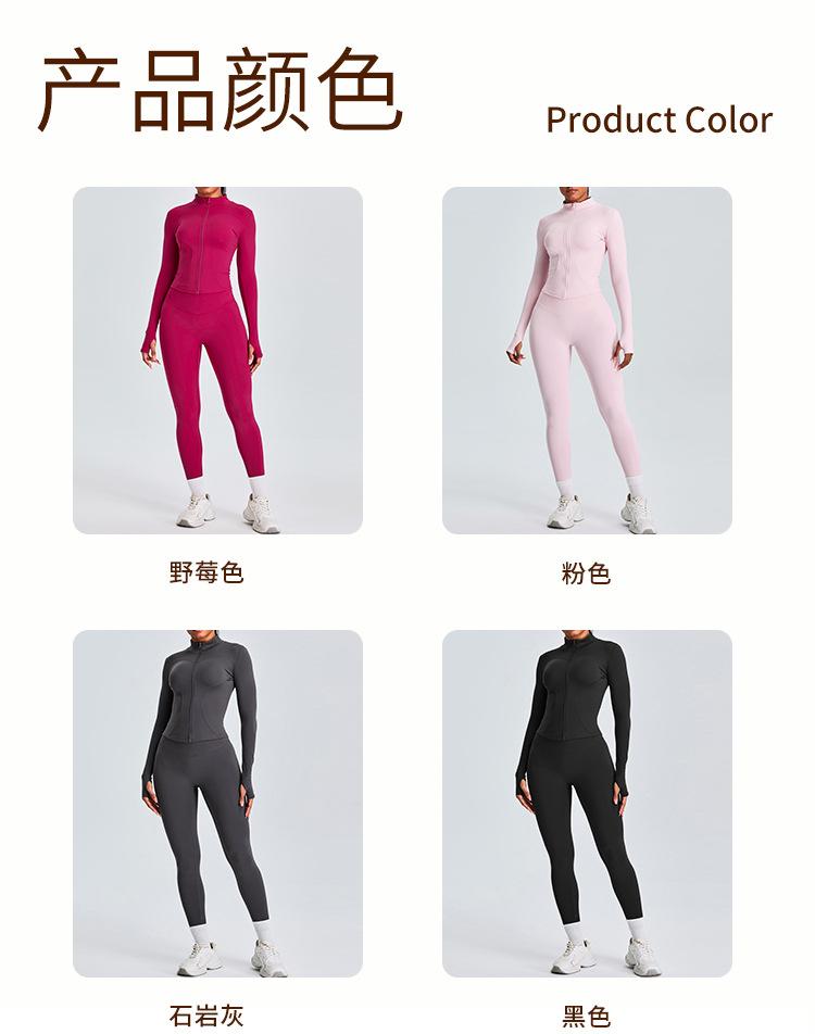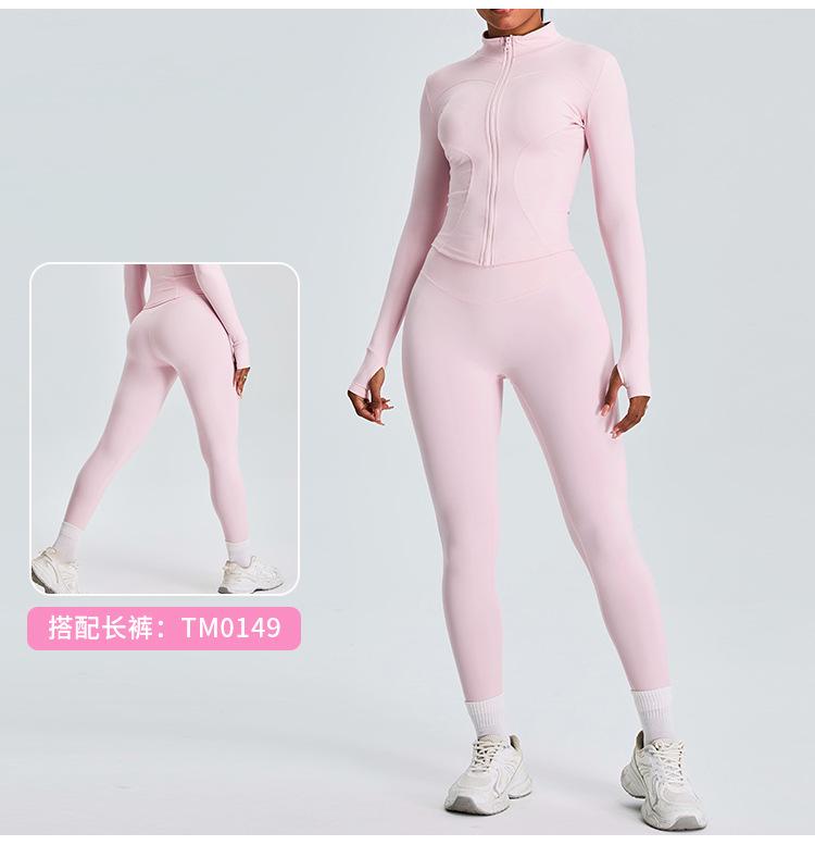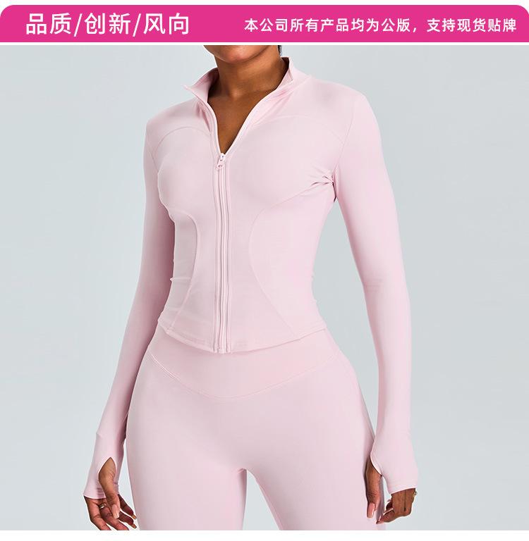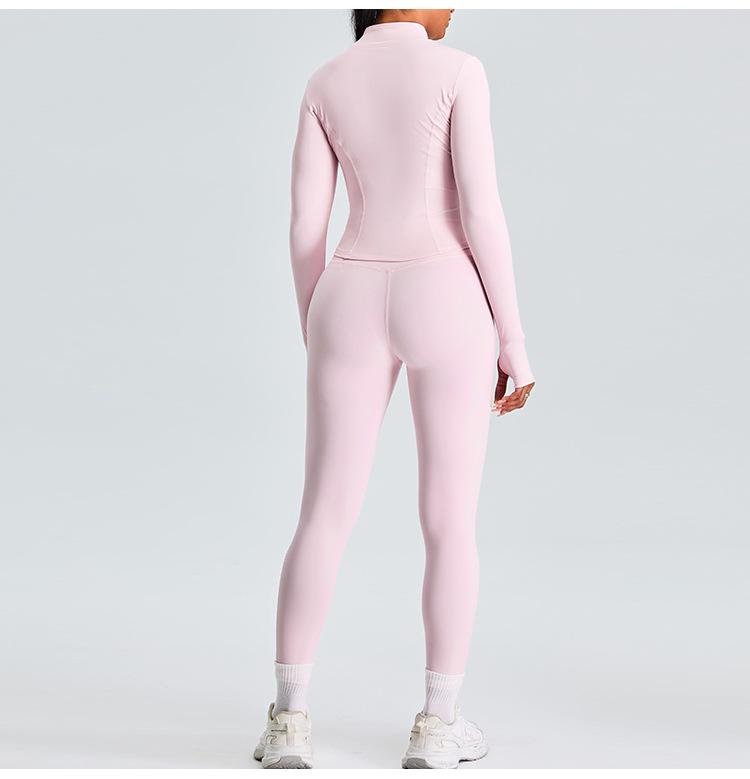 Nueva chaqueta de yoga ajustada para mujer, chaqueta deportiva para exteriores, pantalones de yoga a la moda color melocotón, traje deportivo para correr
