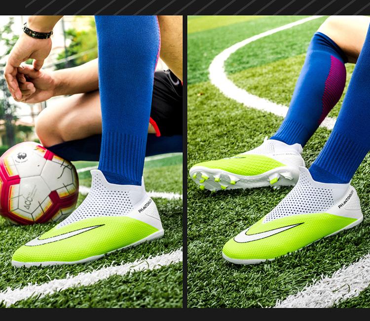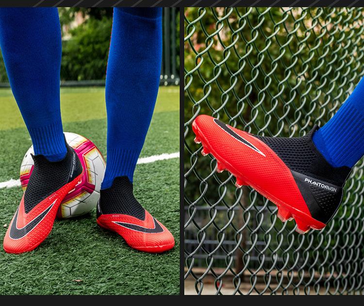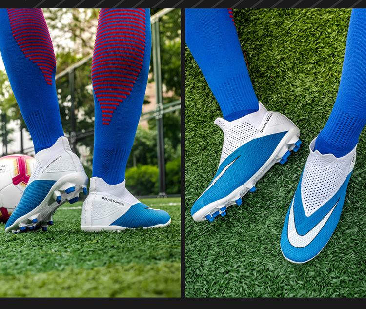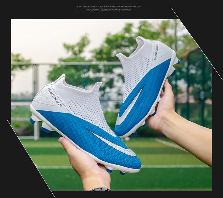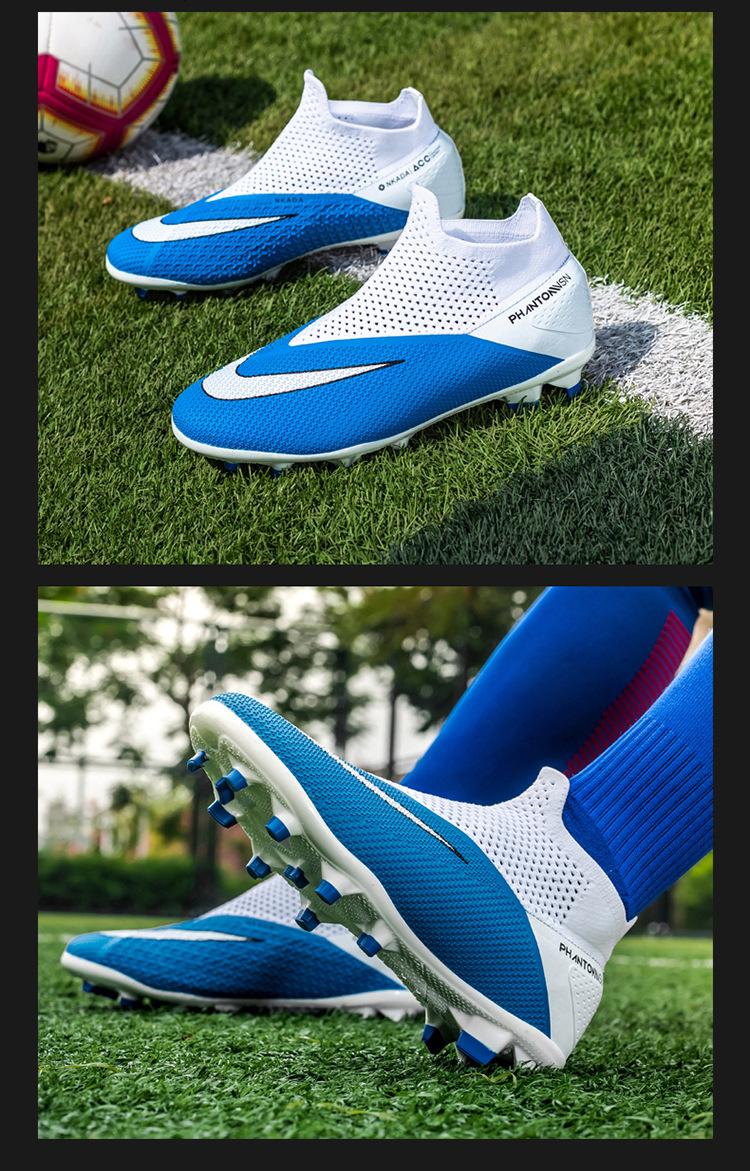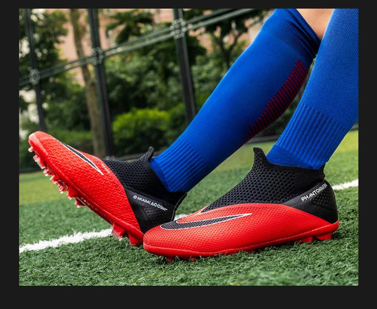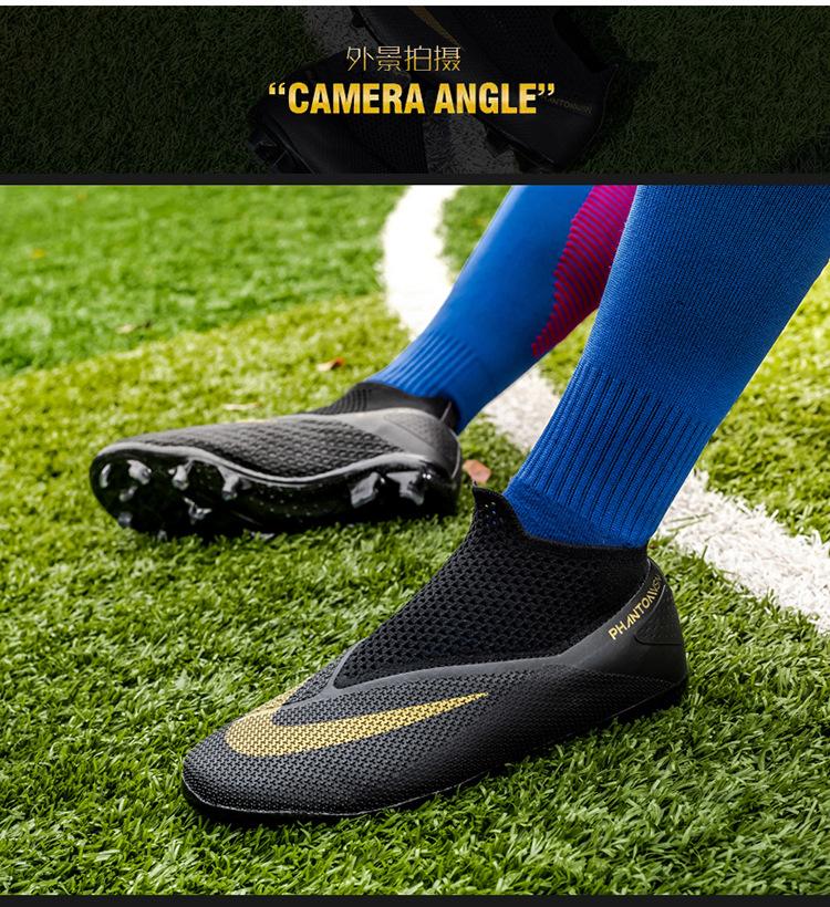 Zapatos de fútbol nuevos calcetines altos para hombres y mujeres AG/TF cuero pies estudiantes jóvenes zapatos de fútbol fabricantes en stock