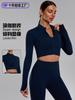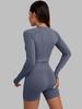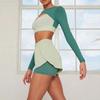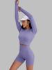 Conjunto de yoga de punto sin costuras con manga larga y pantalones tres cuartos para deportes, running, ciclismo y fitness, color puro, dos piezas