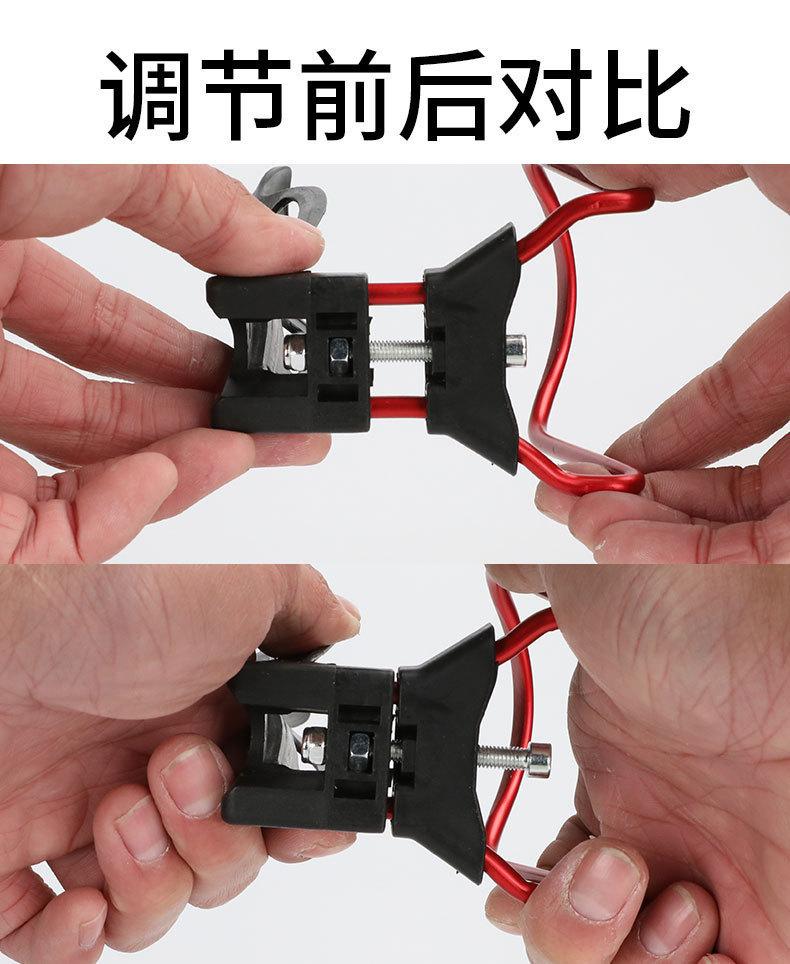 Este portabotellas tiene una perilla de ajuste de tornillo fijo en la parte inferior, que se puede ajustar a mano o con una llave Allen. La ventaja del ajuste es que puedes controlar la tensión por ti mismo para adaptarlo a botellas de diferentes grosores. Diámetro 60-85mm