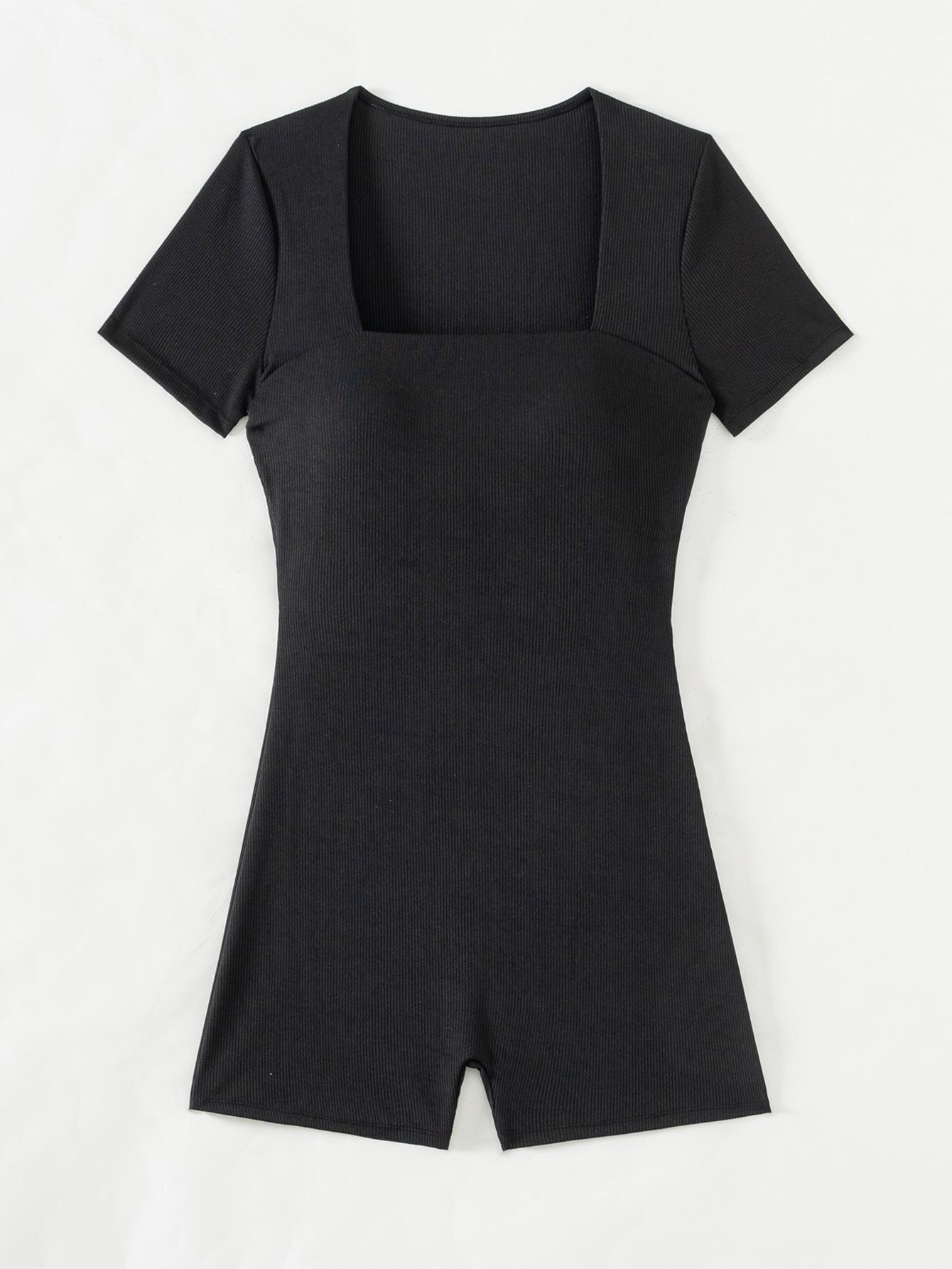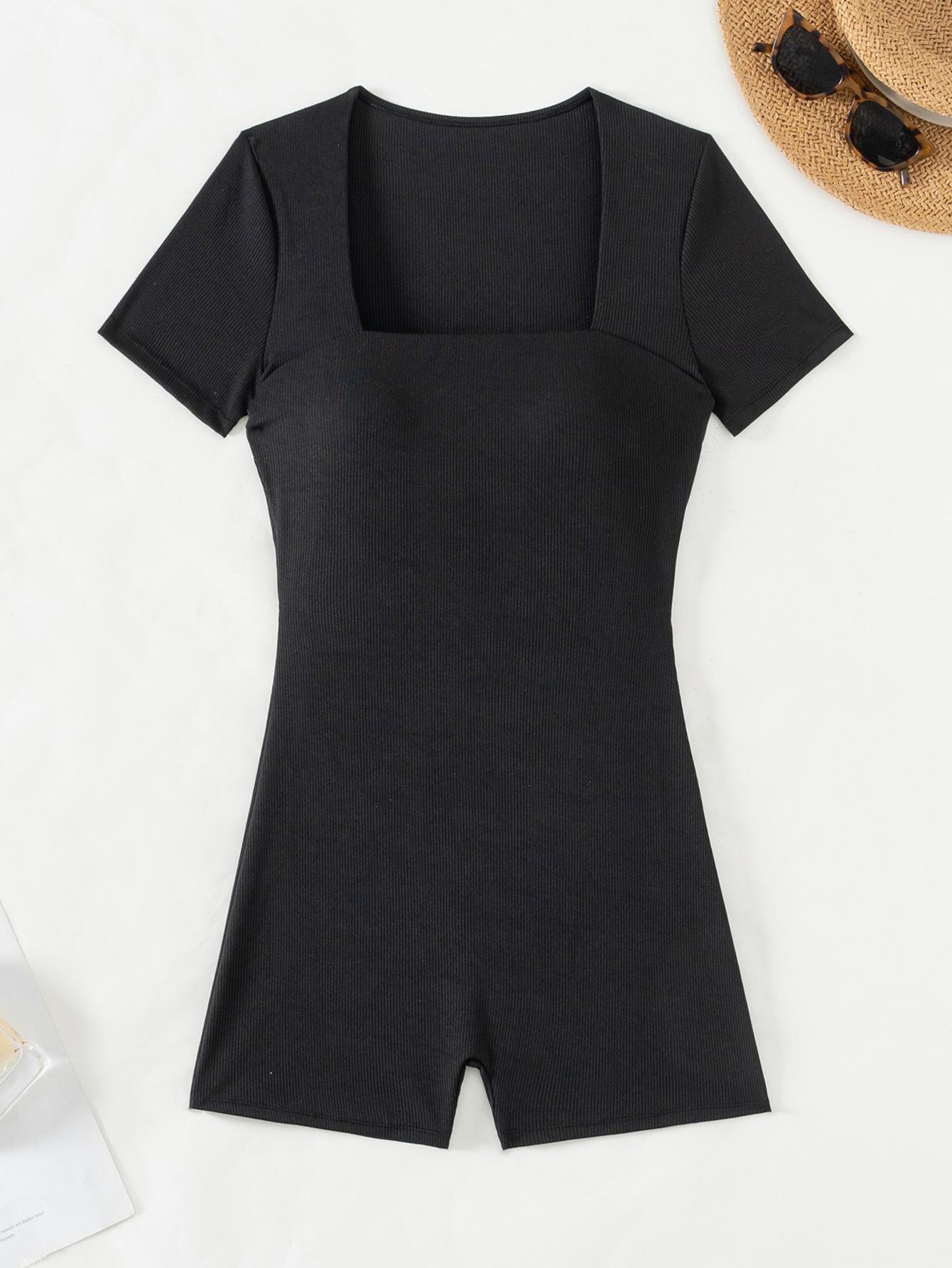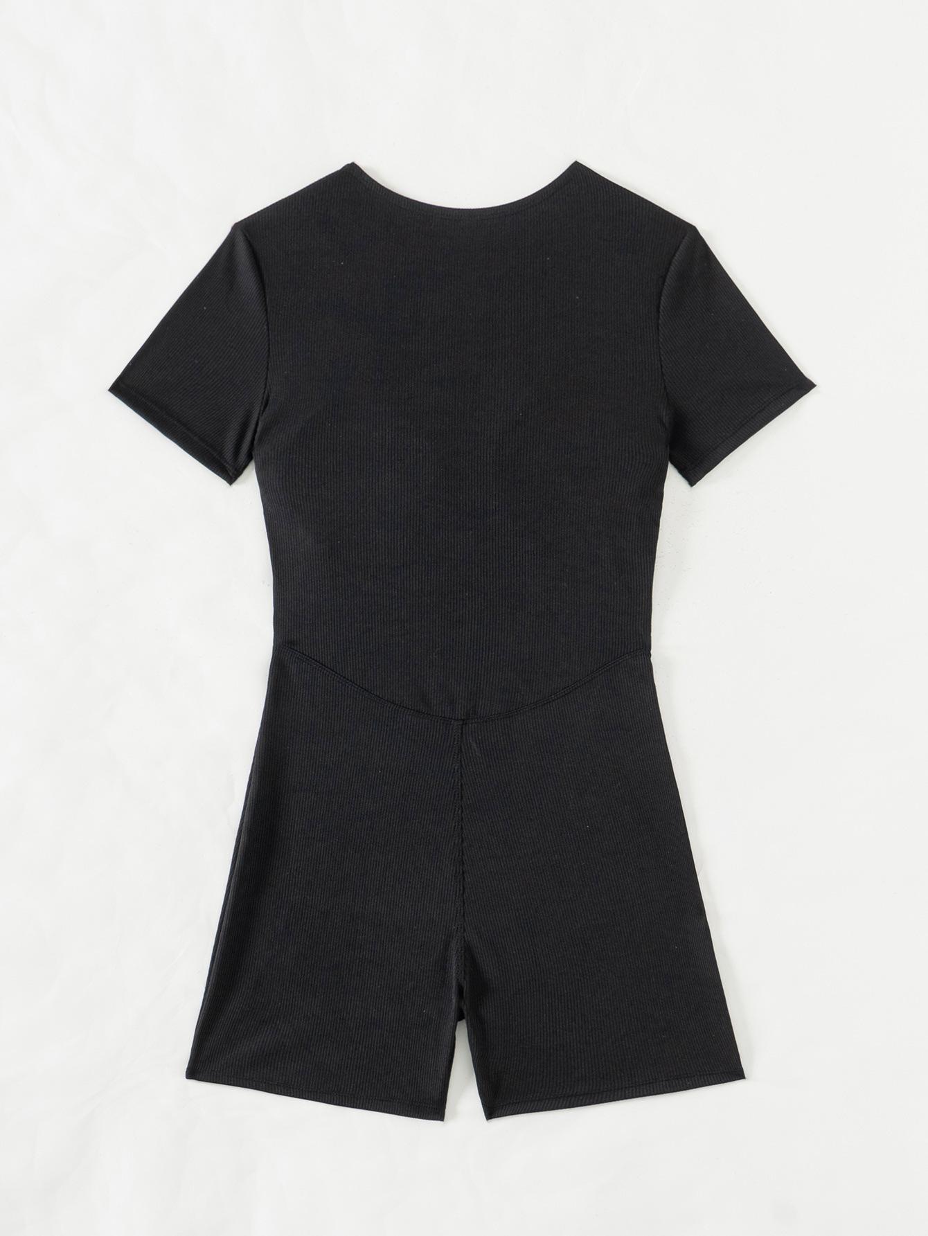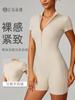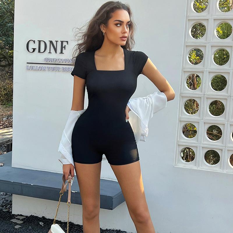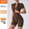 Ropa de Yoga de Manga Corta Ajustada con Canalé de Nuevo Estilo Transfronterizo Europeo y Americano para Mujer, Fitness de Baile Deportes Shorts al Aire Libre Mono