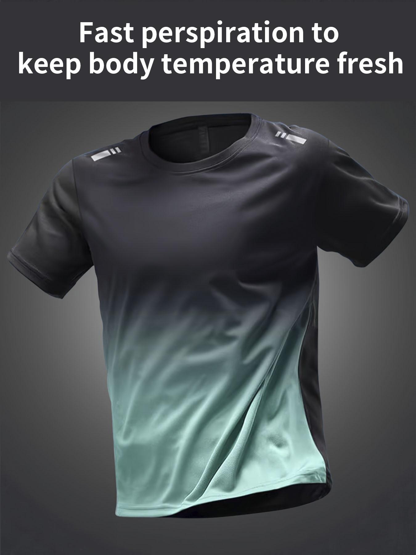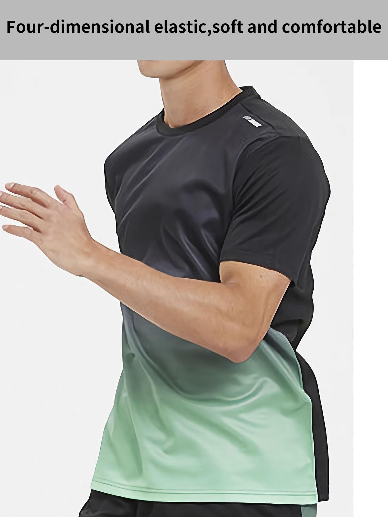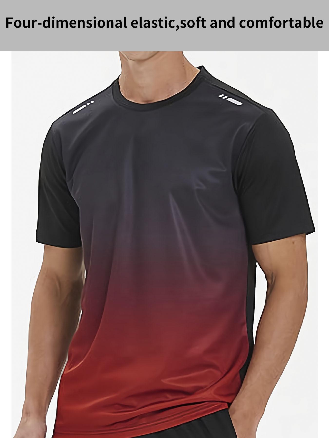 Camiseta deportiva de verano con degradado para hombre, holgada, de secado rápido, transpirable, de manga corta para entrenamiento físico (versión transfronteriza)