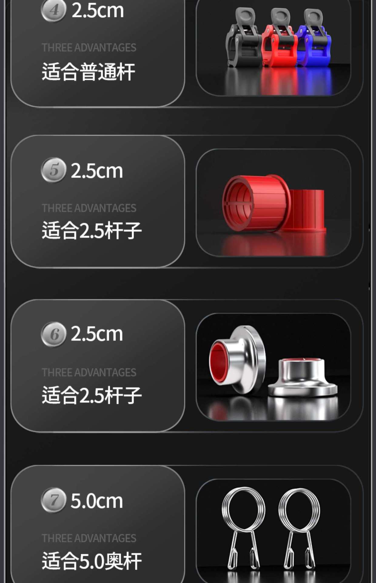 The price of a 2-ring clamp spring (5cm), The price of a dumbbell barbell bar (2.5cm), The price of one Olympi...