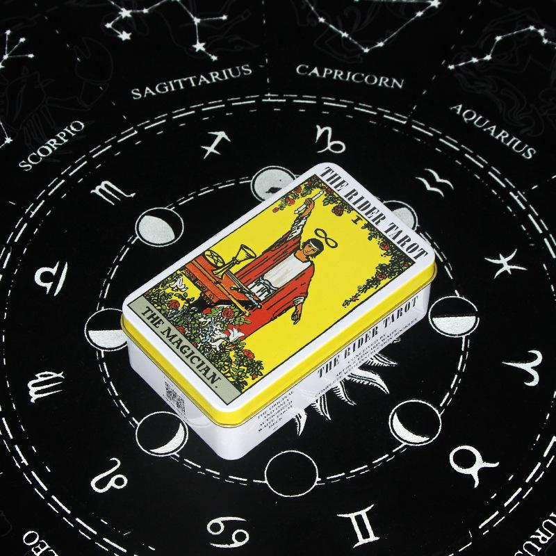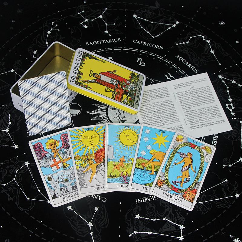Cartas de Tarot Transfronterizas 78PCS Inglés Borde Bronceado Carta de Tarot En Caja de Hierro Edición Centenaria de Pintor