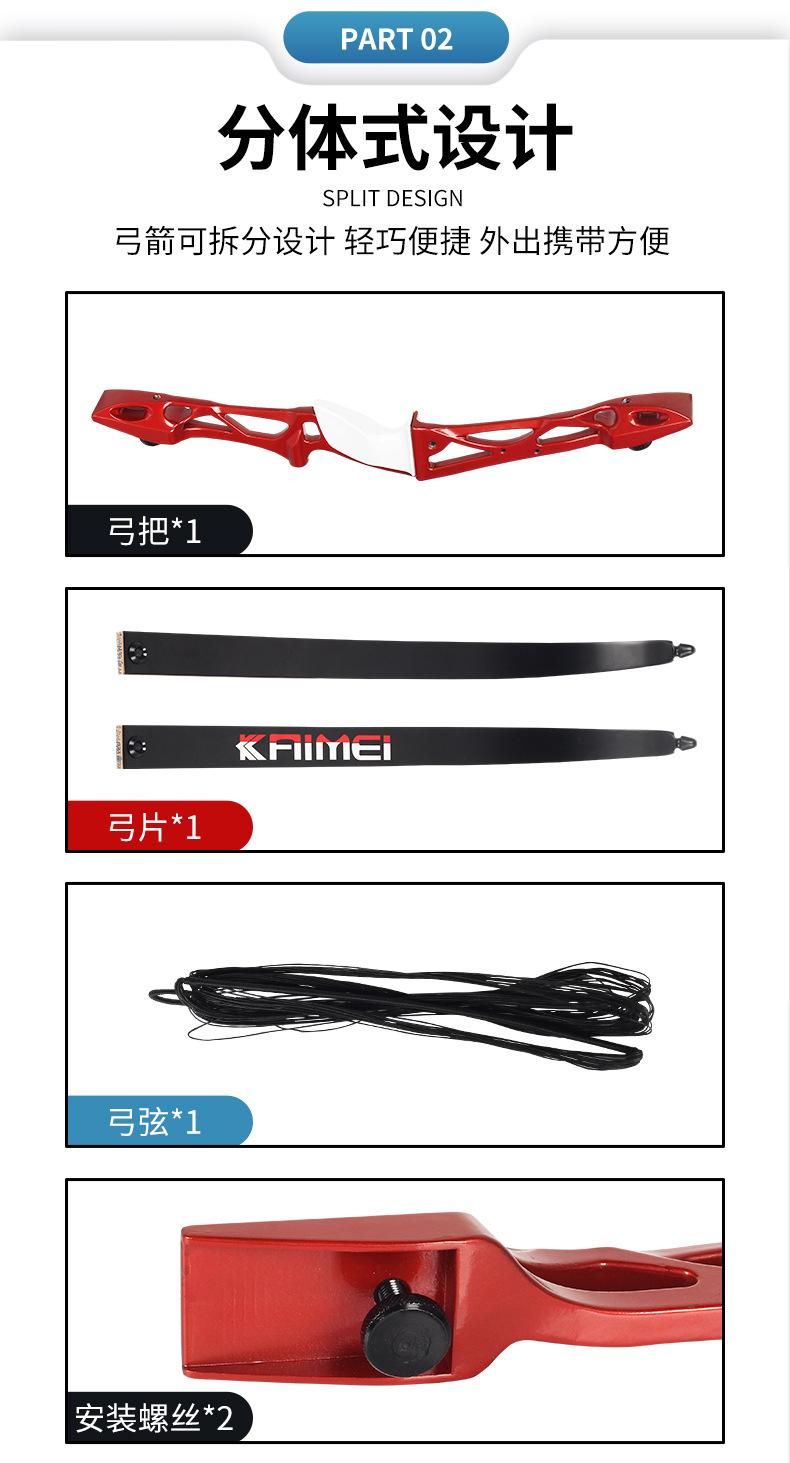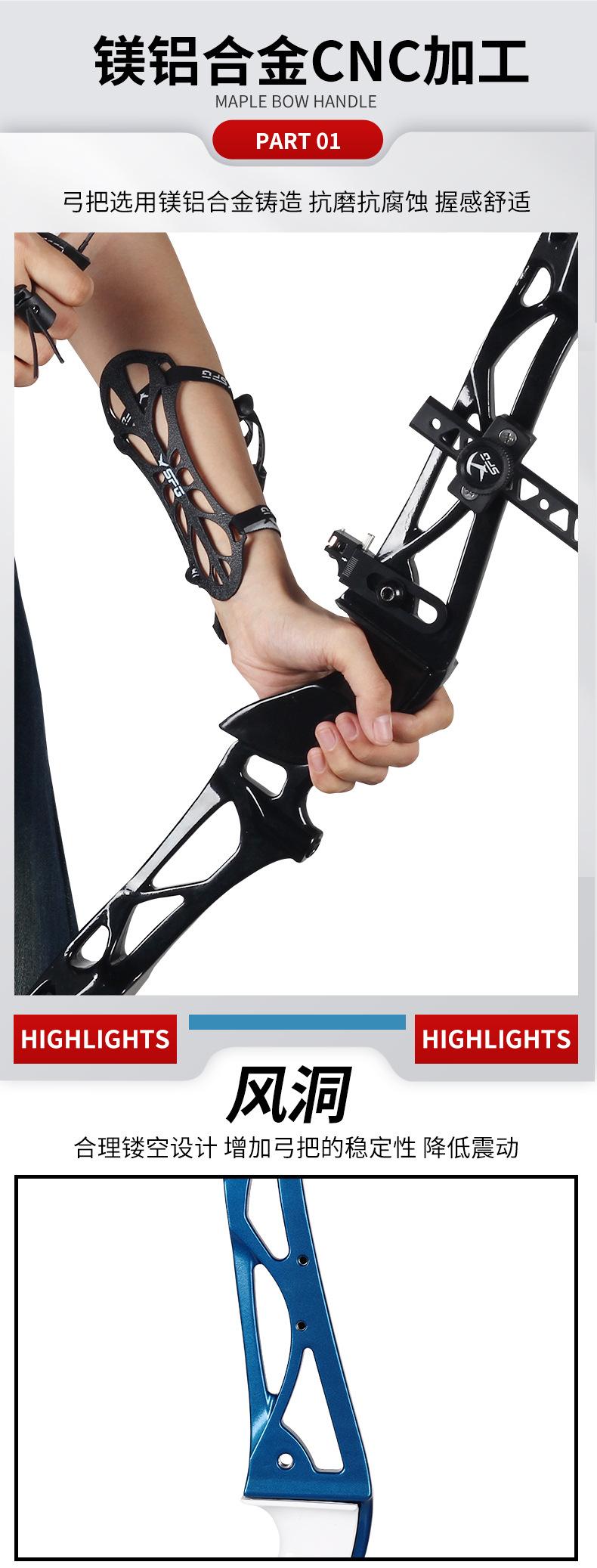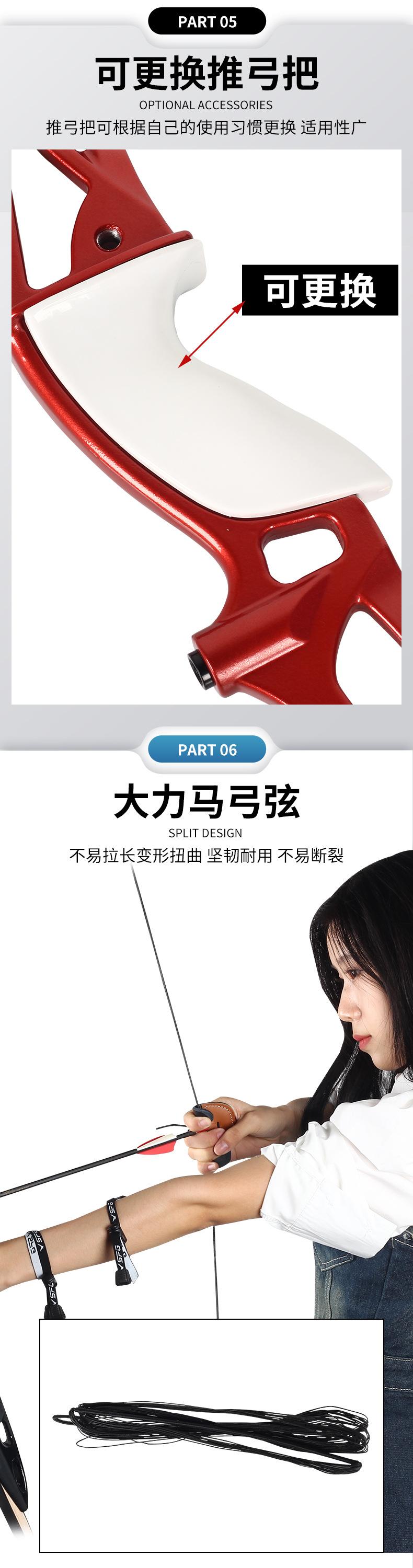 Venta al por mayor de metal competitivo arco recurvo equipo de competición de tiro con arco empuñadura de aleación 68 pulgadas más libras opcional