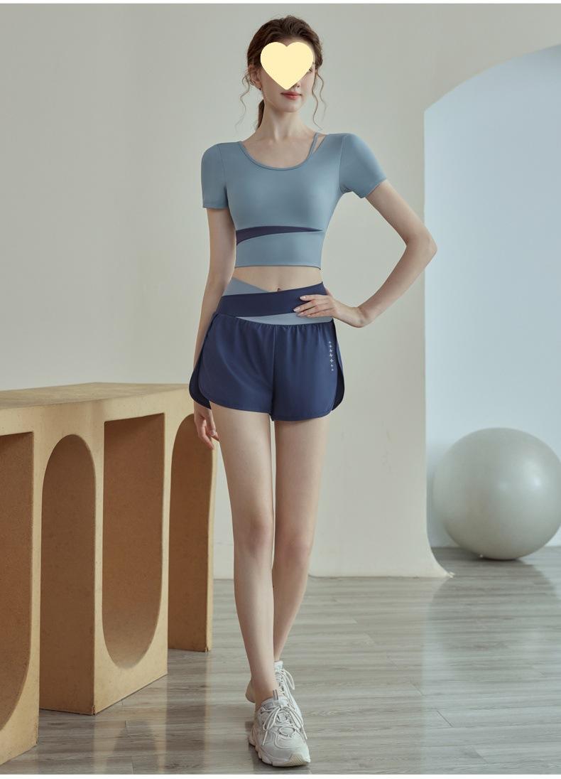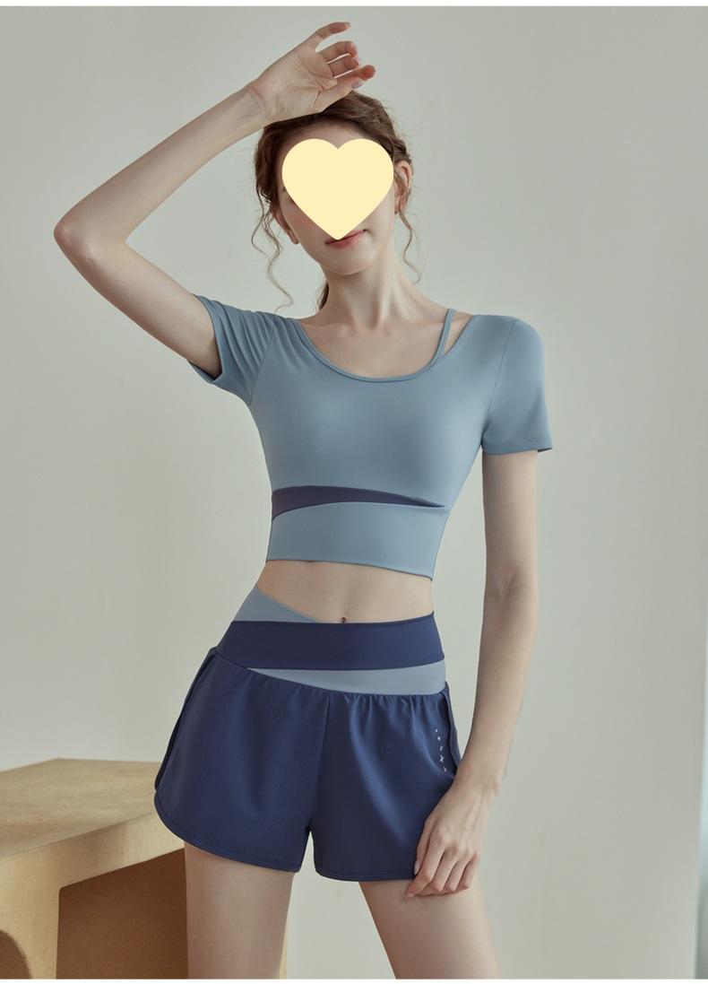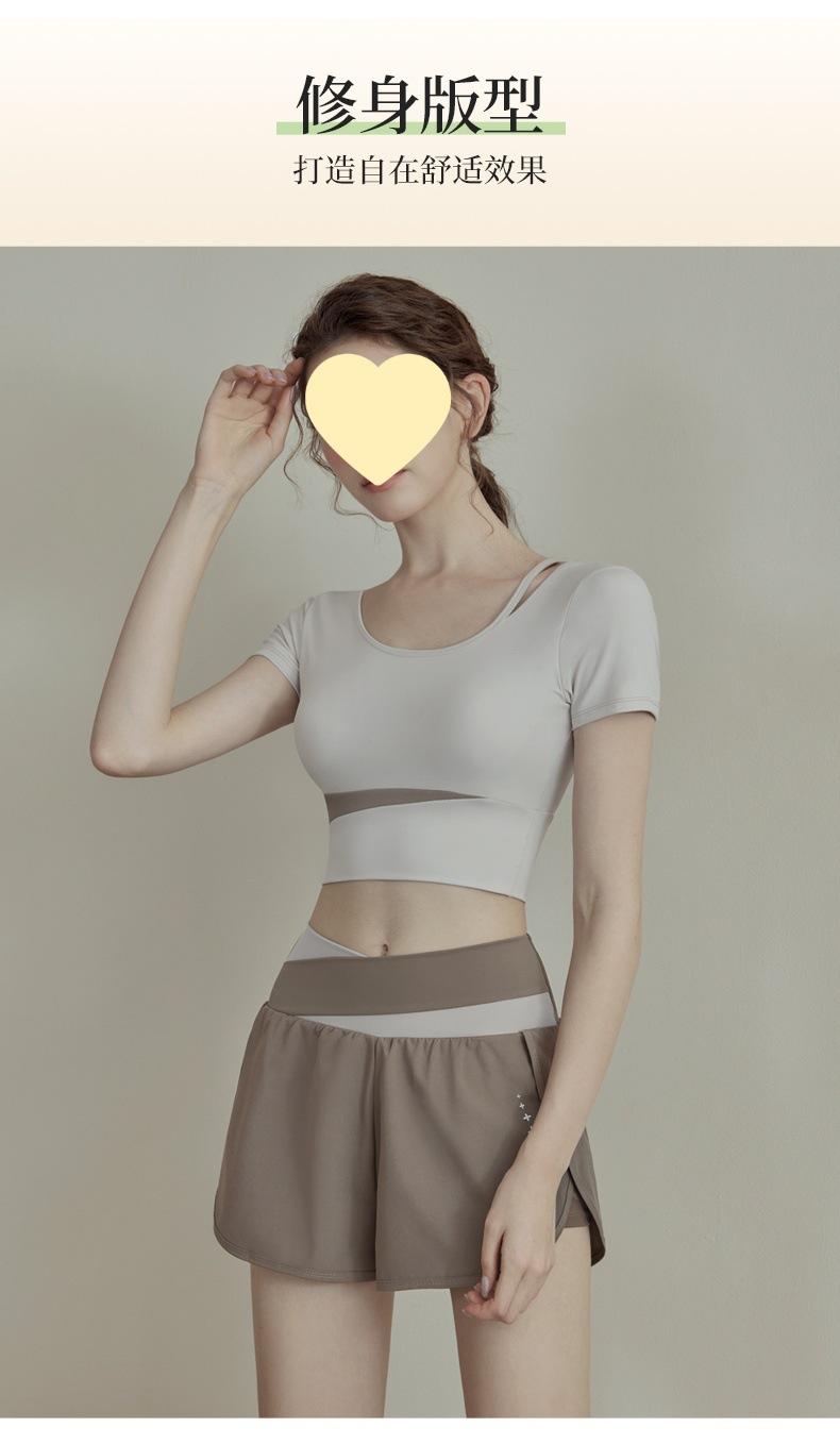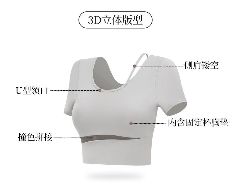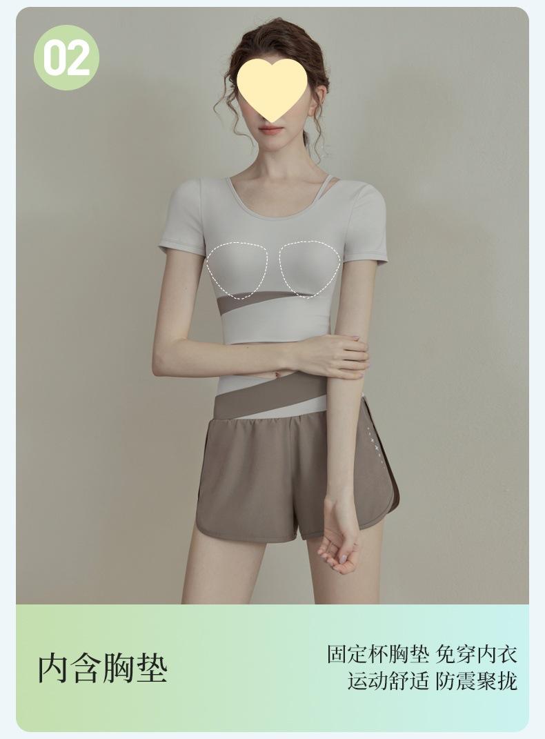 Ropa de Yoga para Mujer Verano 2025 Nueva Manga Corta para Correr con Almohadilla en el Pecho Fitness Talla Grande Ropa de Entrenamiento Tops Traje Deportivo