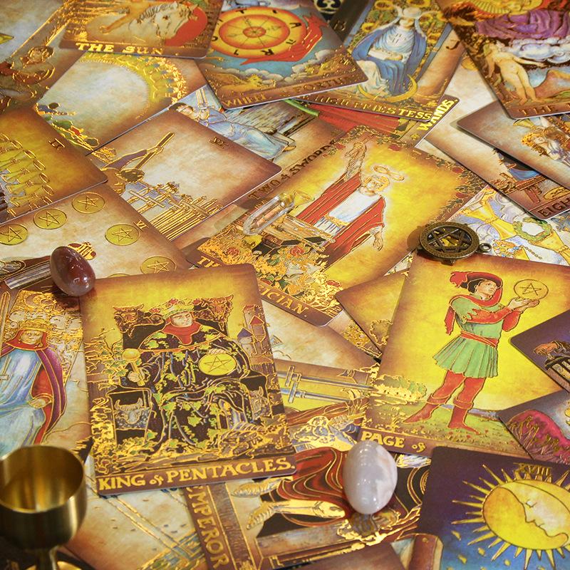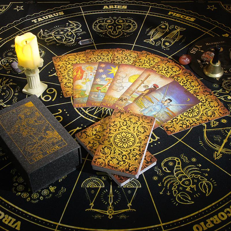 Tarot de cristal con lámina dorada tarot tarot impresión a color bronceado plástico PVC impermeable juego de cartas juego de mesa en stock venta al por mayor