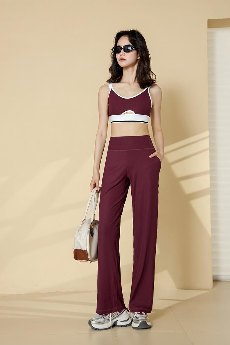 Pantalones de yoga para mujer, de cintura alta, deportivos, informales, para exteriores, fitness, pierna ancha, 2024