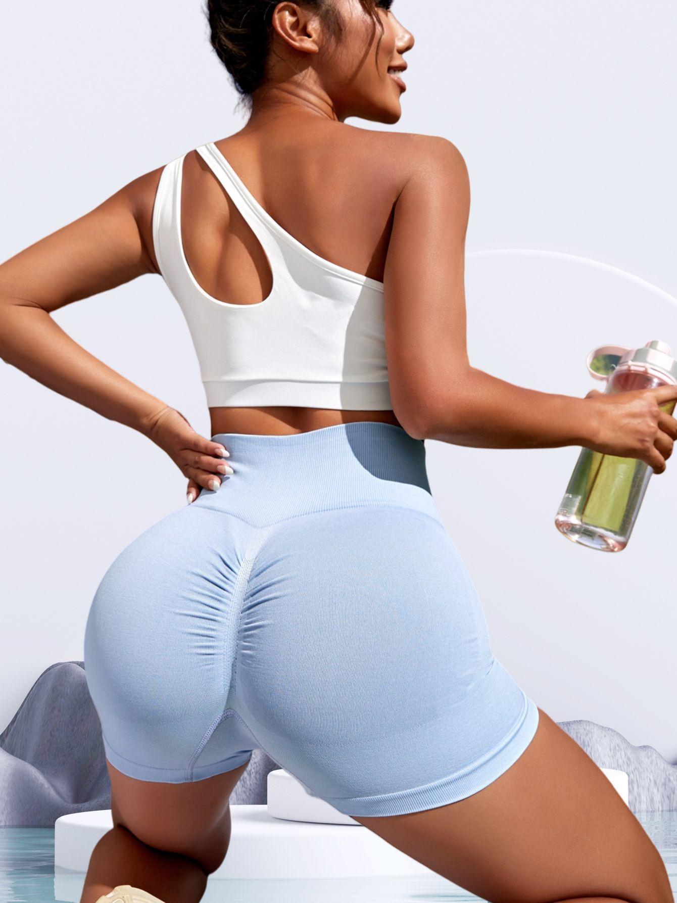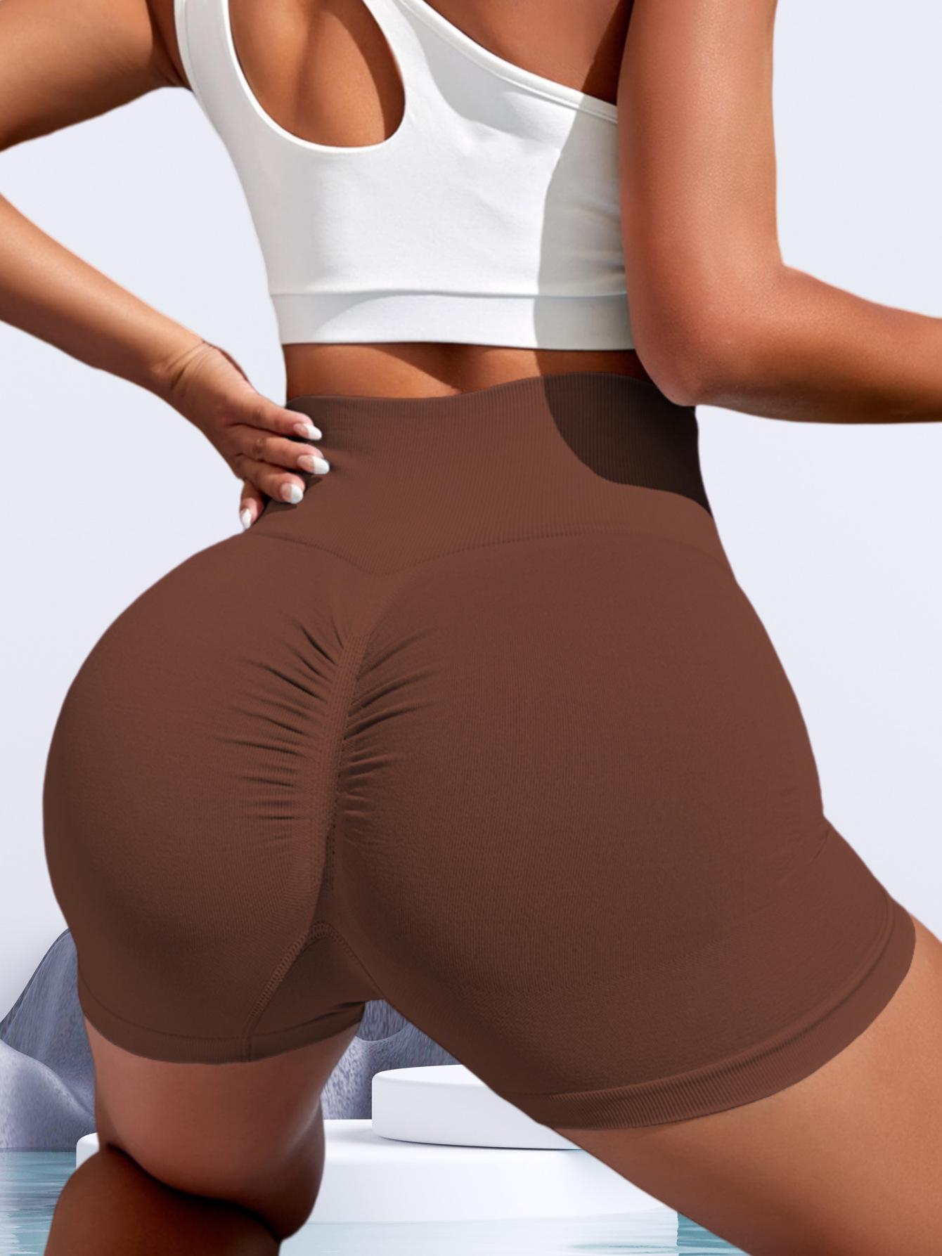 Mallas deportivas sin costuras para mujer, de cintura alta, elásticas, de color puro, transpirables, para fitness y yoga, de Europa y América.