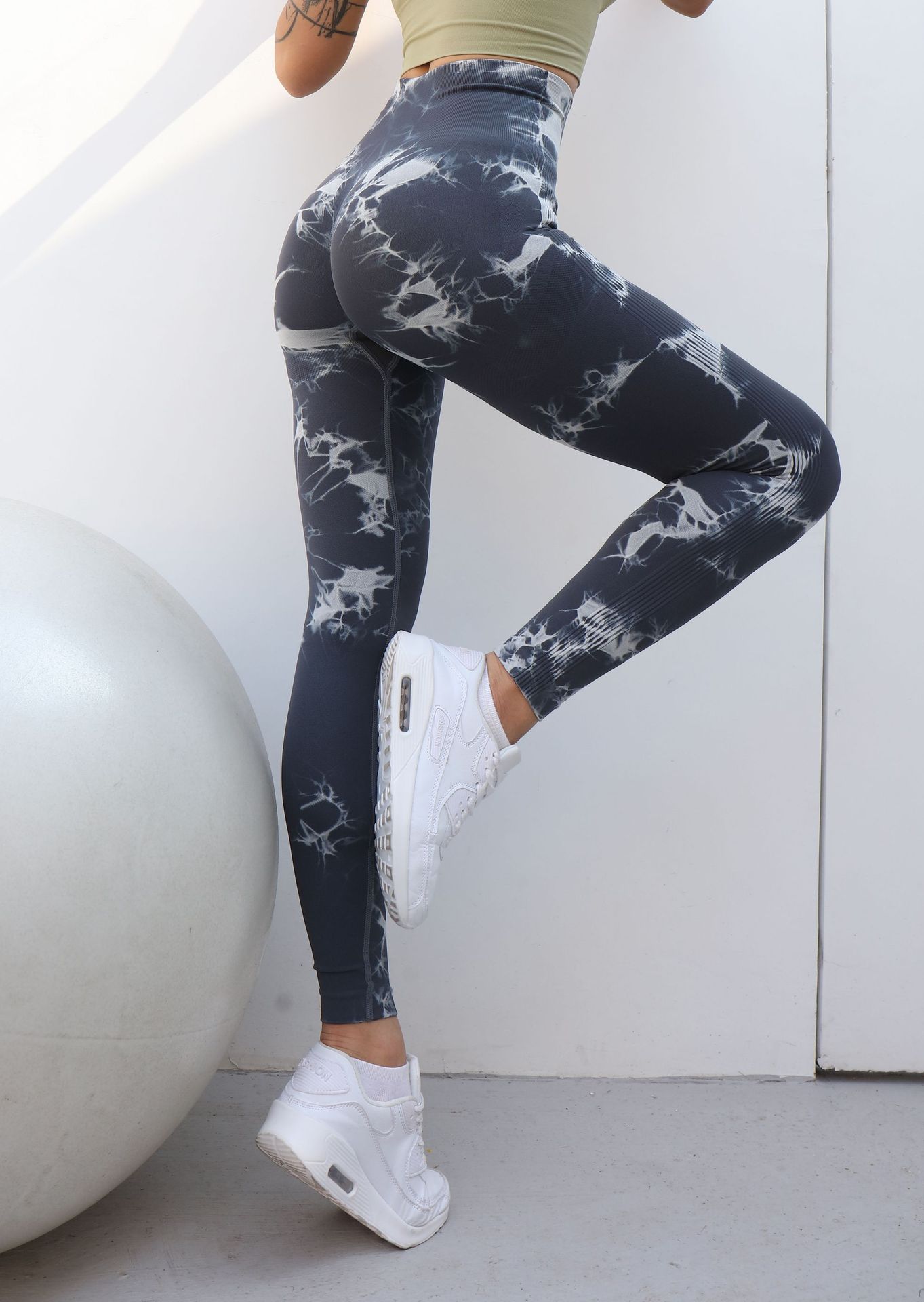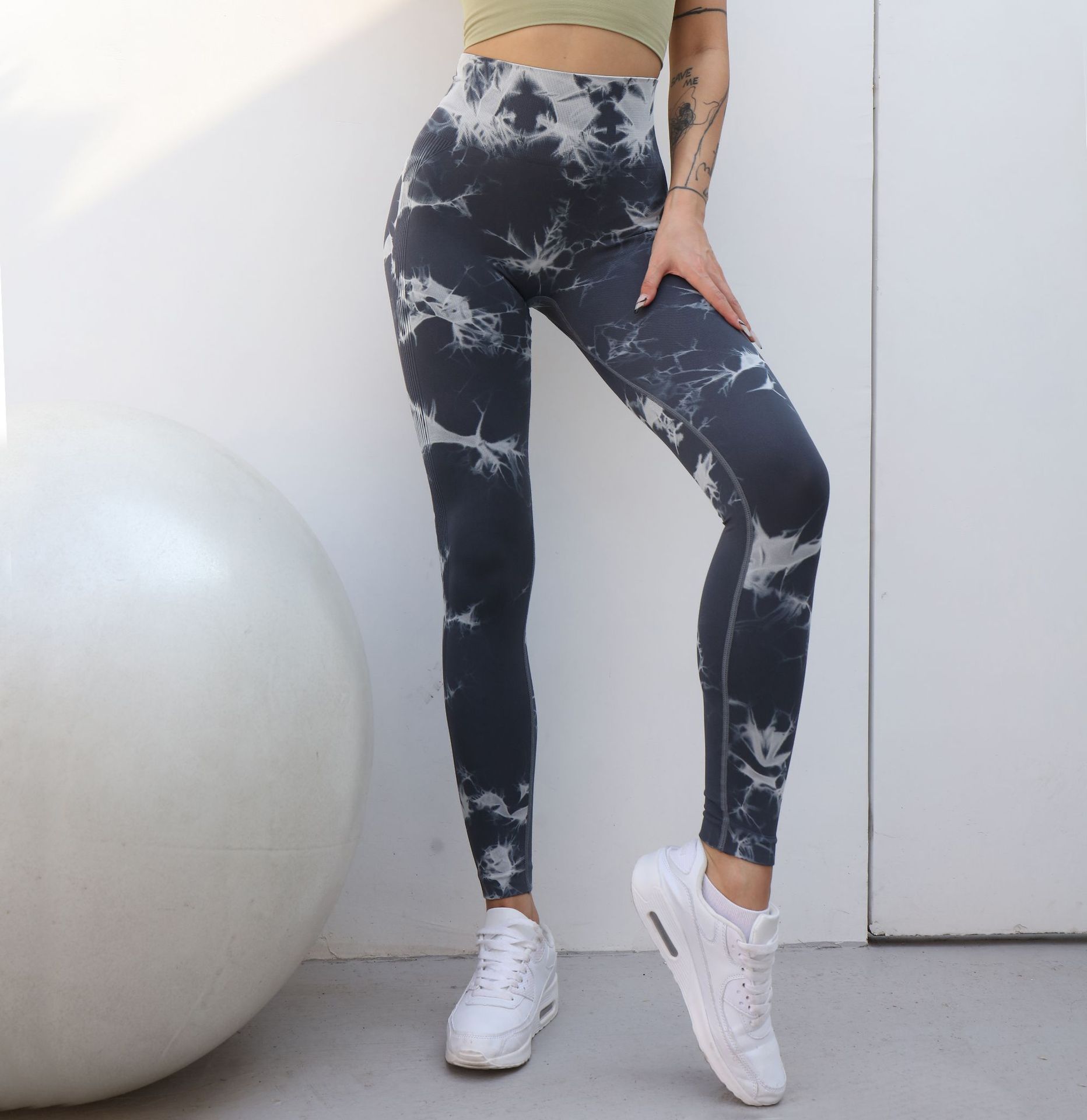 Pantalones de Fitness sin Costuras Levanta Glúteos Tie-dye para Mujer Cintura Alta Ajustados Deportivos para Correr Secado Rápido Transpirables Glúteos de Durazno Pantalones de Yoga