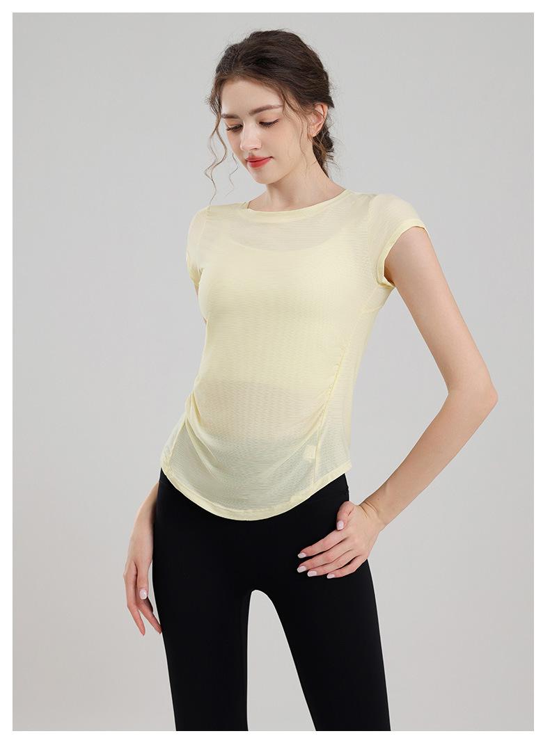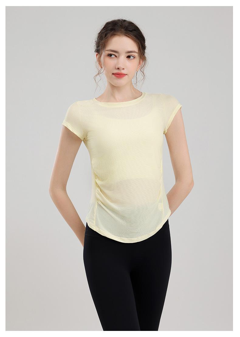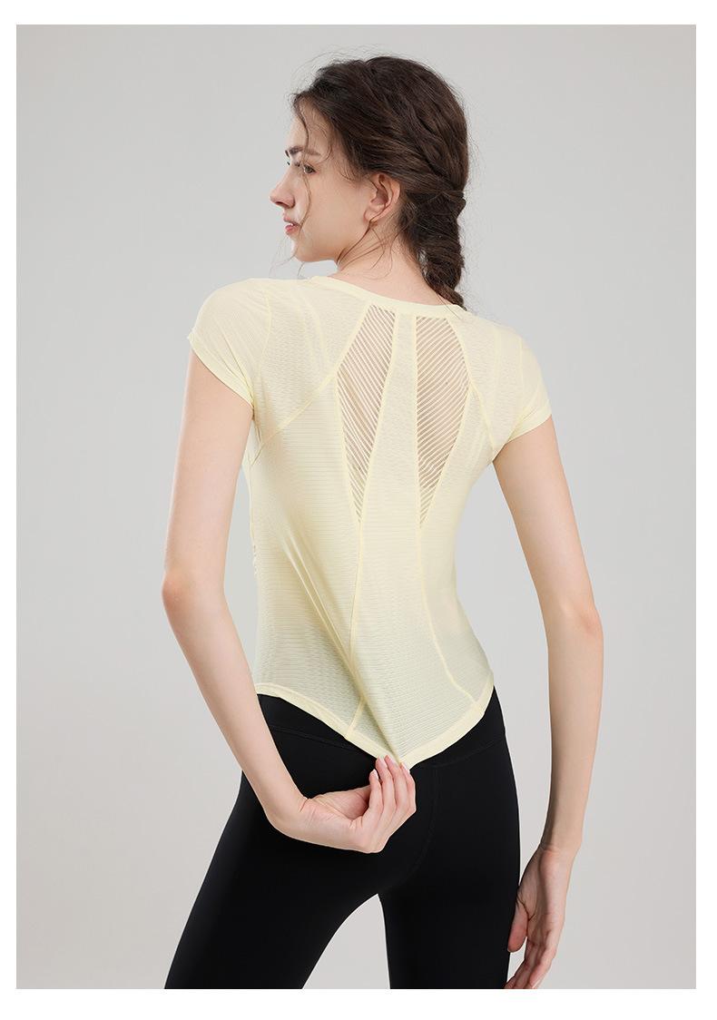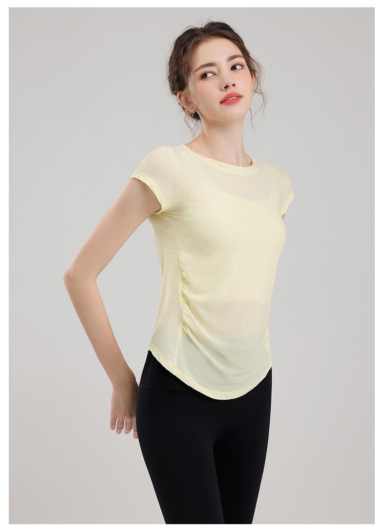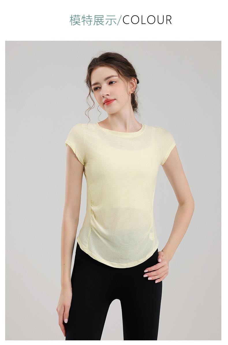 Blusa deportiva de manga corta de verano para mujer, de malla fina y holgada, para pilates, yoga, de secado rápido, para fitness y running.