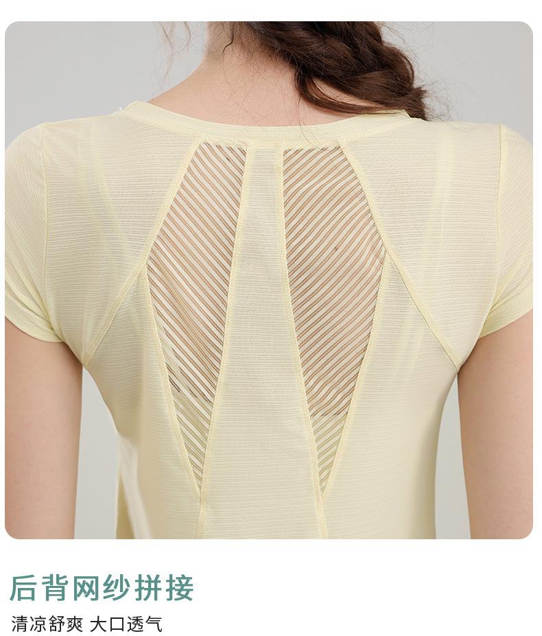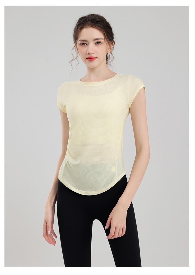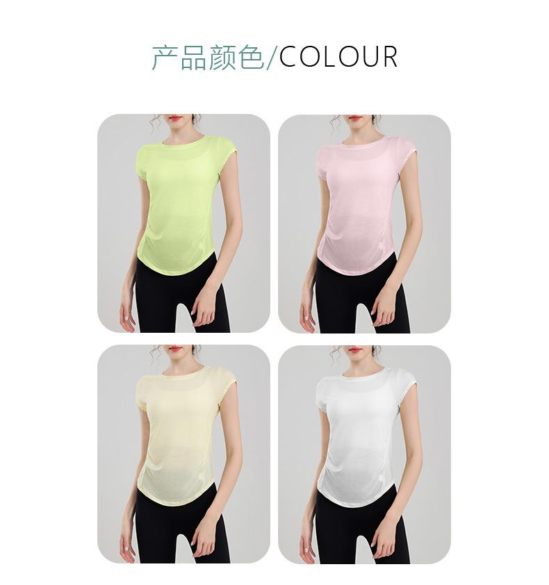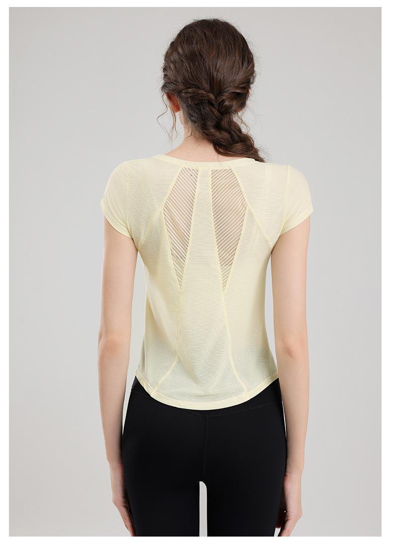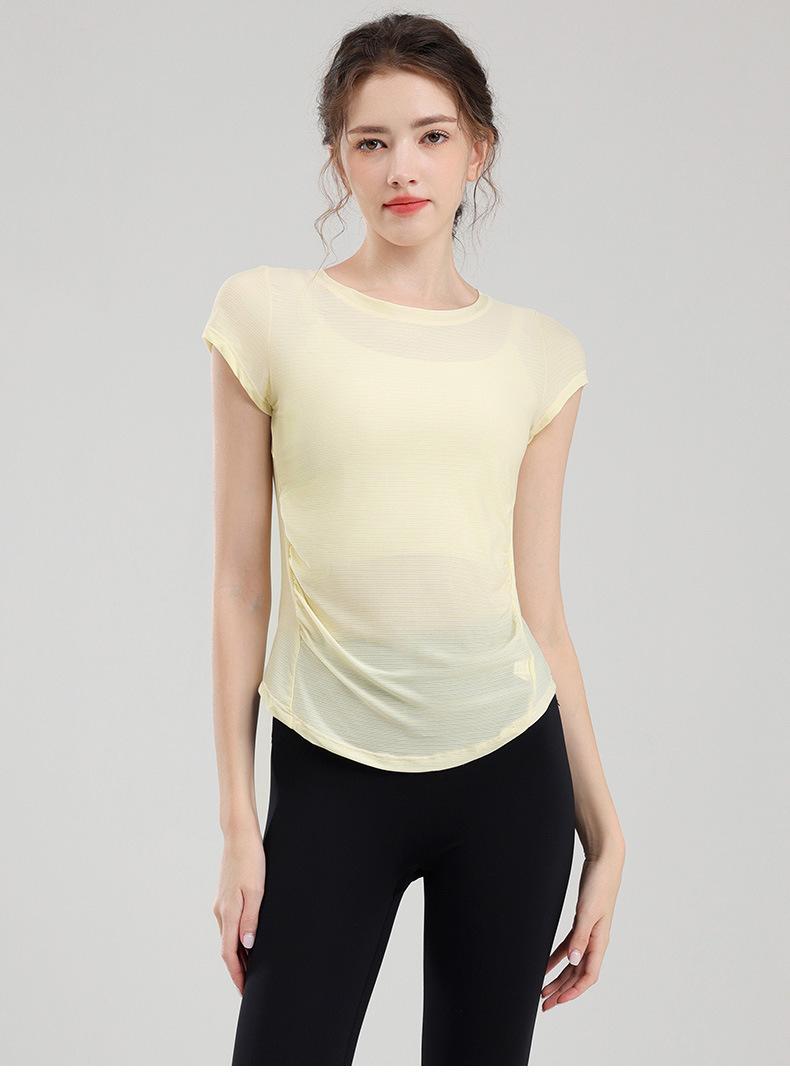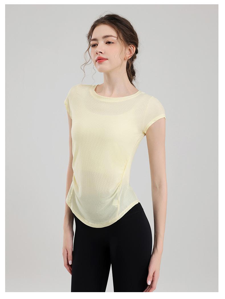 Blusa deportiva de manga corta de verano para mujer, de malla fina y holgada, para pilates, yoga, de secado rápido, para fitness y running.