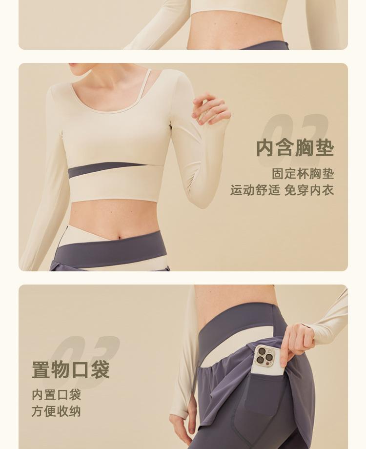 Ropa de Yoga para Mujer 2025 Primavera y Verano Nuevo Estilo Traje de Manga Larga con Almohadillas en el Pecho Look Adelgazante Tops Deportivos para Correr Ropa de Fitness para Mujer