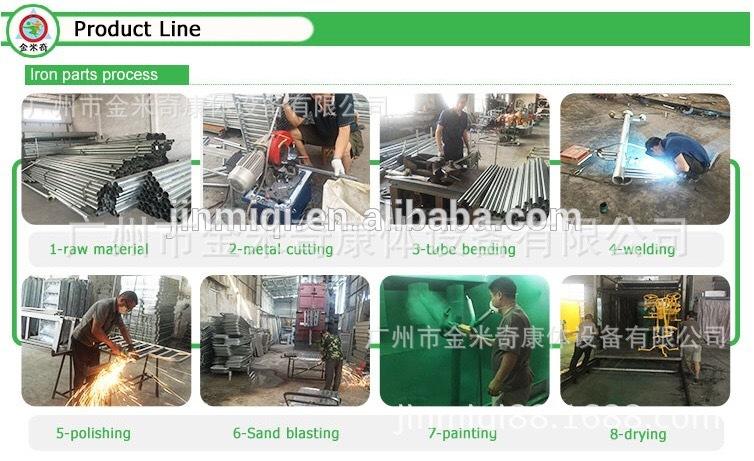 Selección de materiales:Nuestra fábrica selecciona acero de alta calidad con estándares nacionales y produce y procesa estrictamente de acuerdo con los requisitos de materiales estipulados por el Centro Nacional de Inspección de Calidad de Artículos Deportivos. Los materiales principales y auxiliares, como placas de hierro, cojinetes, polvo plástico, alambres de soldadura, etc., utilizados en nuestros productos provienen de fabricantes profesionales nacionales con amplias cualificaciones y excelente reputación. Puede estar seguro de la calidad.