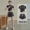 Black nylon short sleeves [mesh back], Black nylon short sleeves + black shorts [two-piece set]