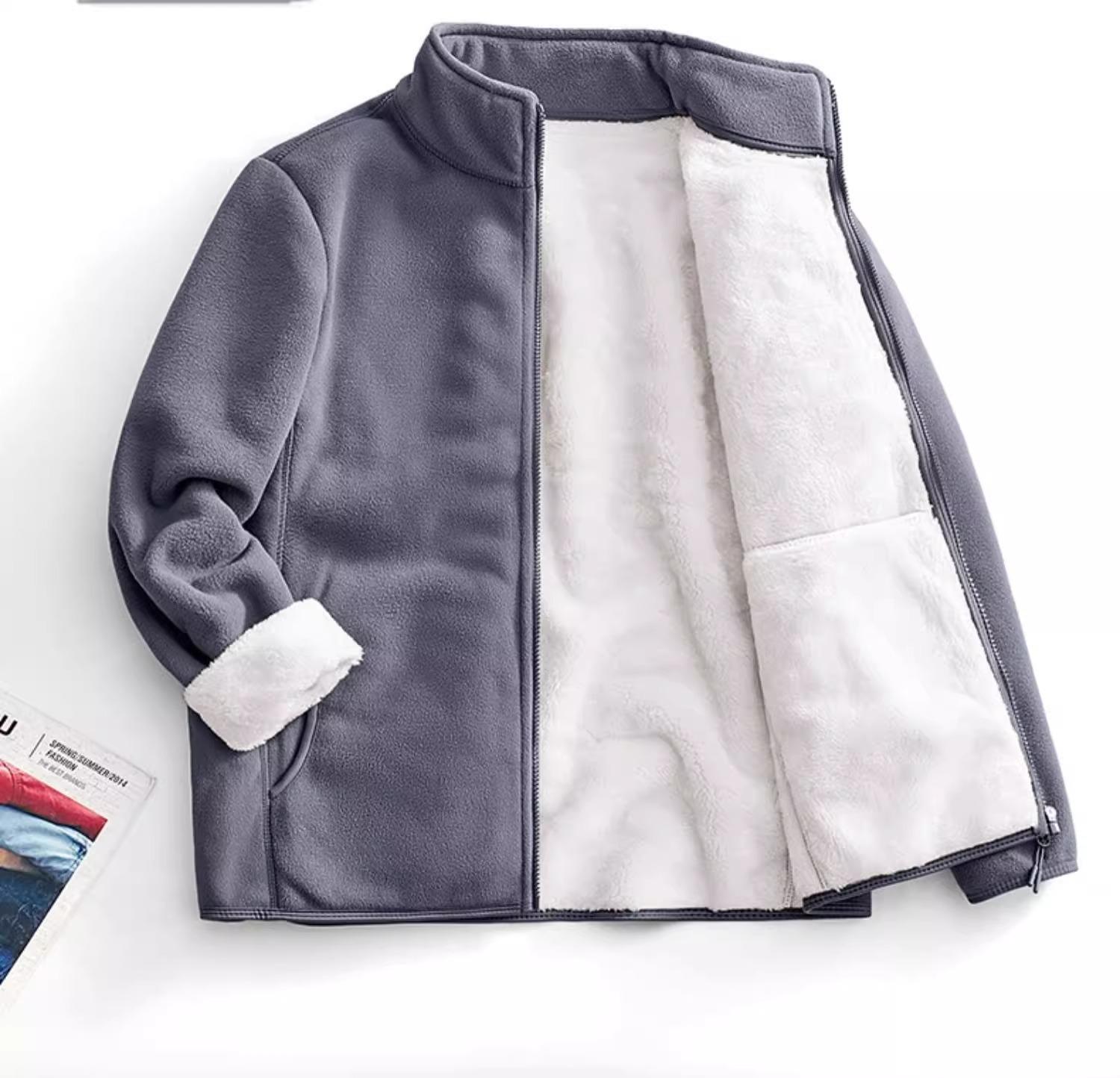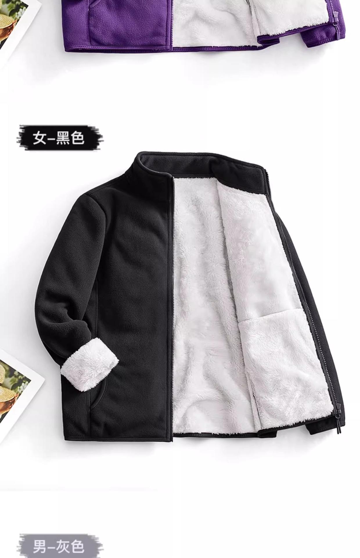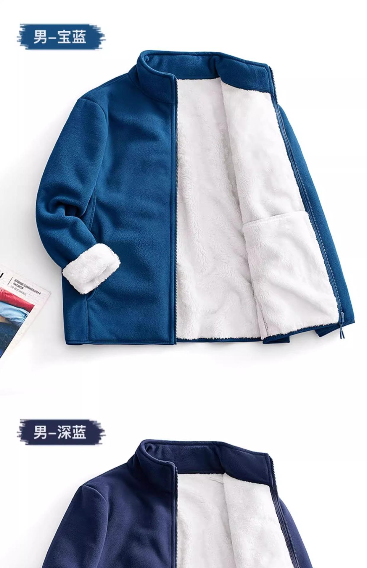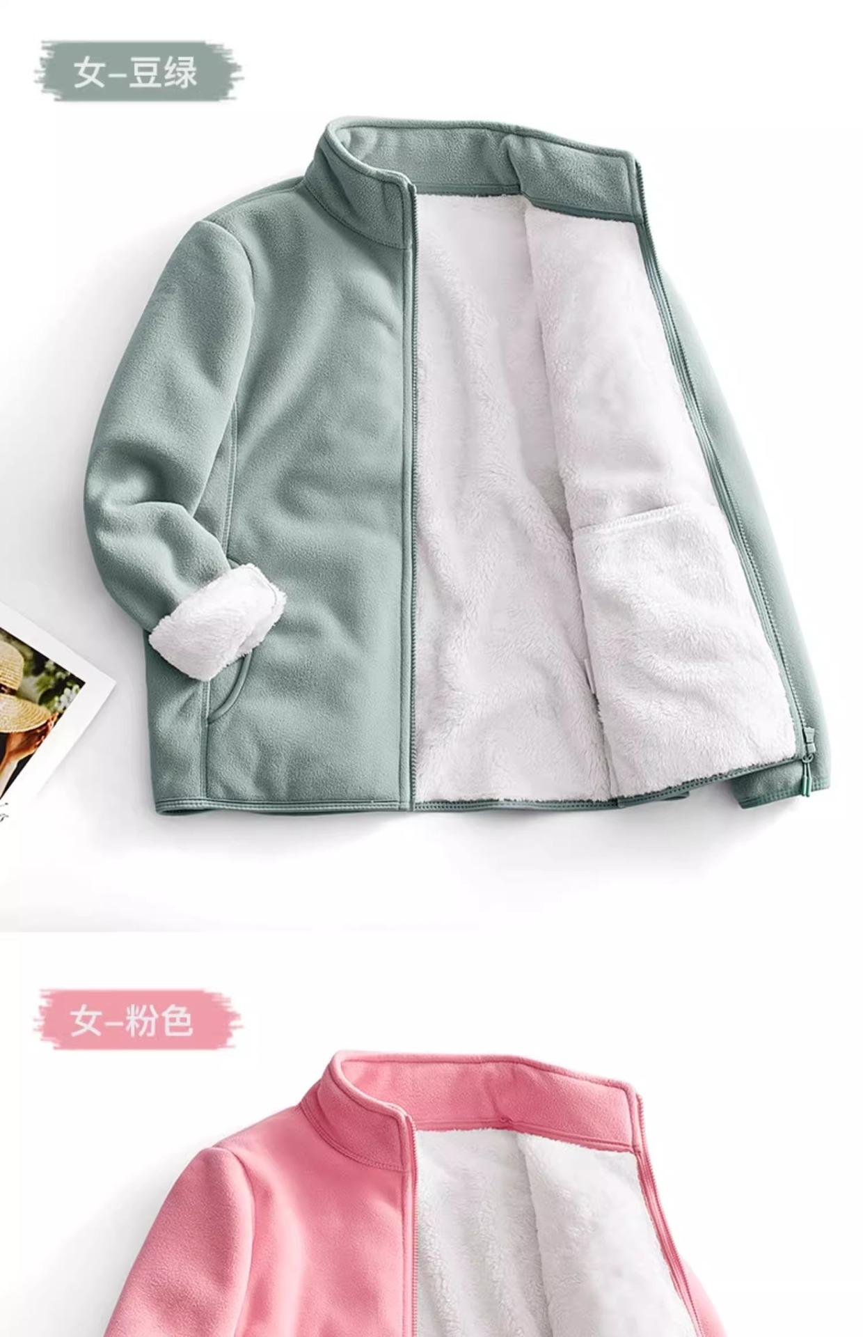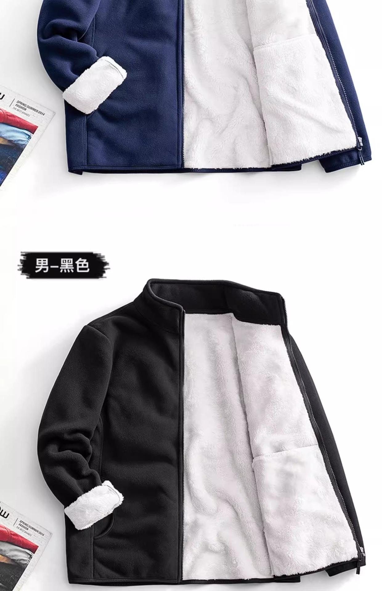 Abrigo de Primavera y Otoño para Hombre y Mujer para Exterior Forro Polar Coral Cárdigan Grueso con Cuello Vertical Forro Polar Polar de Doble Cara
