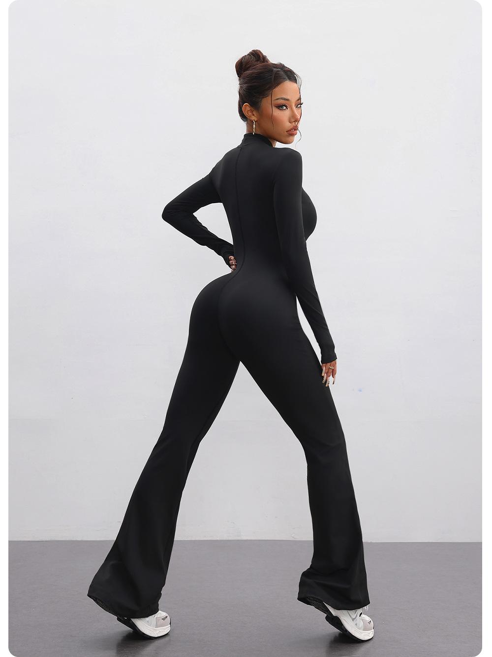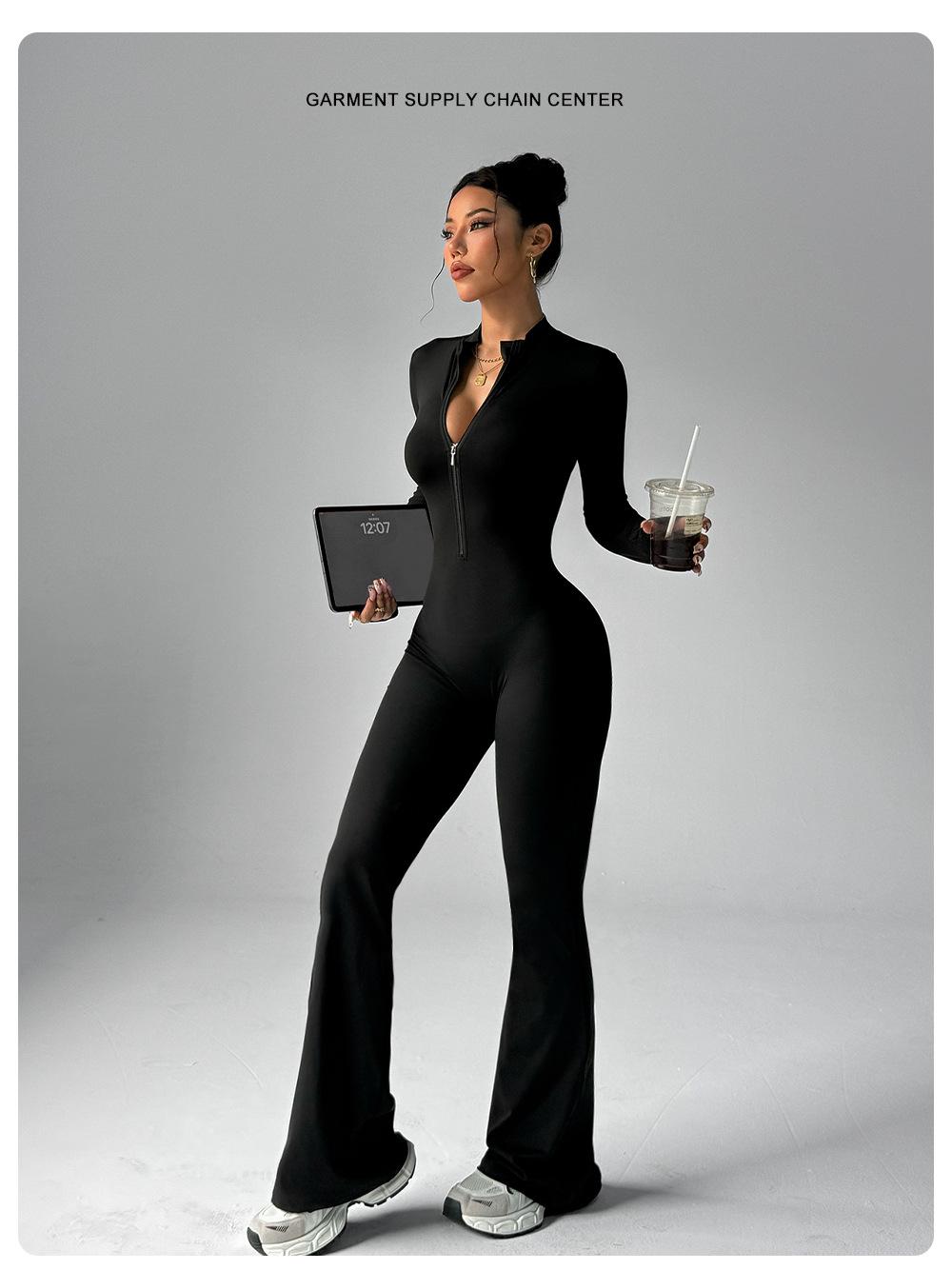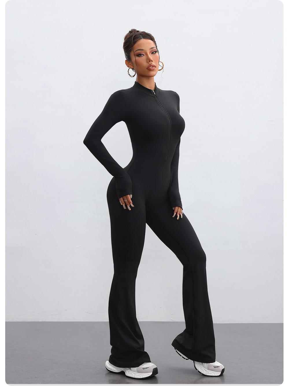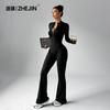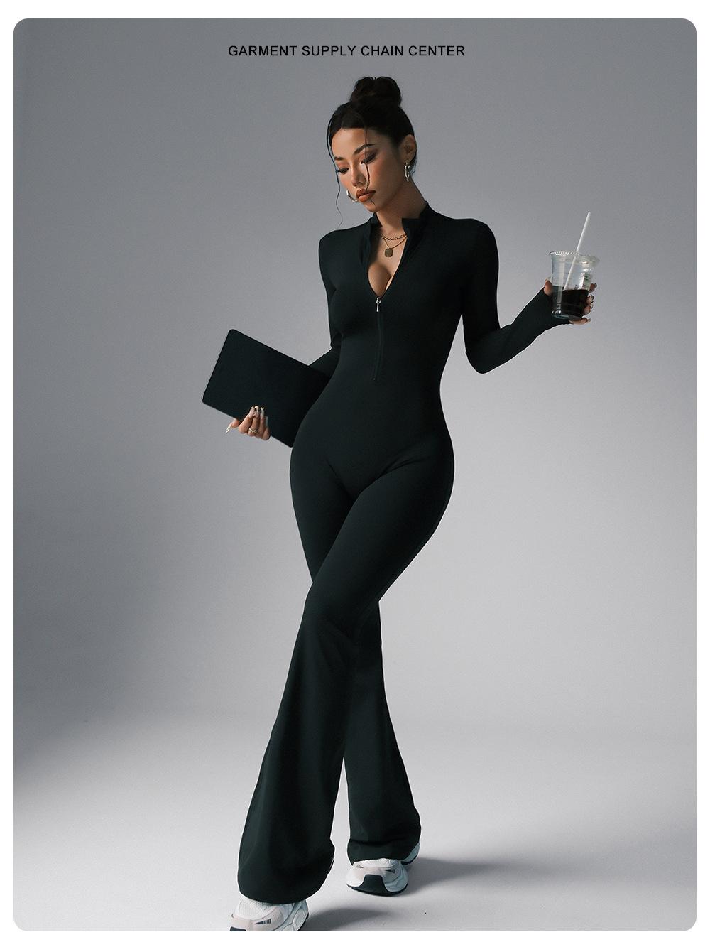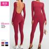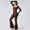 Mono deportivo ajustado para mujer europeo y americano transfronterizo Yoga Sexy Glúteos de melocotón Ropa de fitness Mono de Pilates Pantalones acampanados