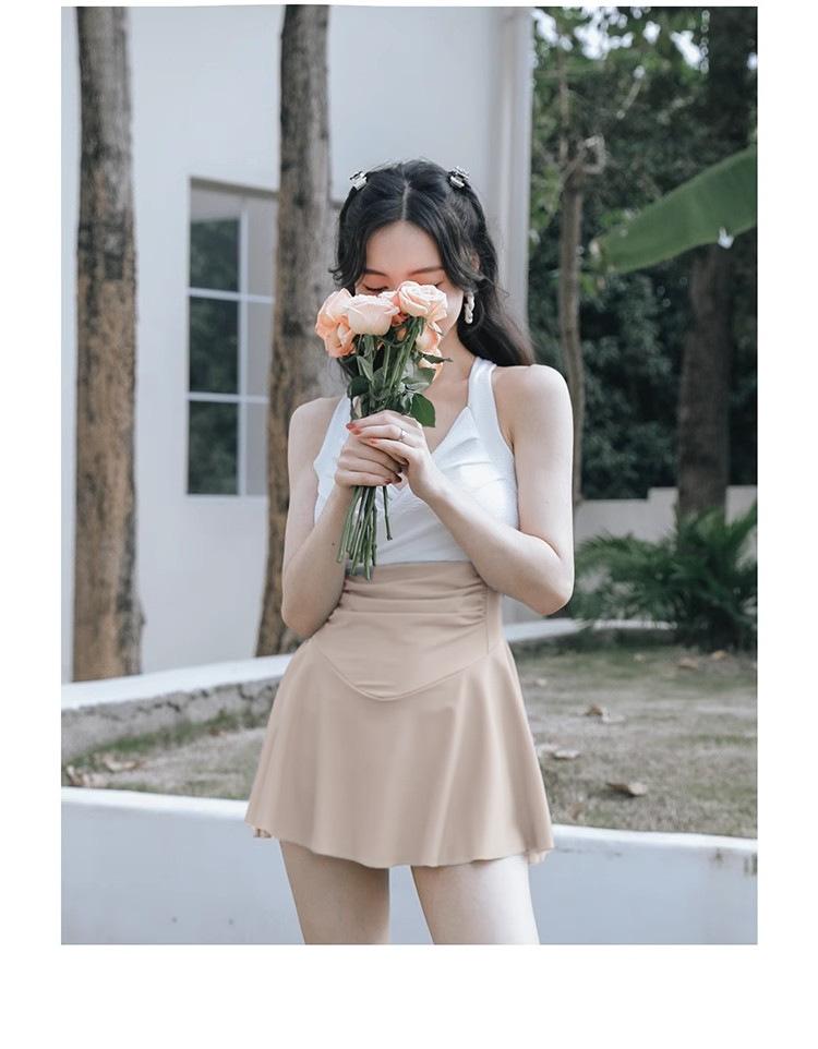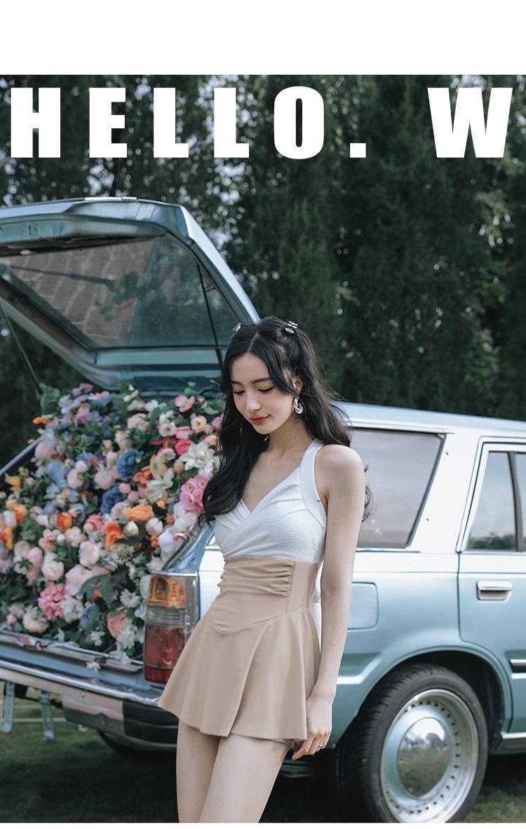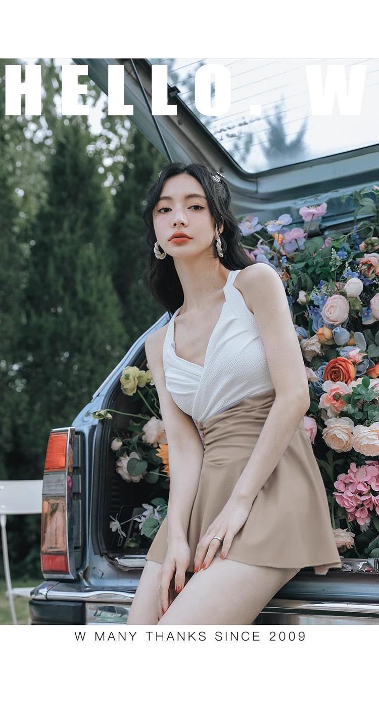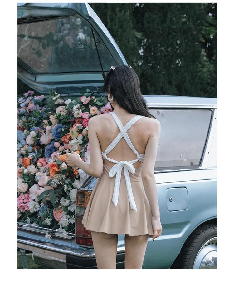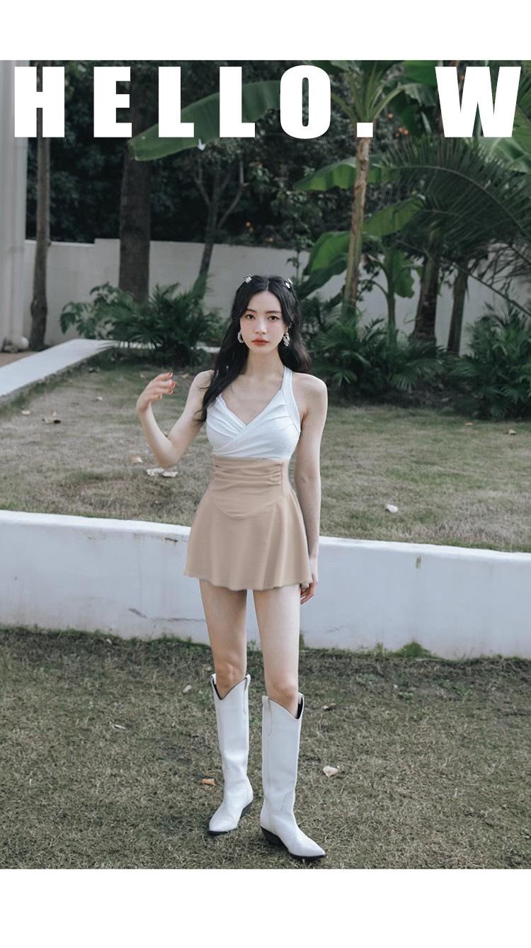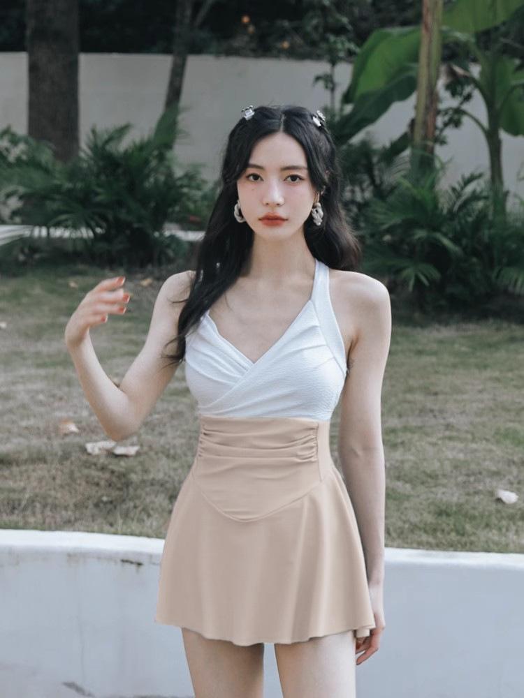 Traje de baño sexy de una pieza sin espalda que cubre el vientre, falda delgada, conservador en contraste, traje de baño para mujer, nuevo, vacaciones de aguas termales