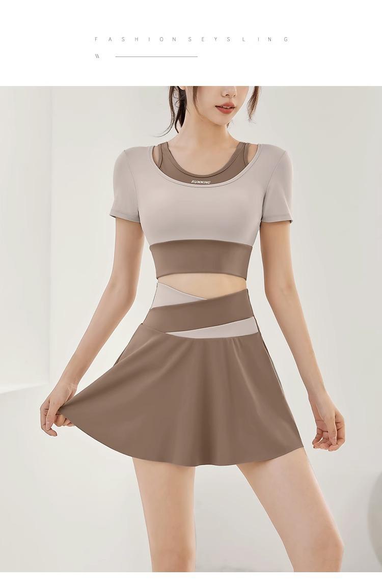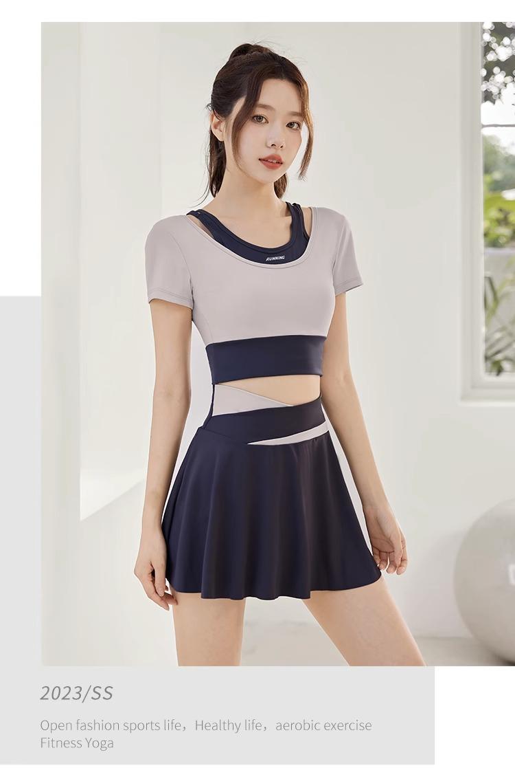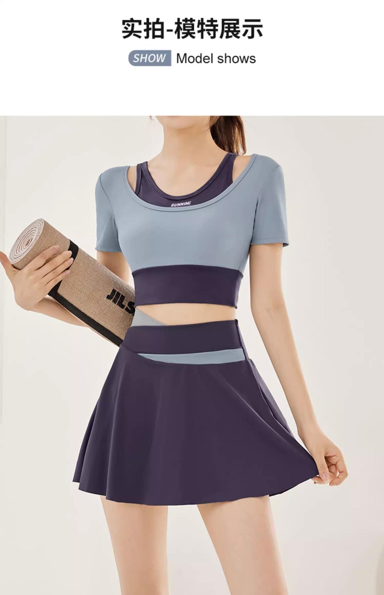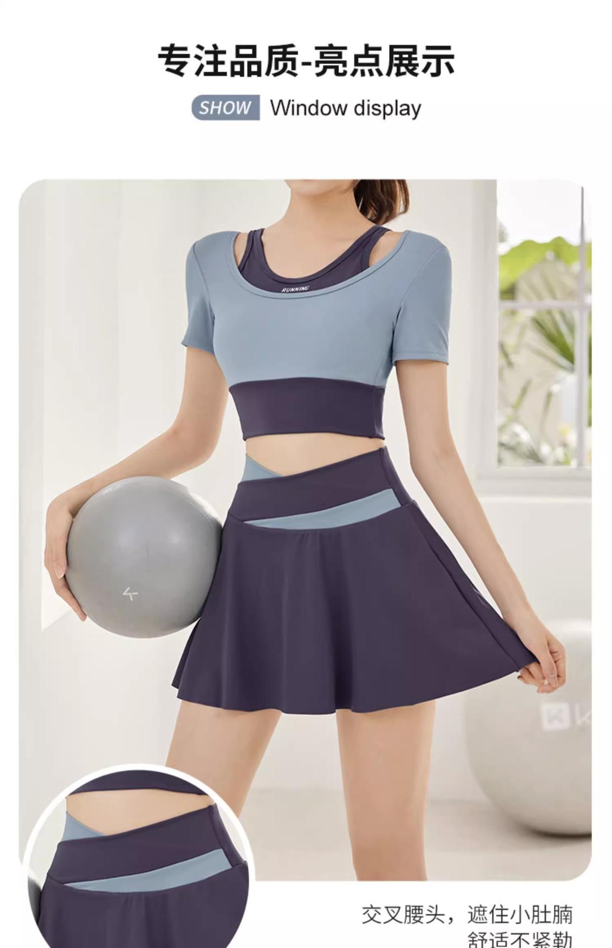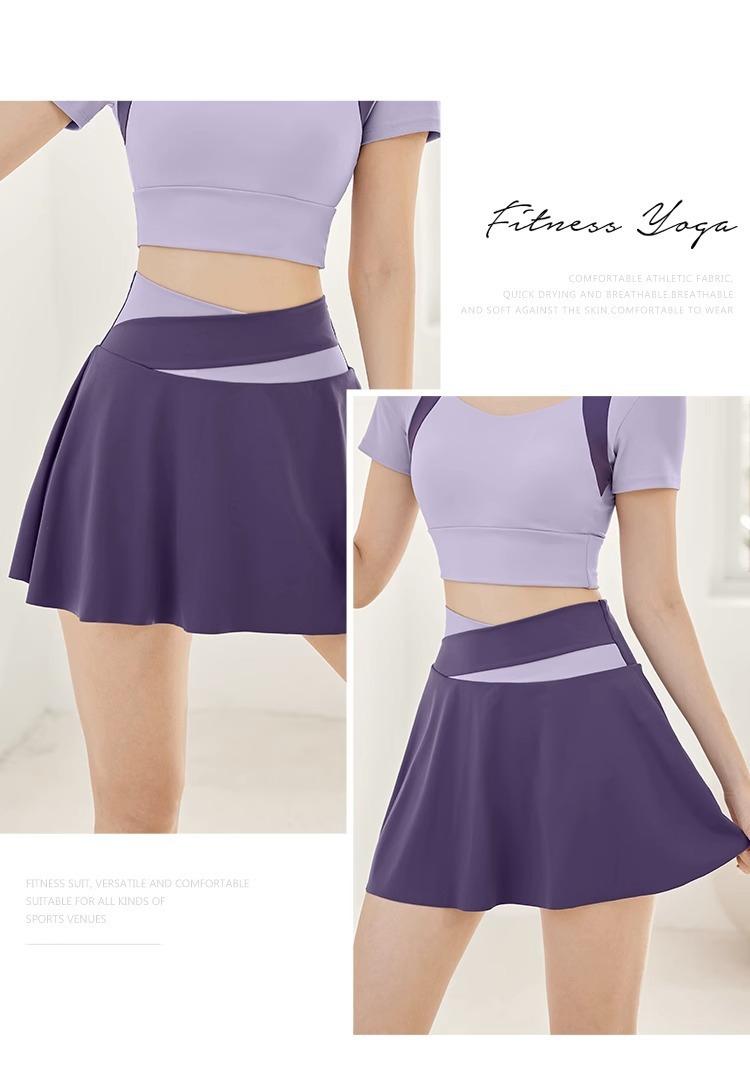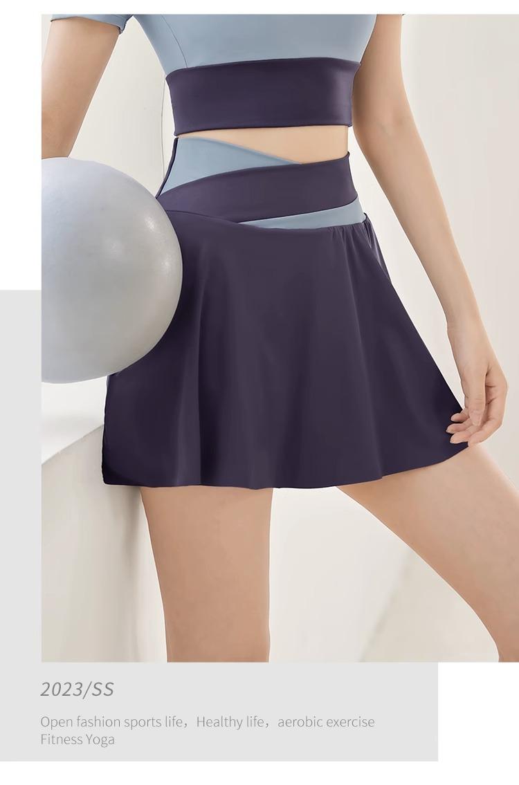 2025 Nueva Falda Corta Deportiva Falda de Yoga para Fitness para Mujer Verano Transpirable Ajustada Combinación de Colores Falda para Correr al Mayoreo