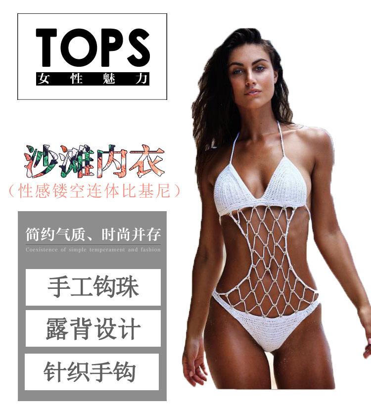 Traje de Baño Sexy Europeo y Americano Ropa Interior de Playa para Mujer Traje de Baño de Una Pieza Venta al por Mayor Nuevo Traje de Baño Bikini Tejido