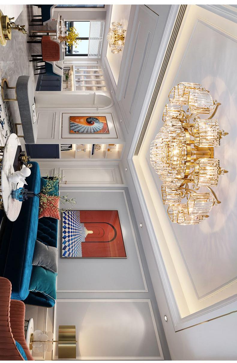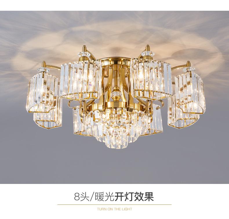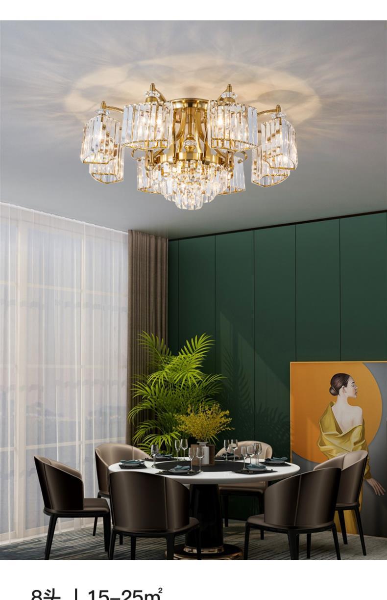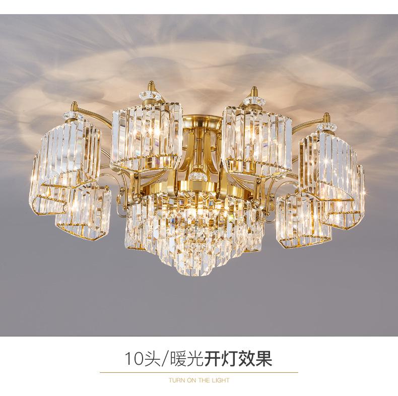 Lámpara de araña de cristal de lujo, lámpara principal para sala de estar, lámpara de comedor de ambiente moderno y sencillo, lámpara de techo dorada de alta gama para pasillo.