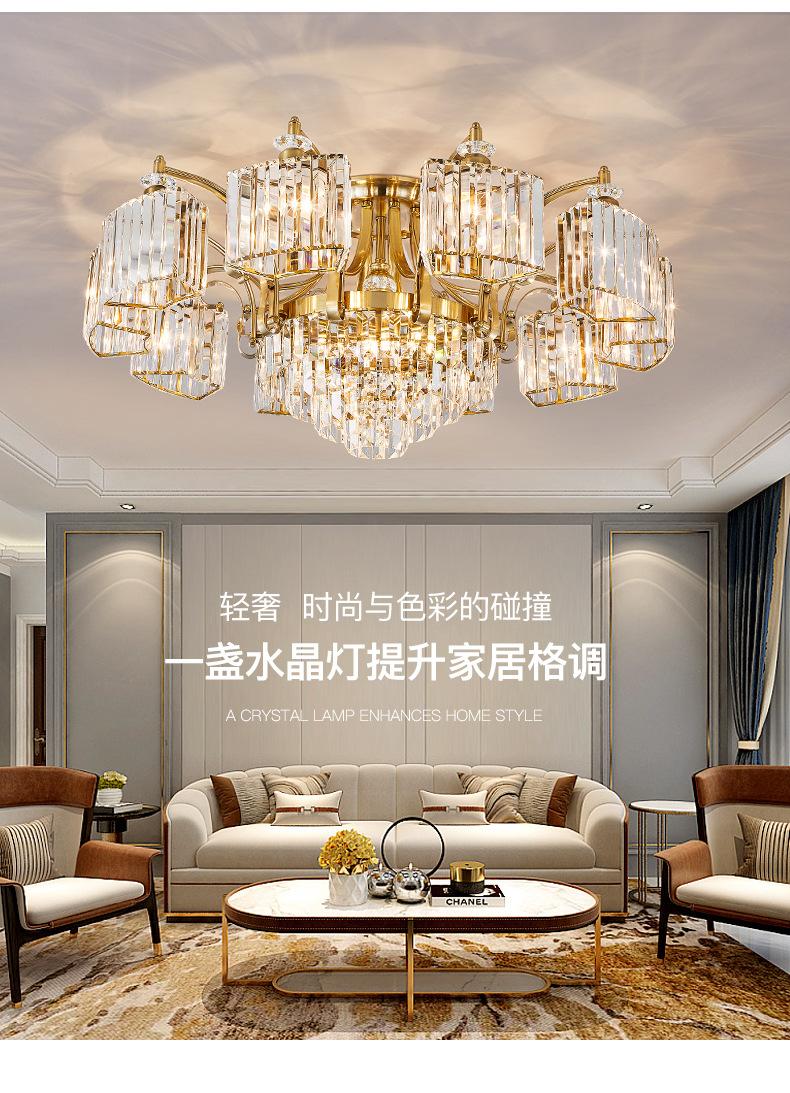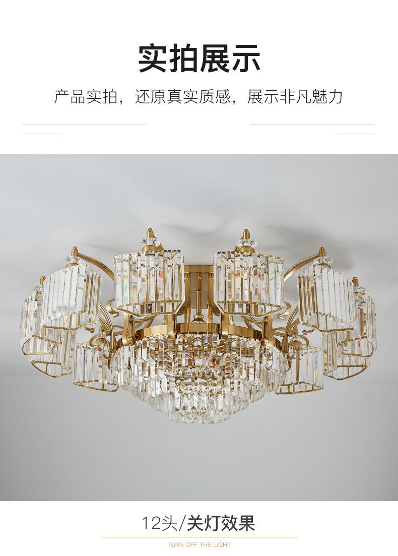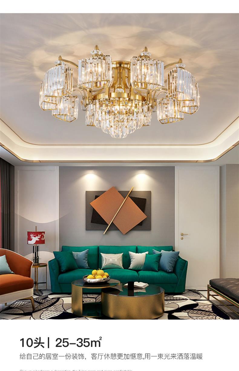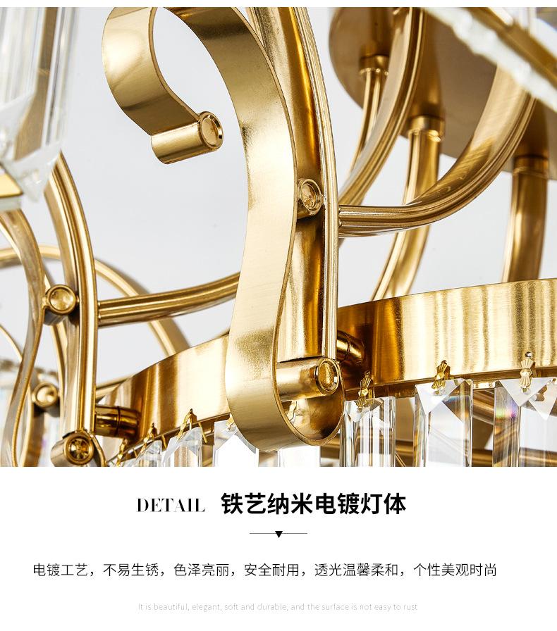 Lámpara de araña de cristal de lujo, lámpara principal para sala de estar, lámpara de comedor de ambiente moderno y sencillo, lámpara de techo dorada de alta gama para pasillo.