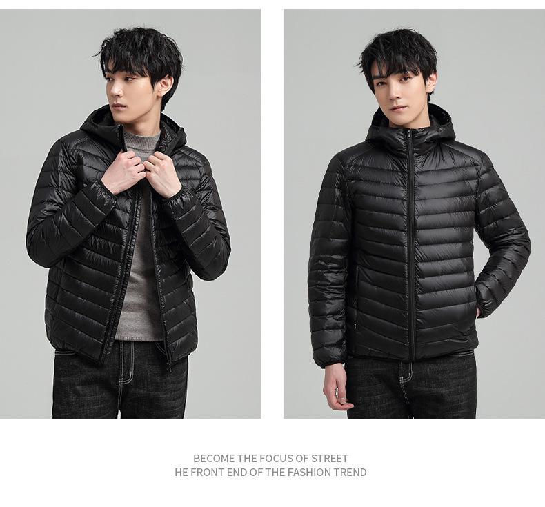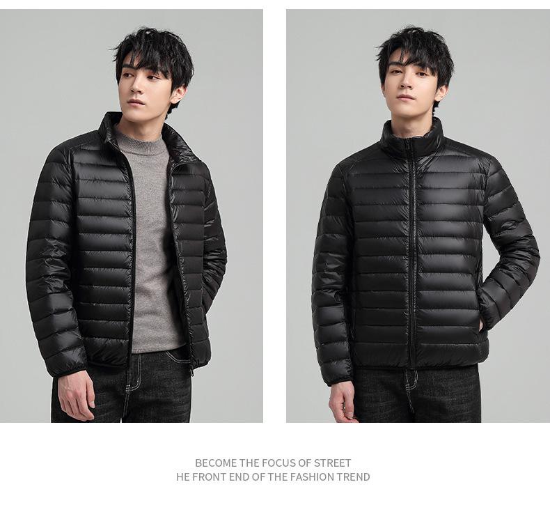 Nueva chamarra ligera de plumón para hombre corta con capucha otoño e invierno nueva moda abrigo de cuello alto a la moda plumón de pato blanco ropa de hombre