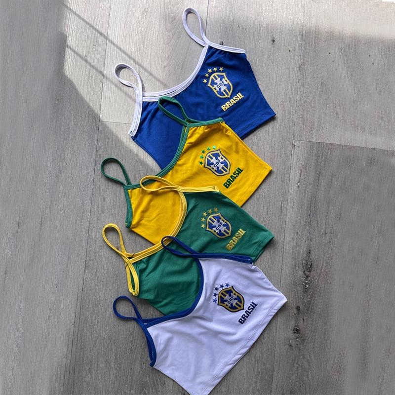 2024 Nuevo Estilo Deportivo Delgado Transfronterizo con Estampado de Letras Brasileñas Sexy Estilo Club Nocturno Camisola Chaleco