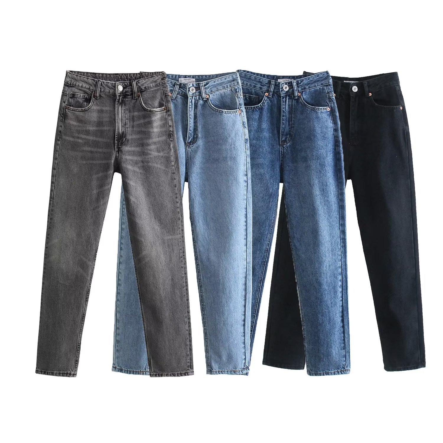 2023 otoño nuevo europeo y americano transfronterizo mujer versión NET de cuatro colores adelgazamiento cintura alta retro sueltos vaqueros rectos
