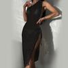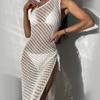 Vestido de playa sexy calado de un hombro con abertura para vacaciones de verano transfronterizas, vestido tejido de punto, bikini, camisa vestido cubierta protectora solar