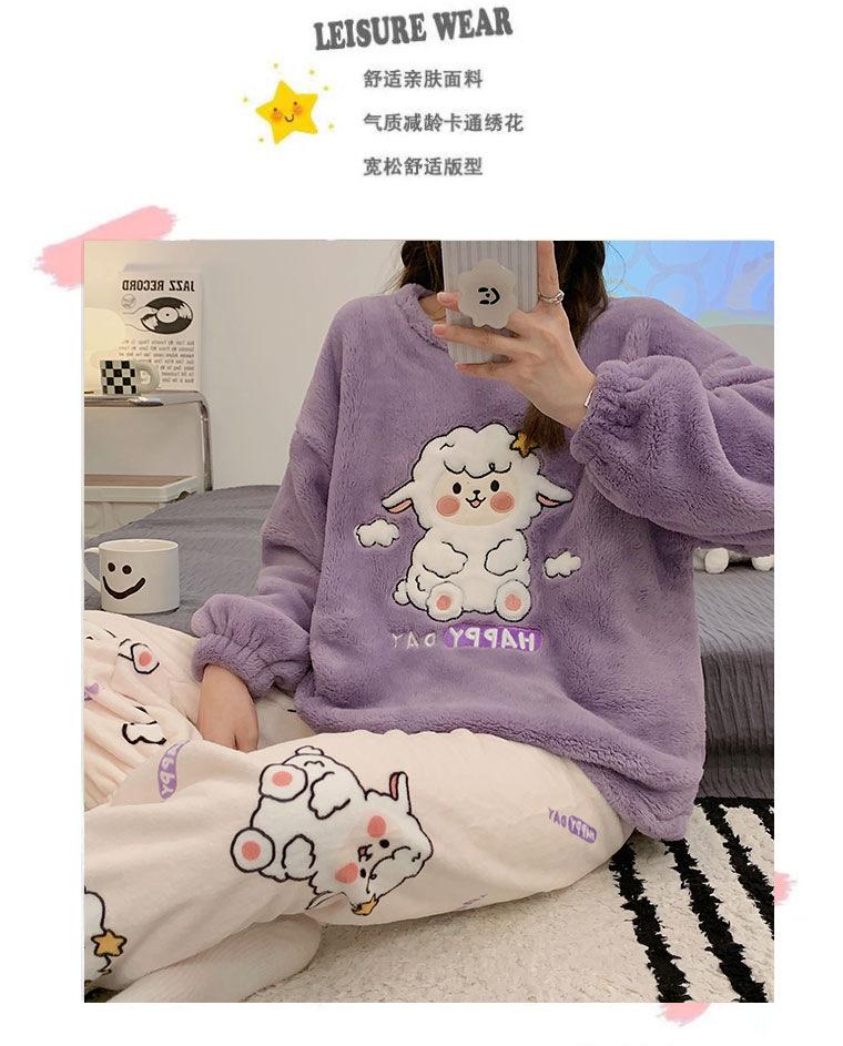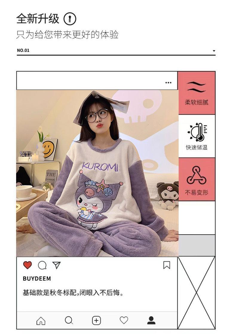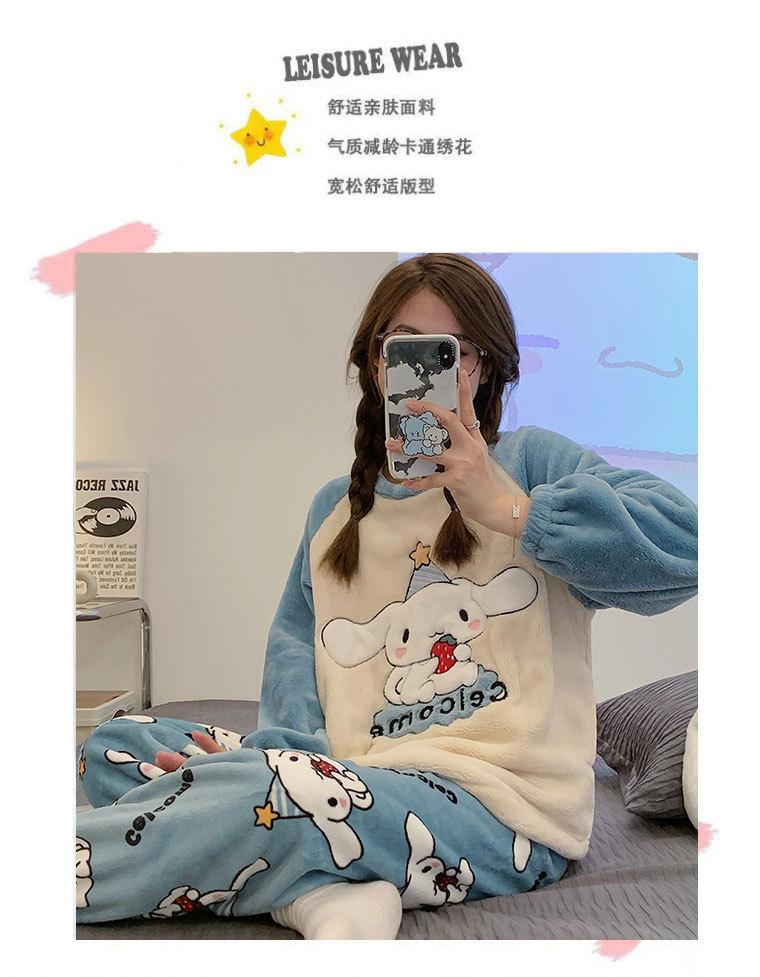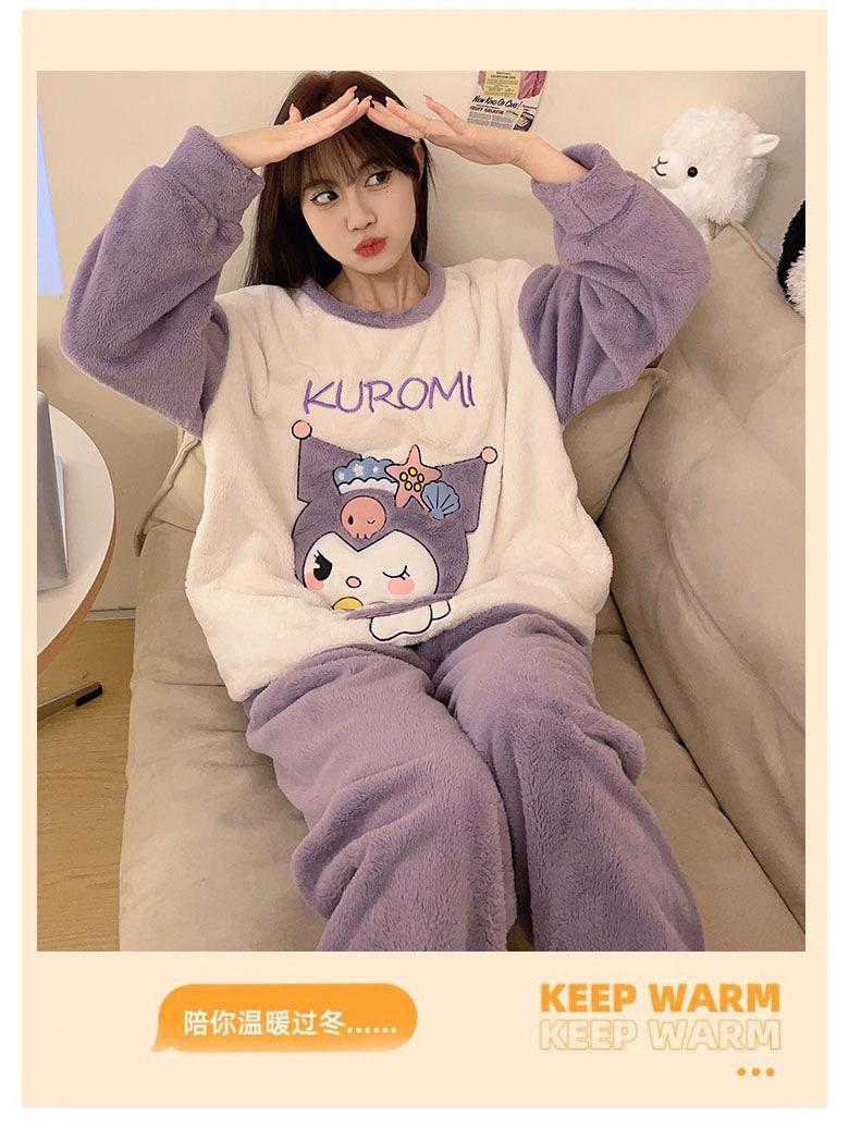Pijama de forro polar coral para mujer de invierno Corea del Sur ins nuevo japonés coolomi franela para estar en casa