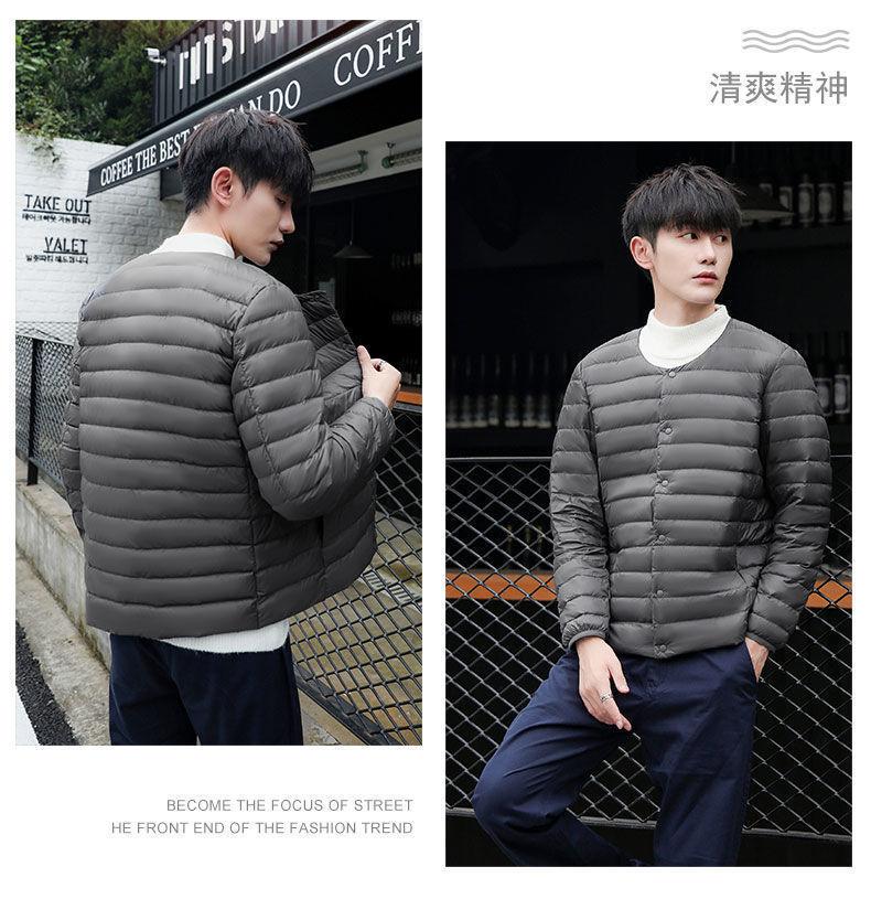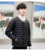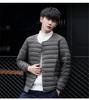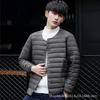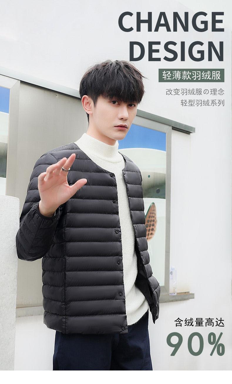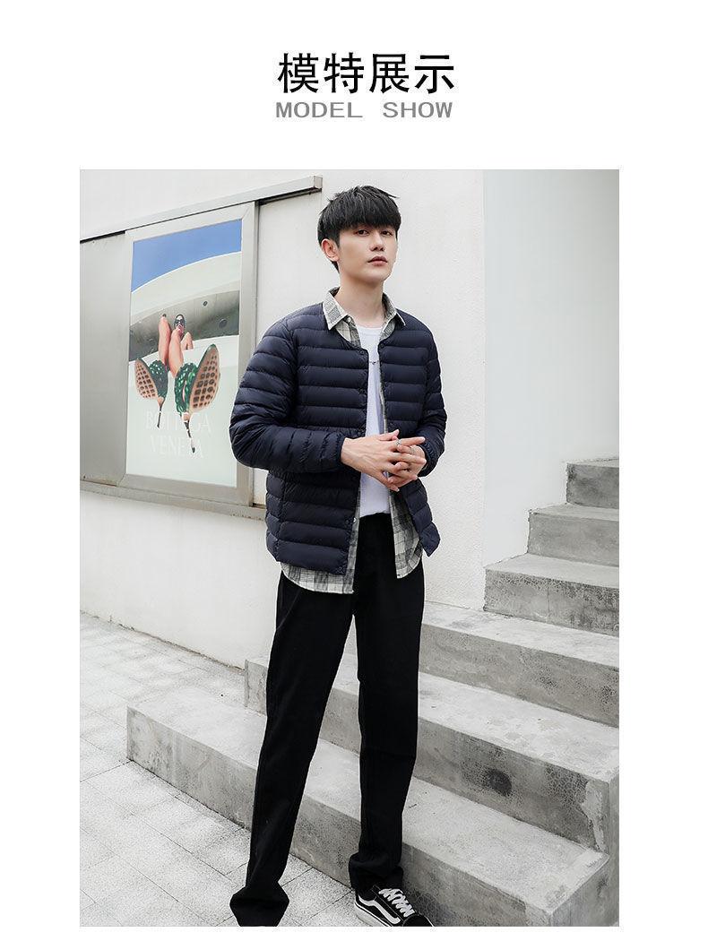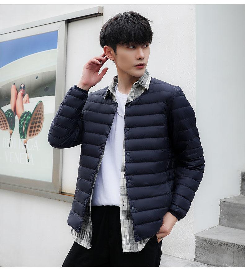 2025 Nueva Chaqueta de Plumas Ligera para Hombre Corta Cuello Redondo Cálida Forro Manga Larga Ajustada Delgada Talla Grande Chaqueta de Invierno