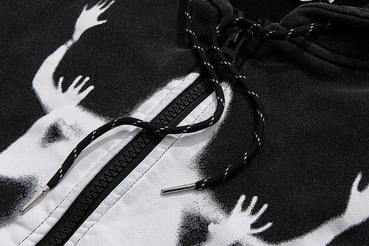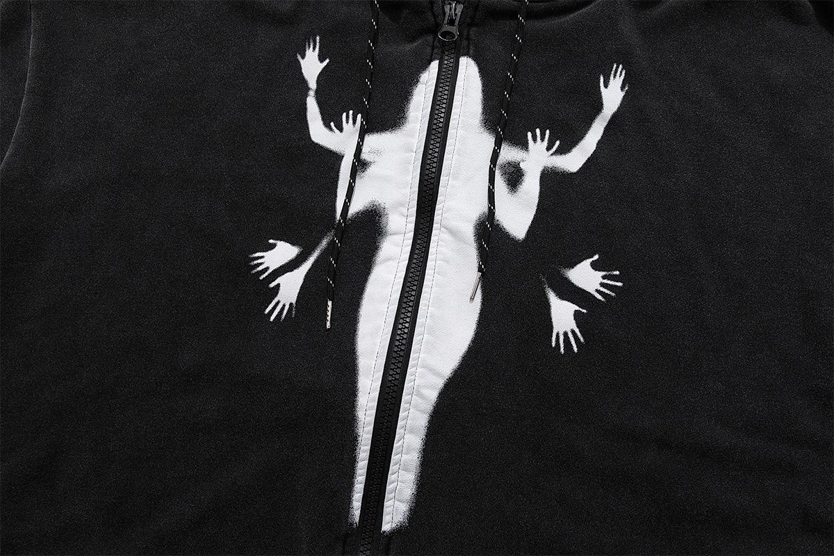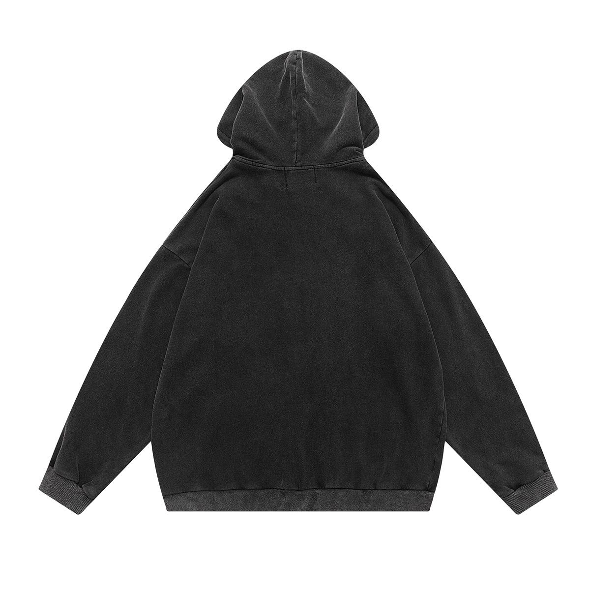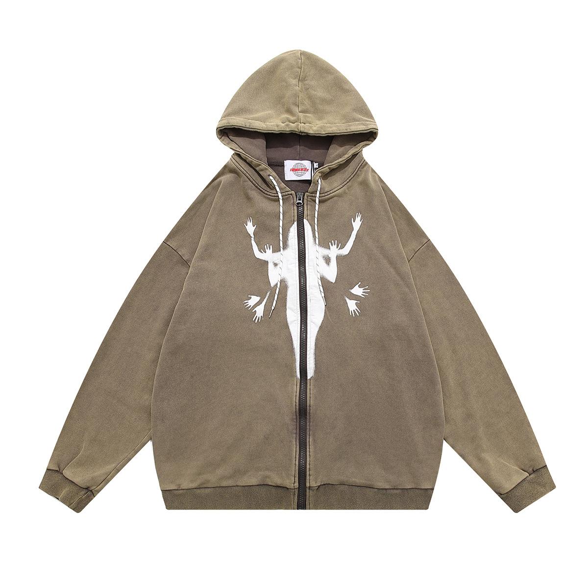 Marca de moda Jiayiku High Street Americano cárdigan suéter abrigo otoño e invierno Nuevo Figura fantasma sudadera con capucha lavado pesado