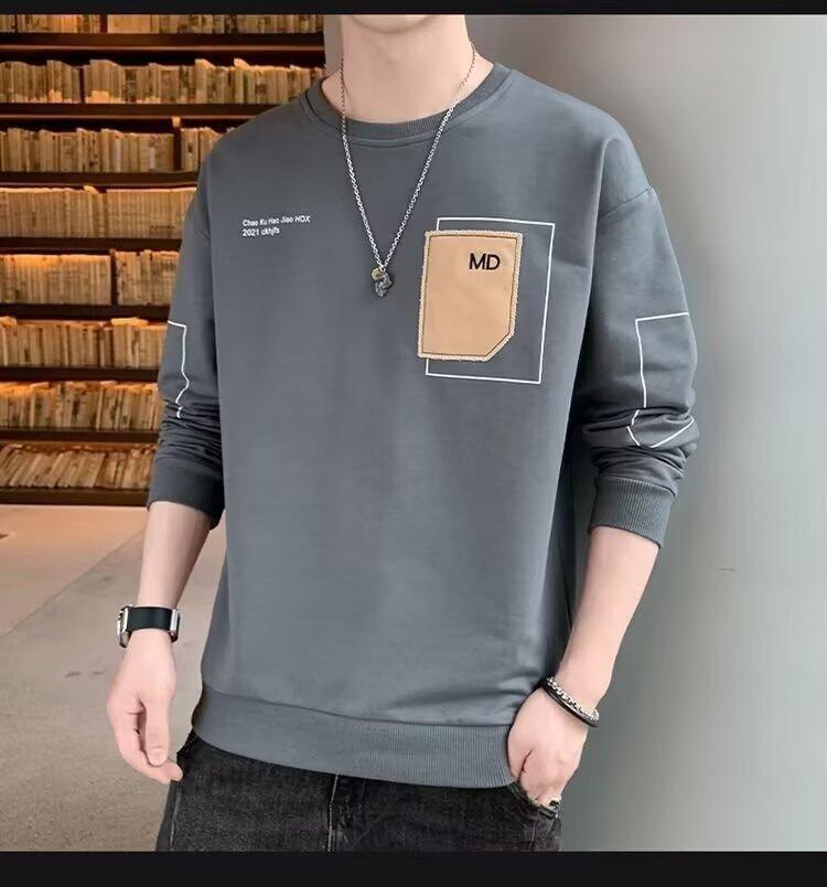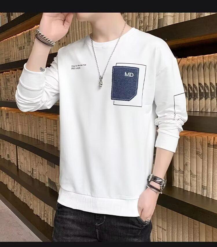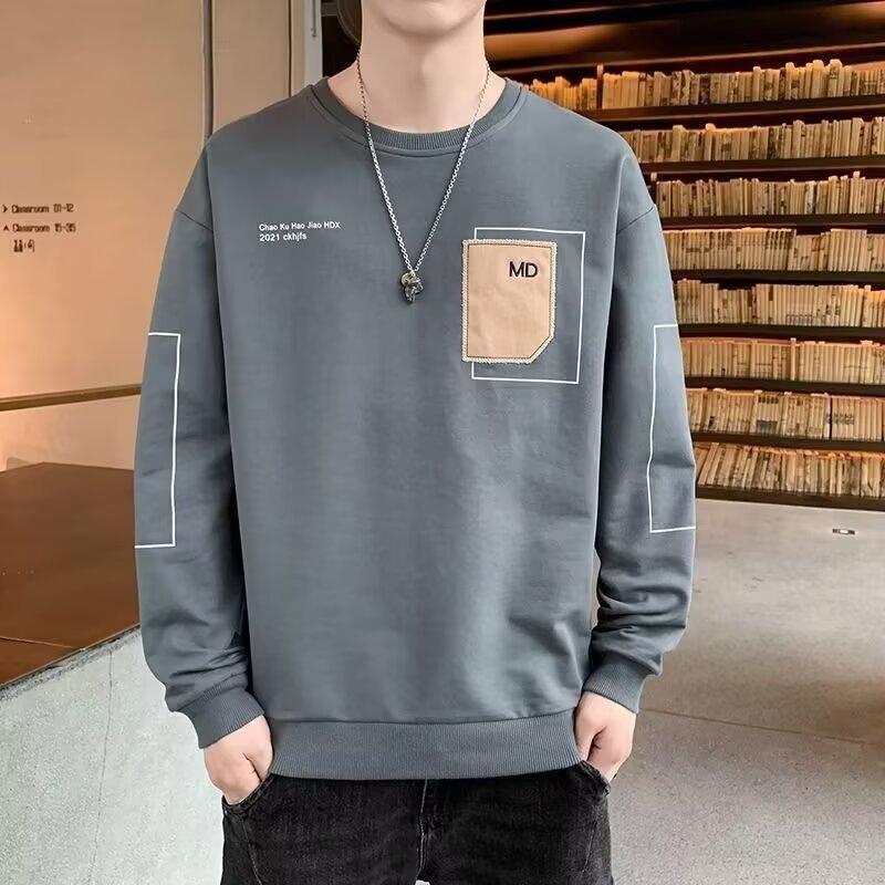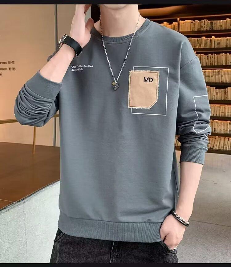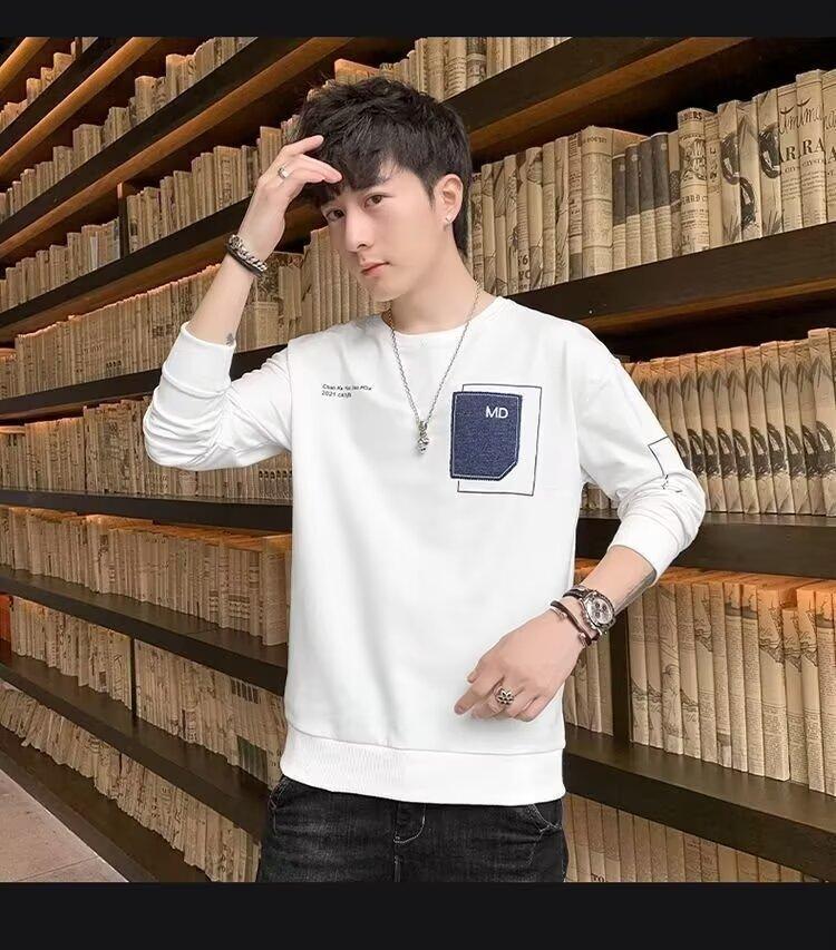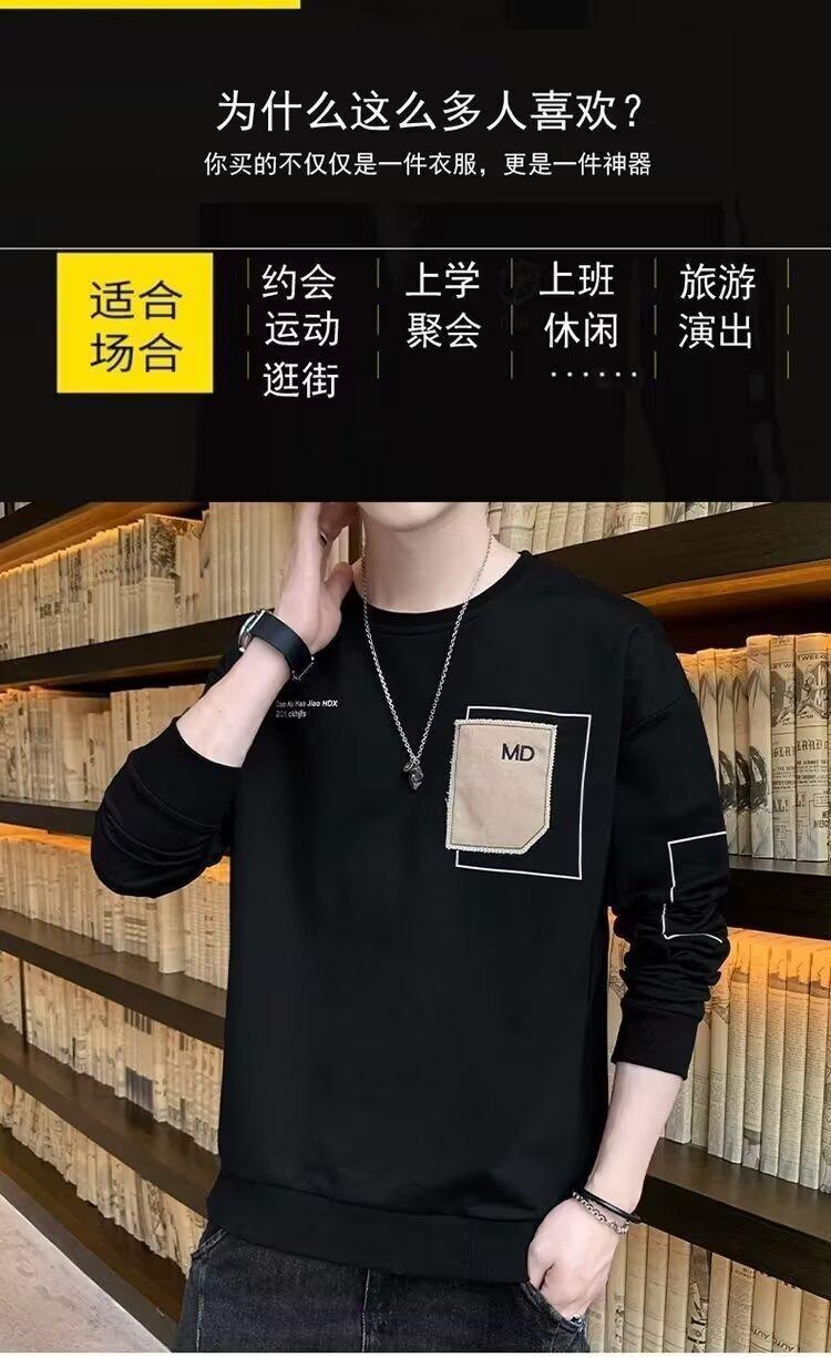 Camiseta de manga larga para hombre, primavera y otoño 2024, nueva marca de moda, tela bordada, ropa superior informal, suéter holgado de cuello redondo que combina con todo