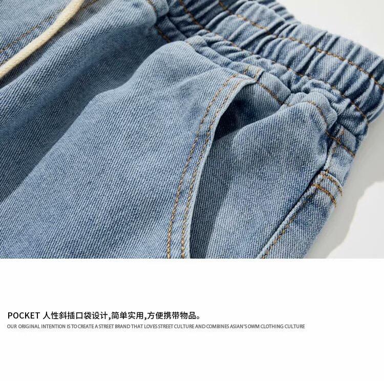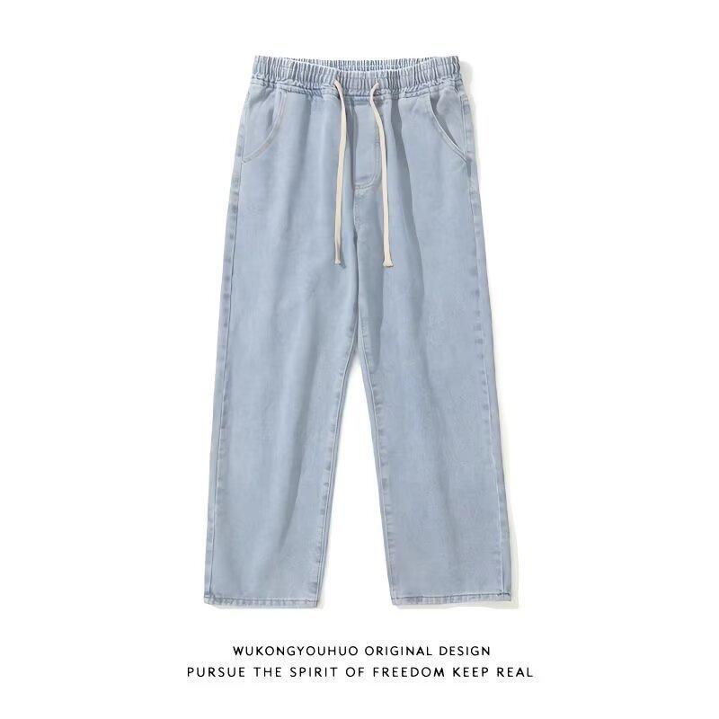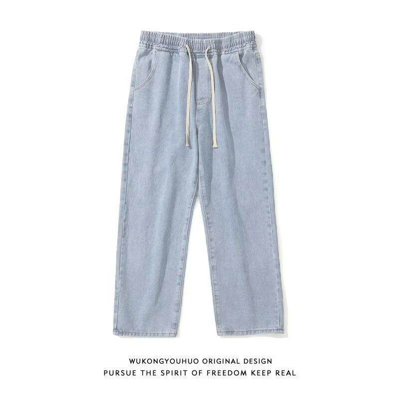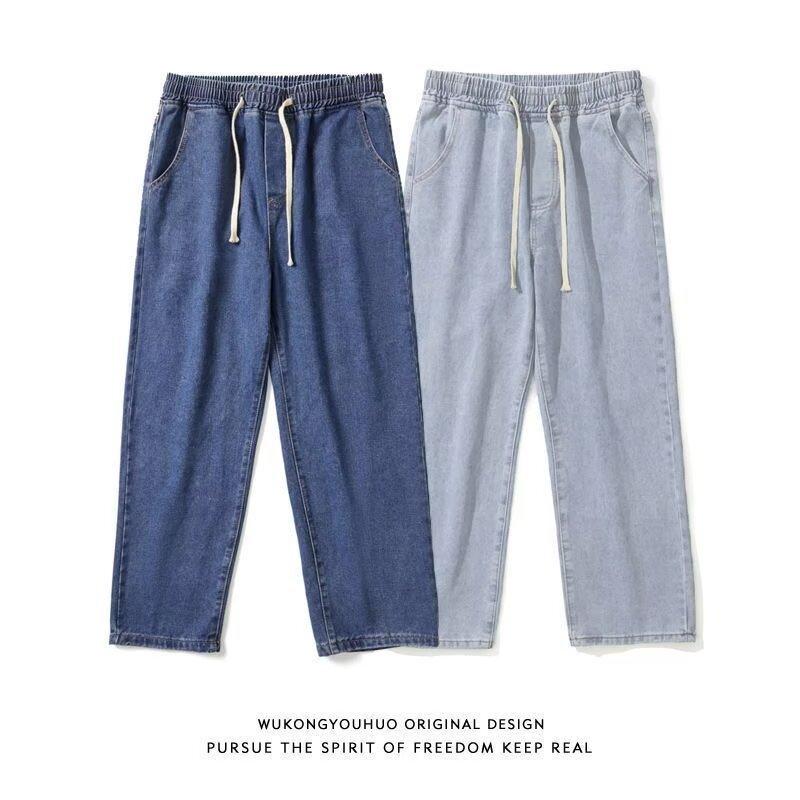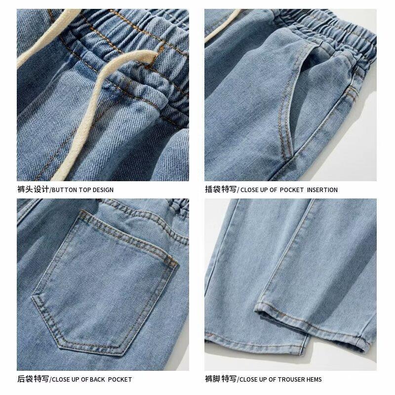 Jeans Pantalones Delgados de Verano para Hombre Pantalones Holgados para Hombre Versátiles a la Moda Estilo Americano Retro Pierna Ancha Casual Pantalones Recortados