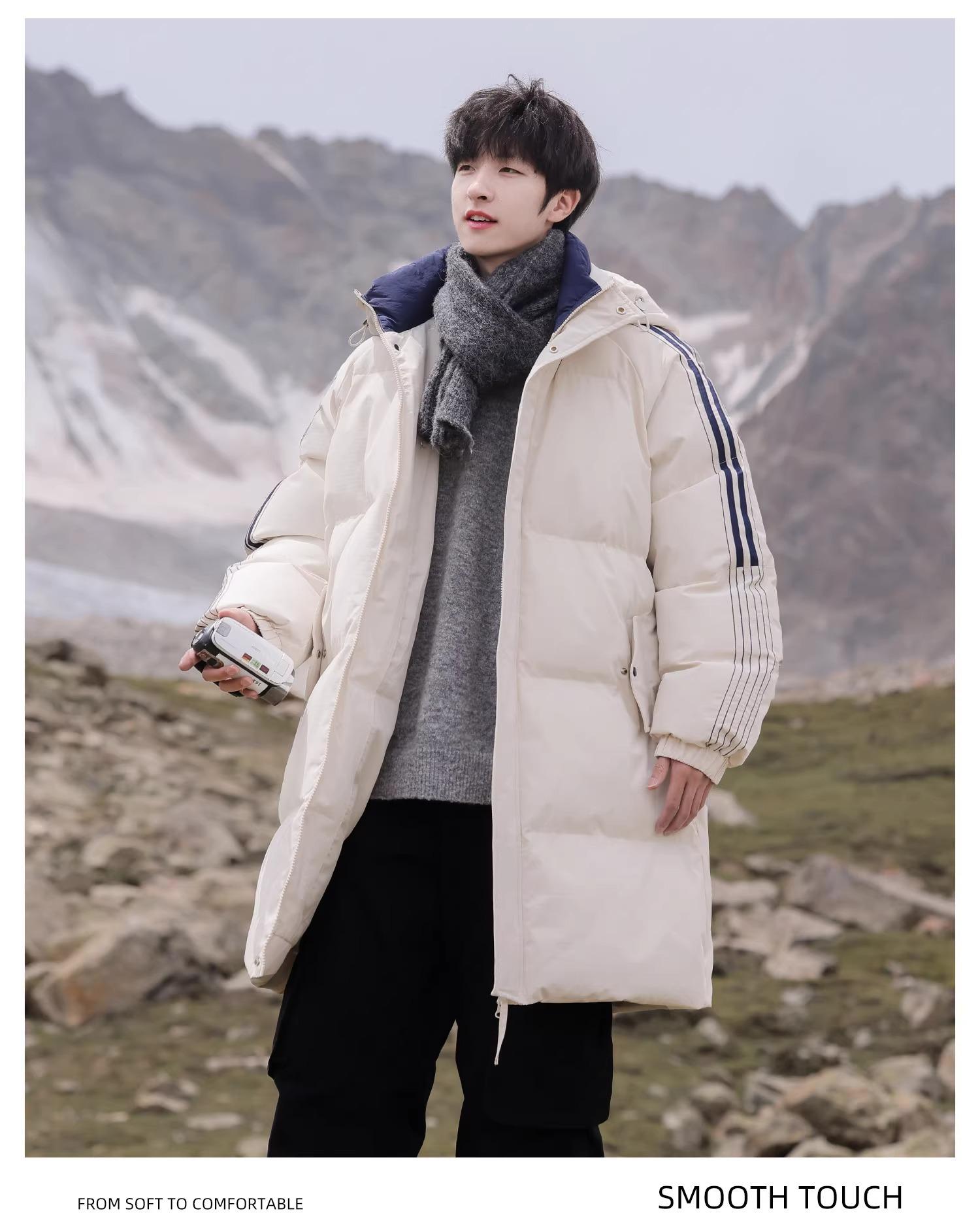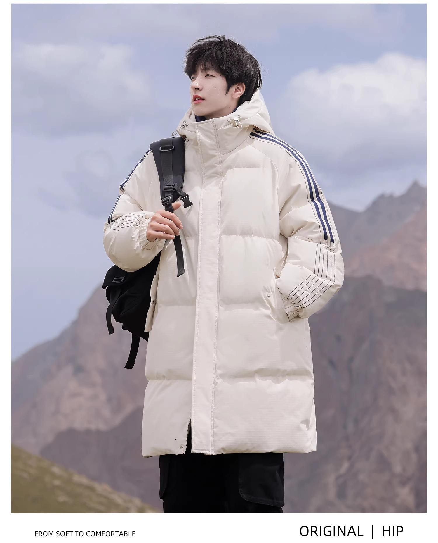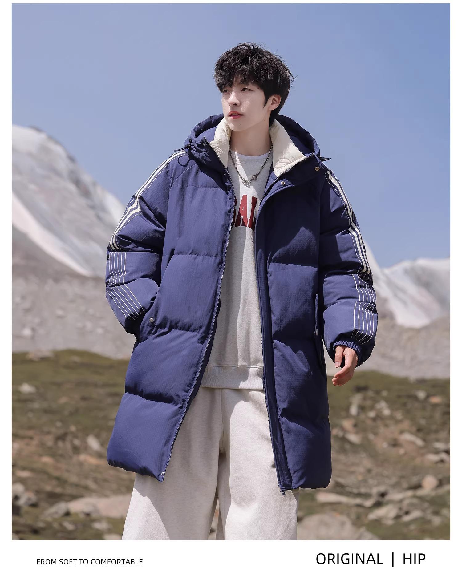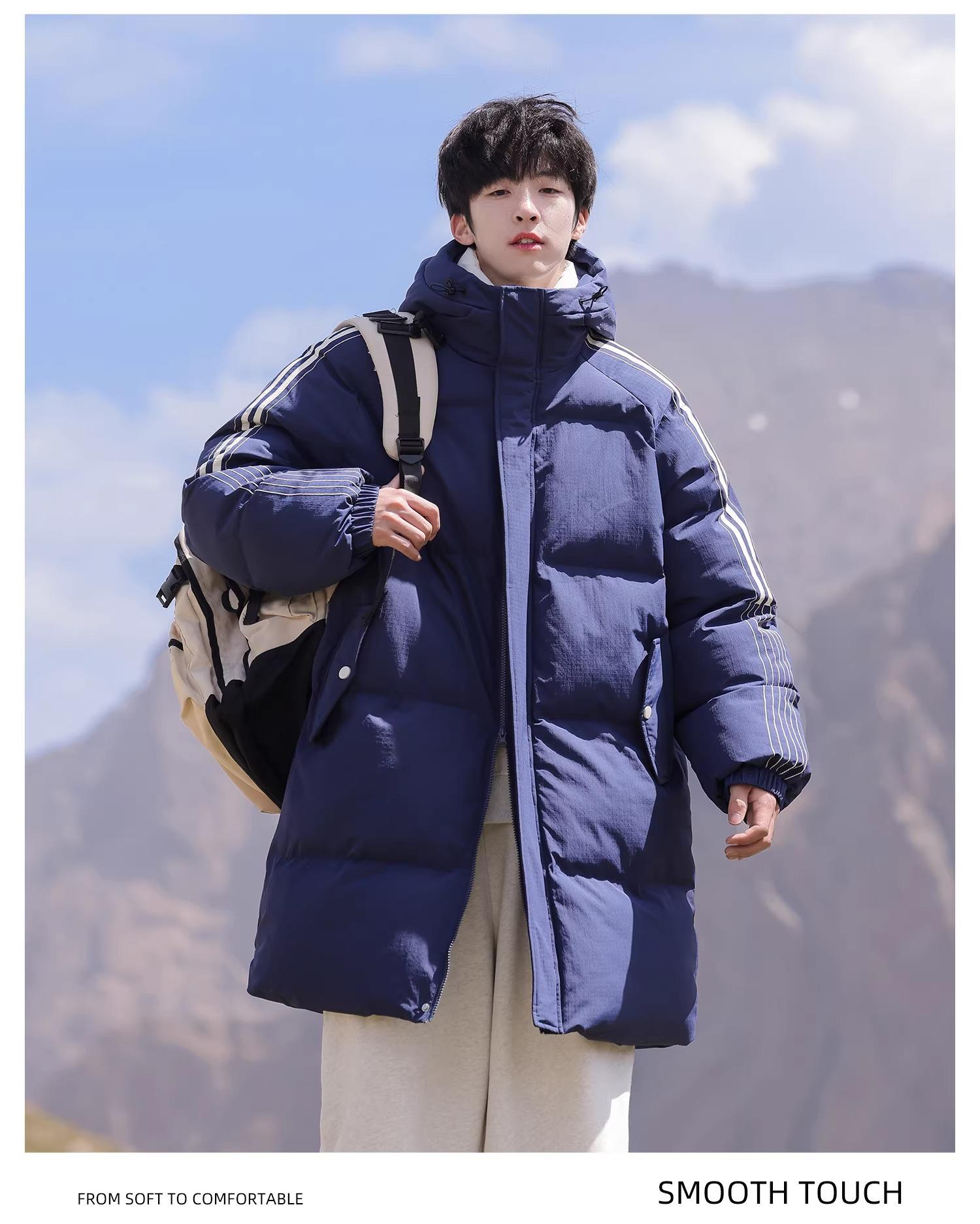 Chaqueta acolchada de algodón a rayas de longitud media para hombre, invierno 2024, nueva marca de moda, holgada, informal, juvenil, gruesa y cálida.