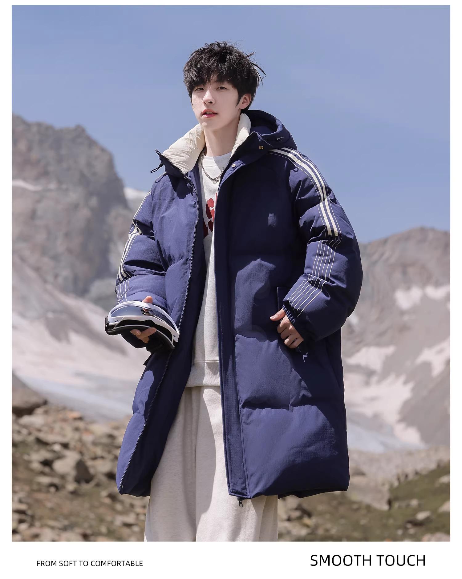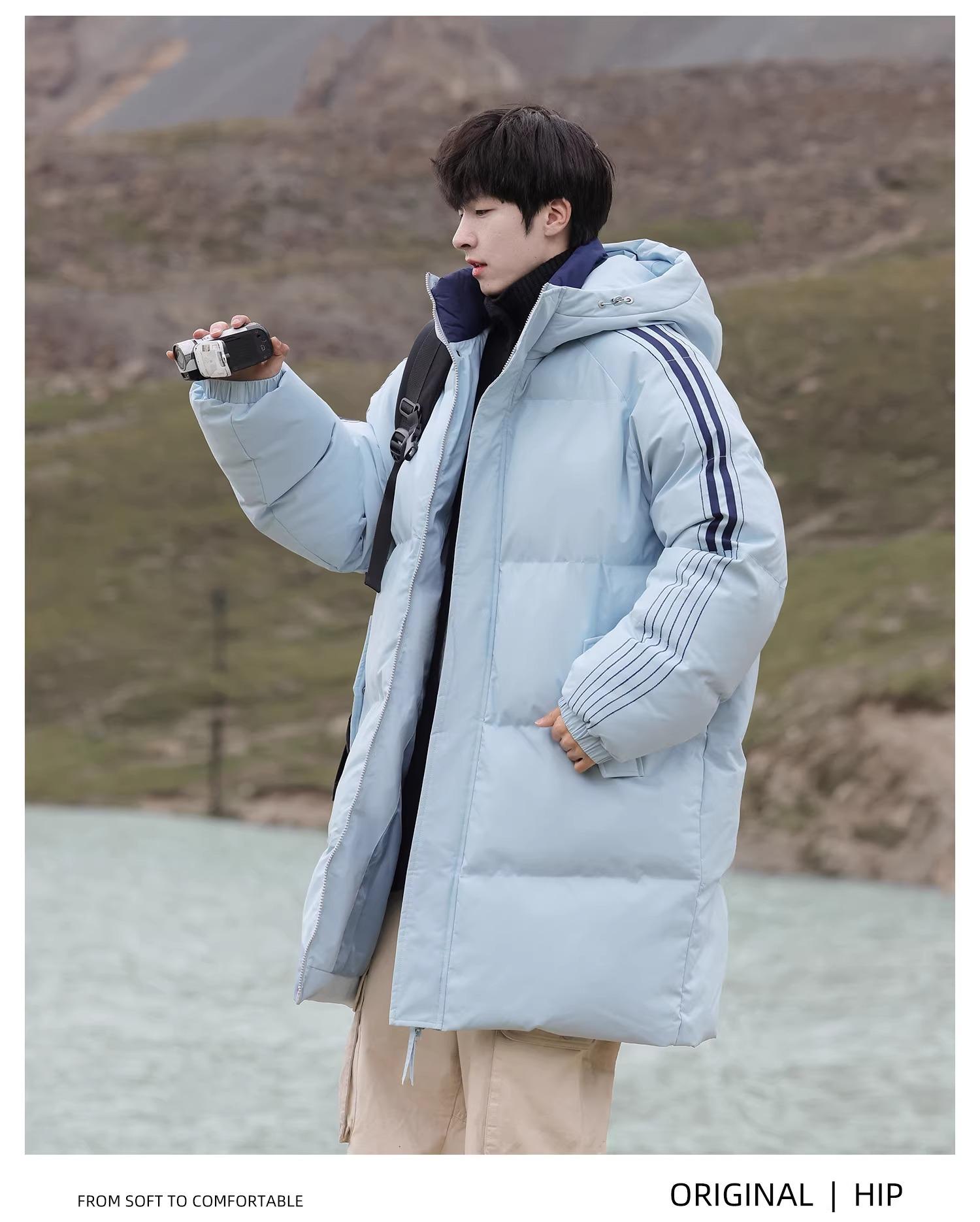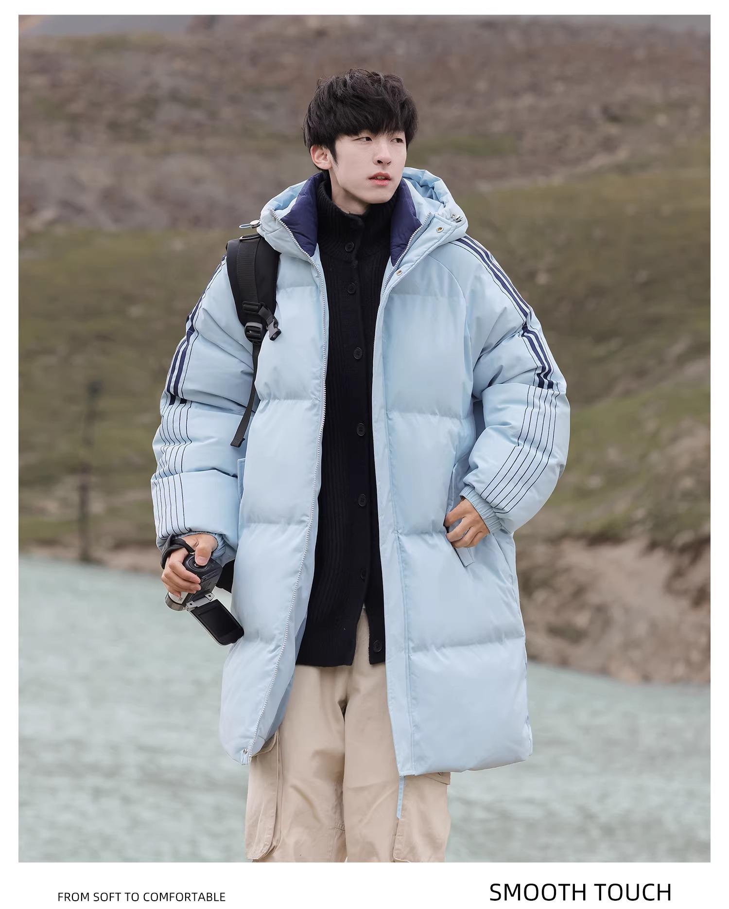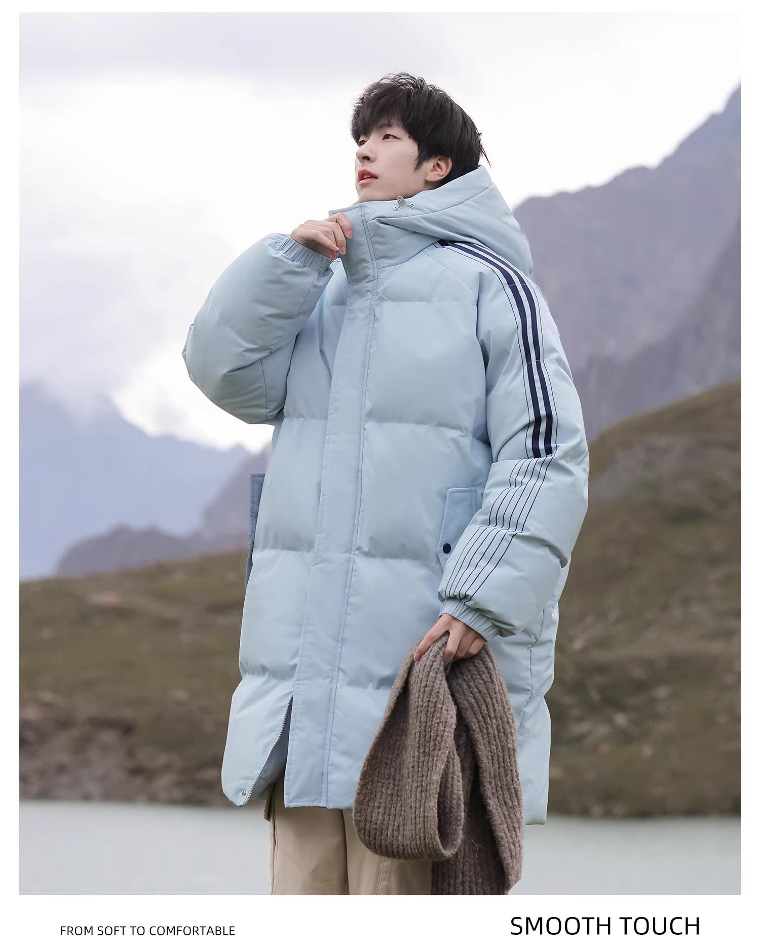 Chaqueta acolchada de algodón a rayas de longitud media para hombre, invierno 2024, nueva marca de moda, holgada, informal, juvenil, gruesa y cálida.