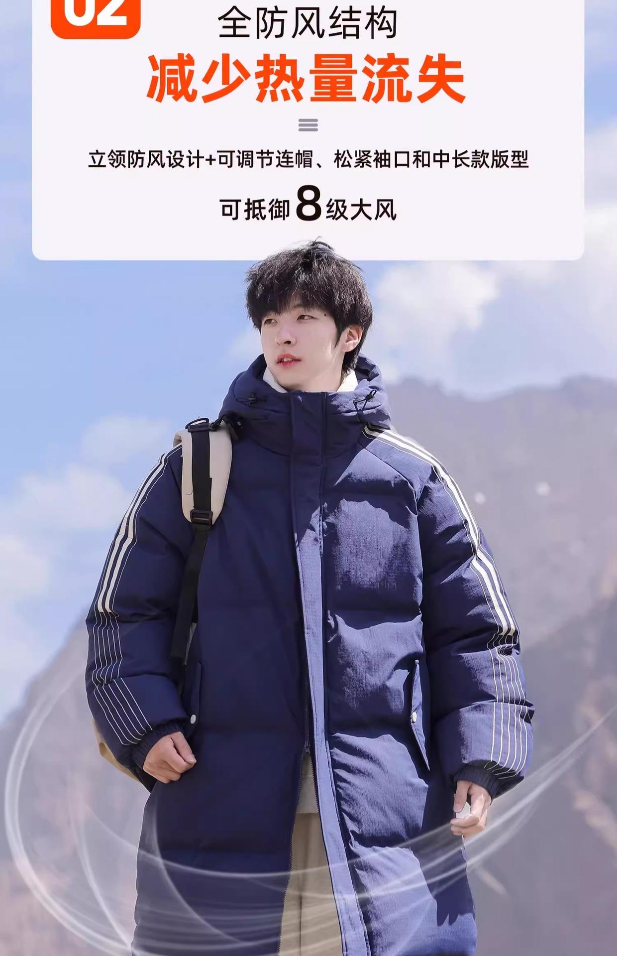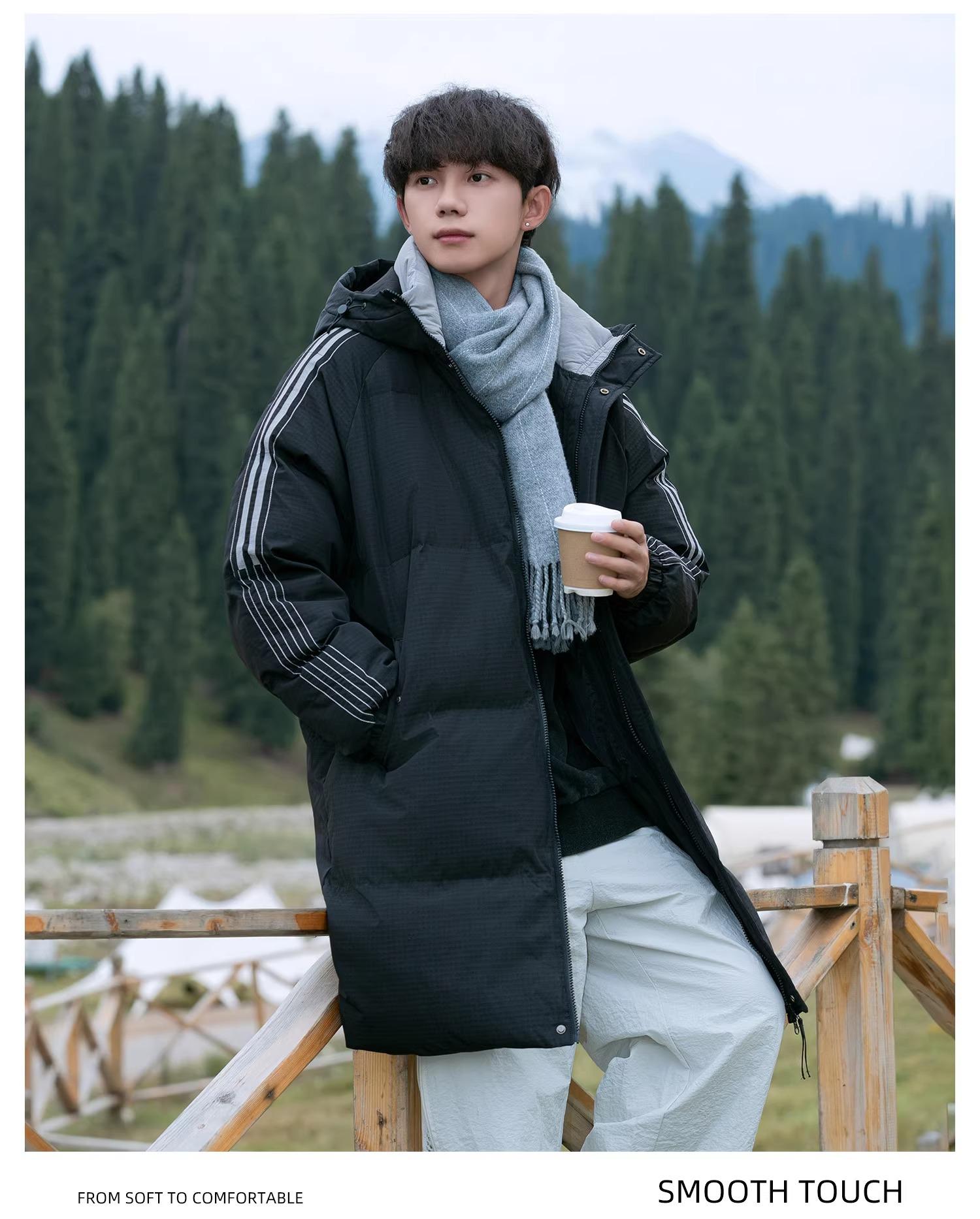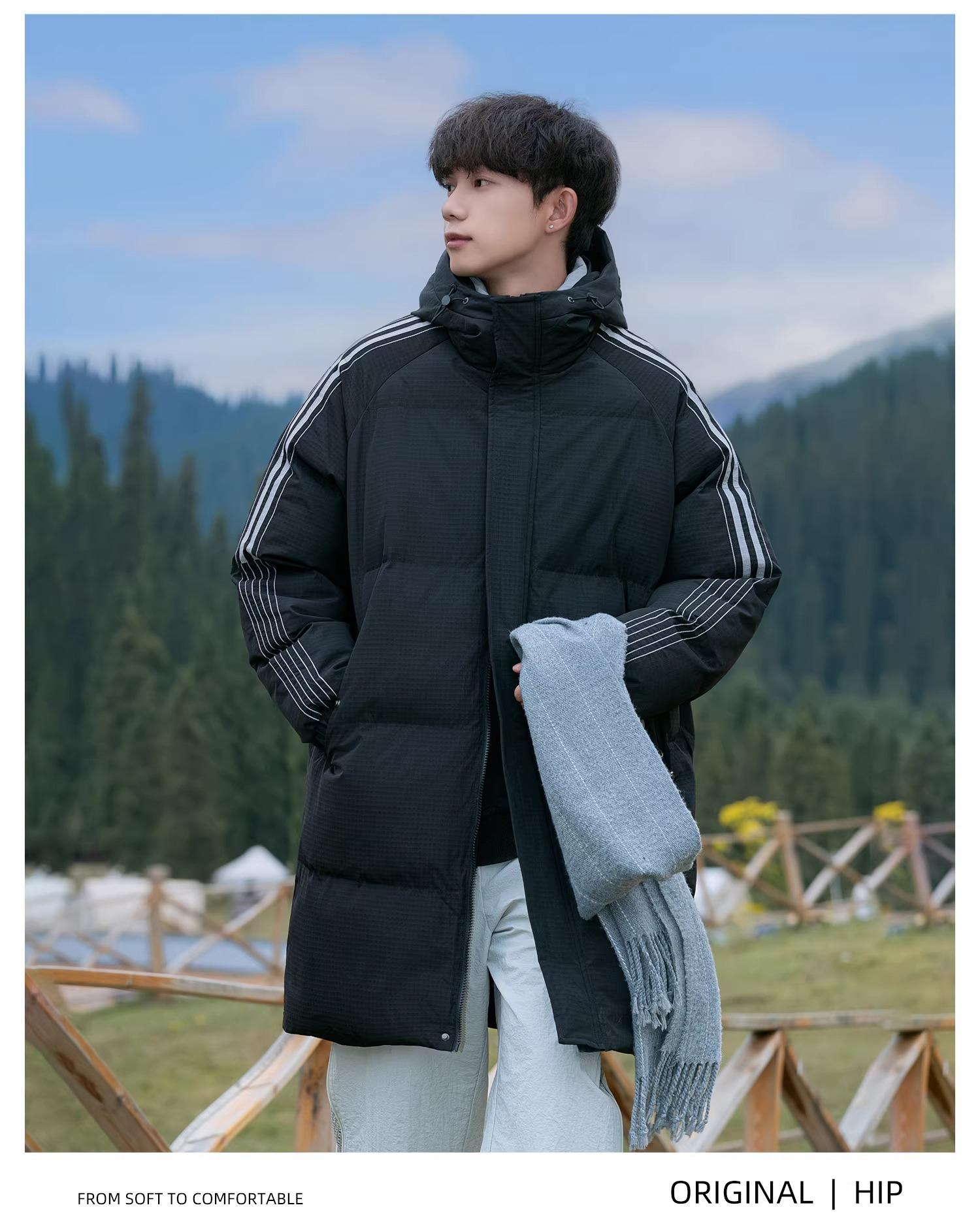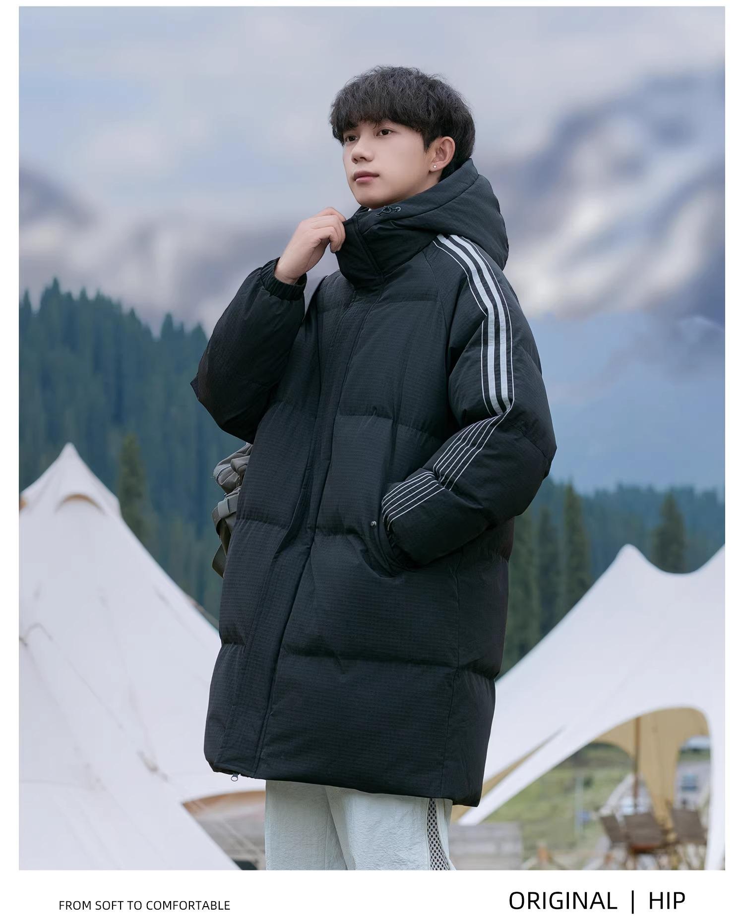 Chaqueta acolchada de algodón a rayas de longitud media para hombre, invierno 2024, nueva marca de moda, holgada, informal, juvenil, gruesa y cálida.