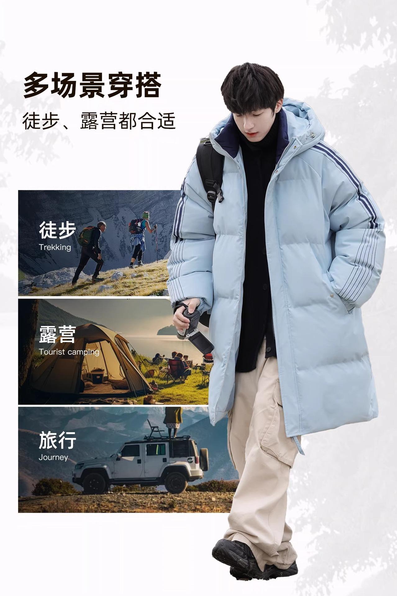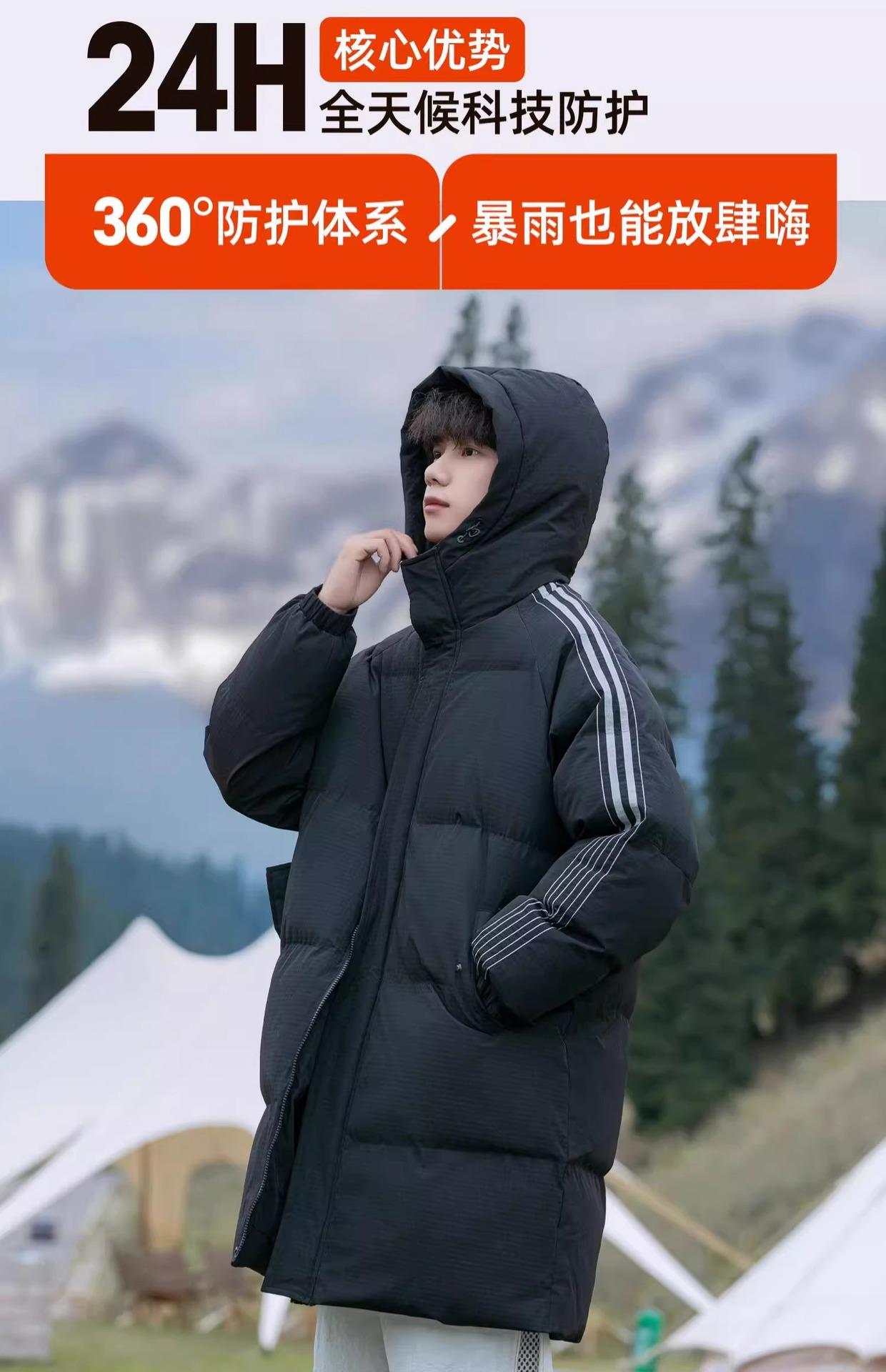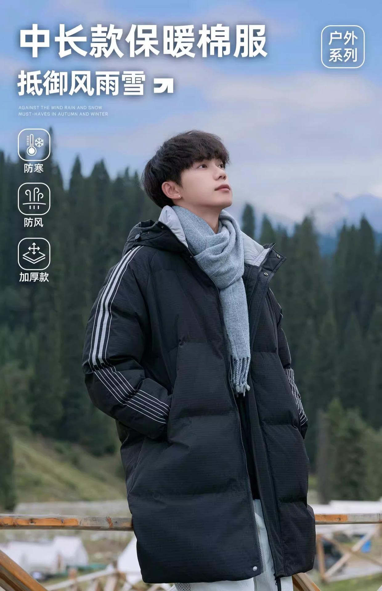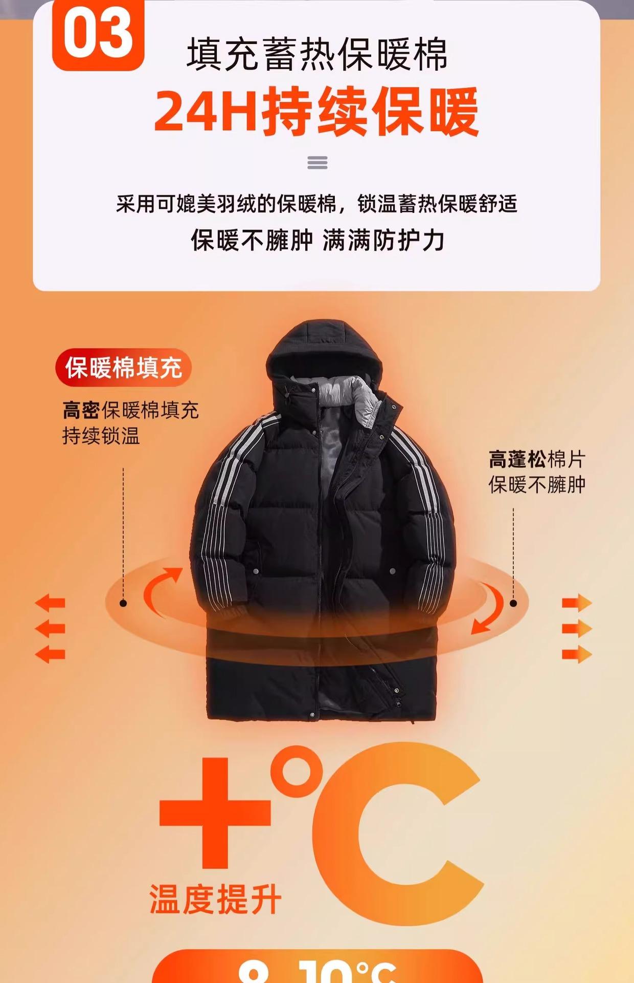 Chaqueta acolchada de algodón a rayas de longitud media para hombre, invierno 2024, nueva marca de moda, holgada, informal, juvenil, gruesa y cálida.
