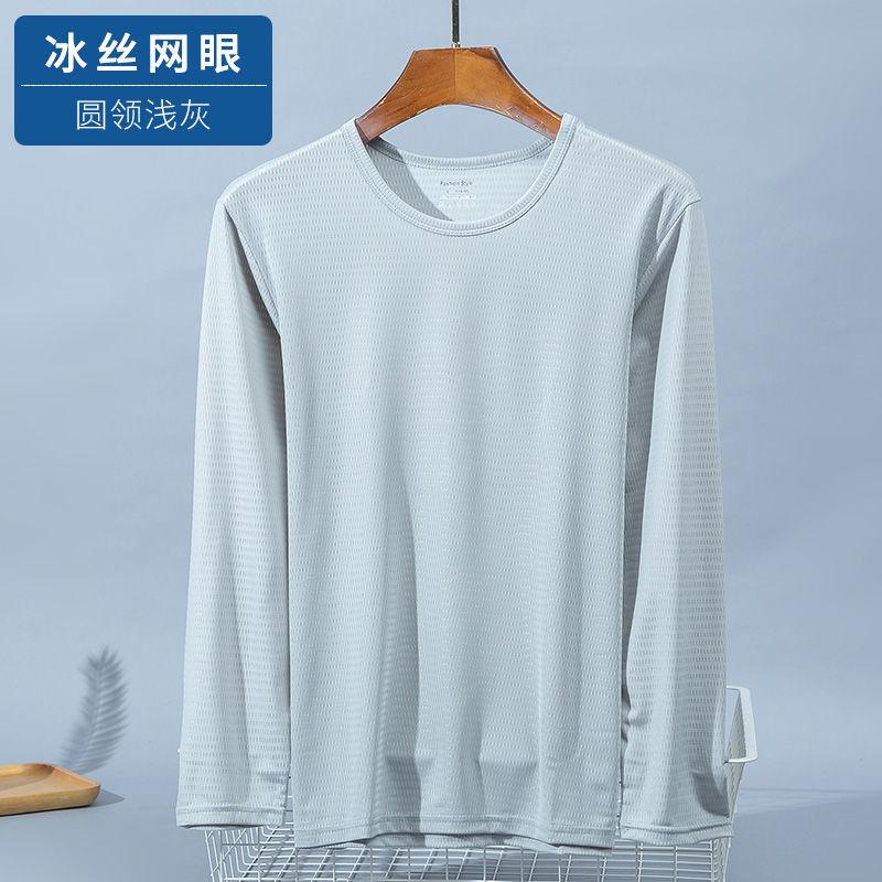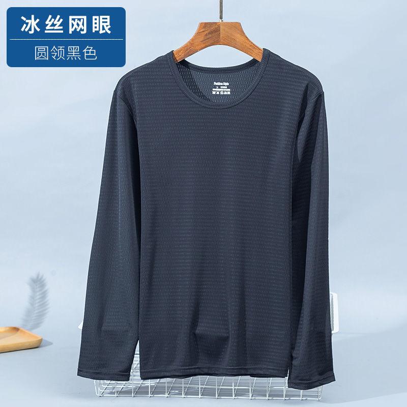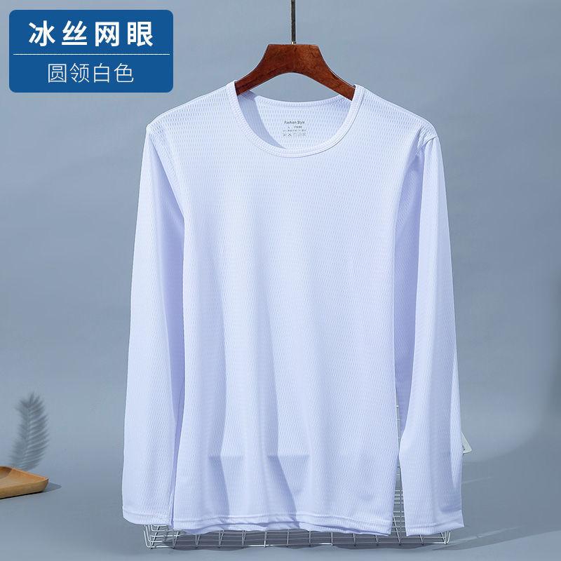 Camiseta informal de manga larga de malla transpirable de seda de hielo de verano, fina, de talla grande, para hombres jóvenes y de mediana edad, holgada, de secado rápido.